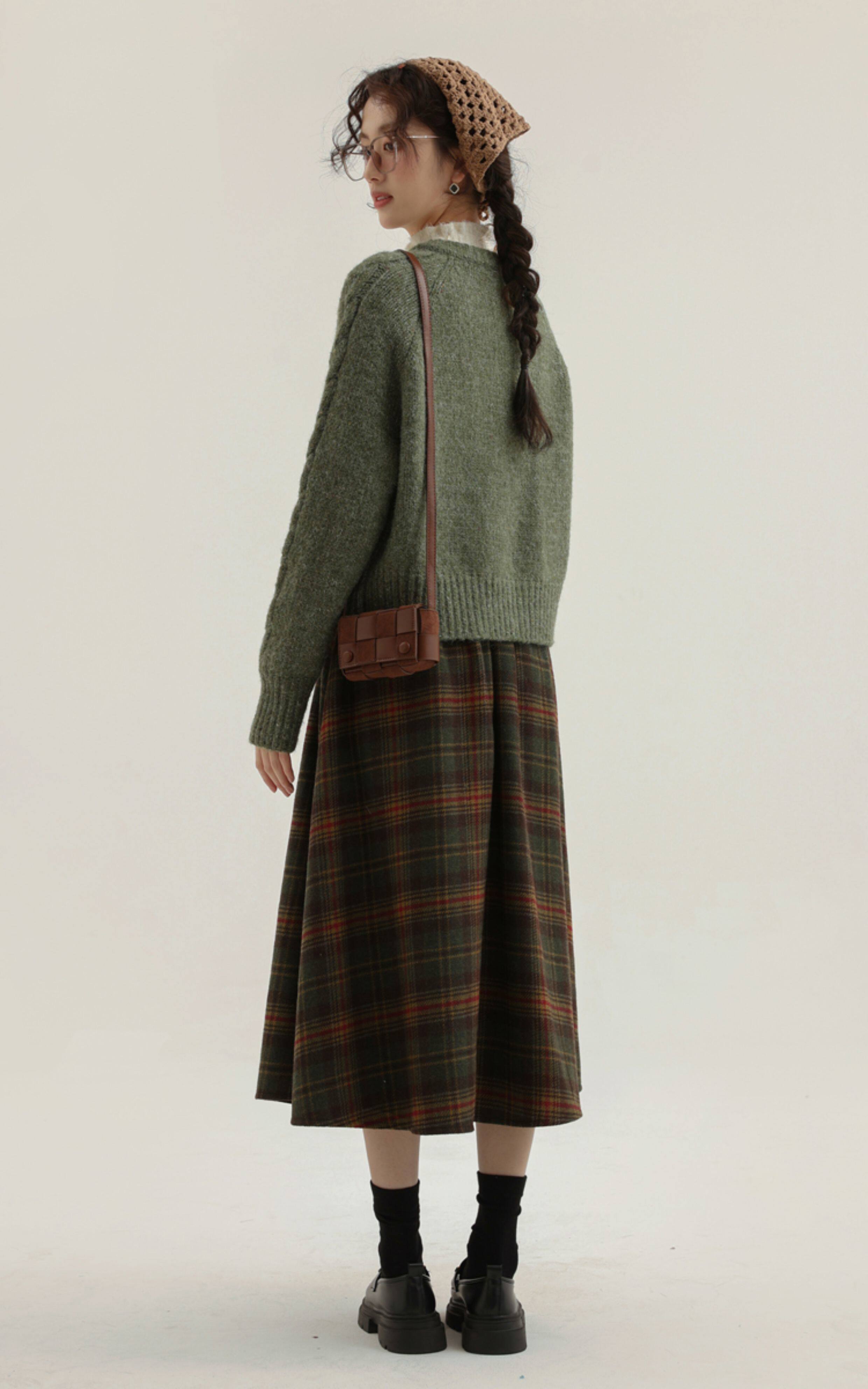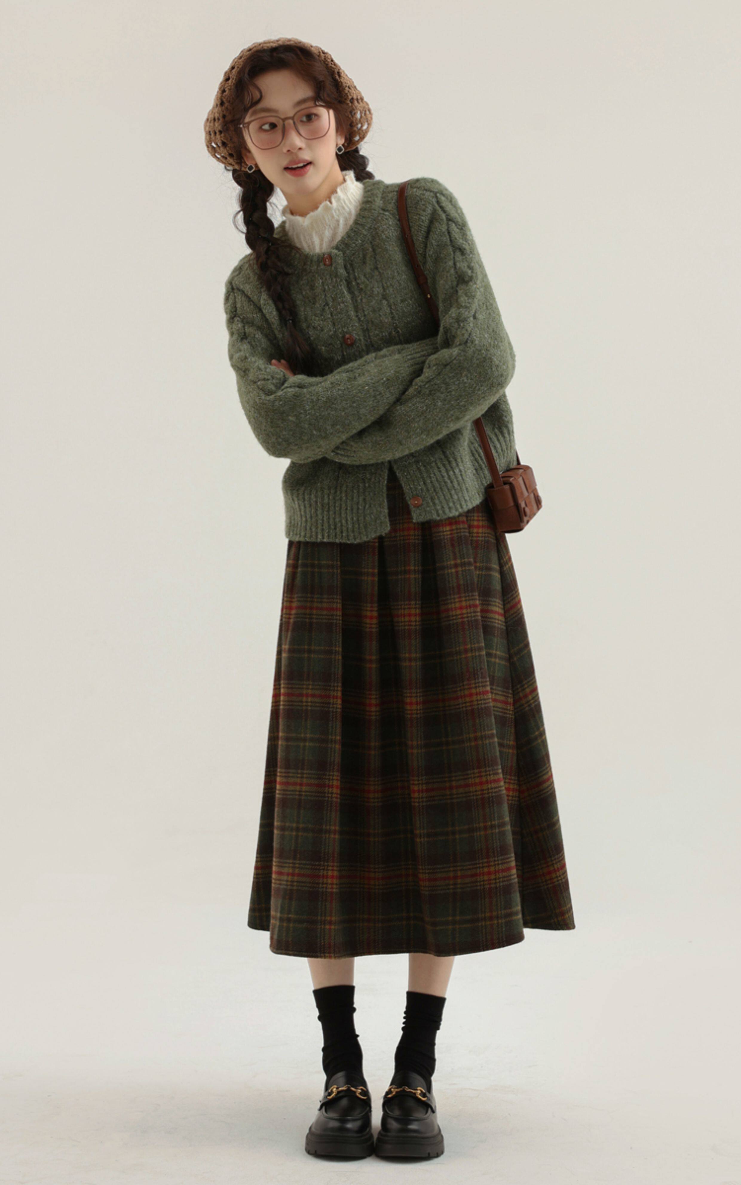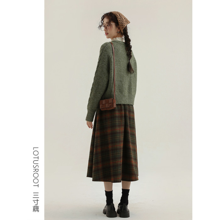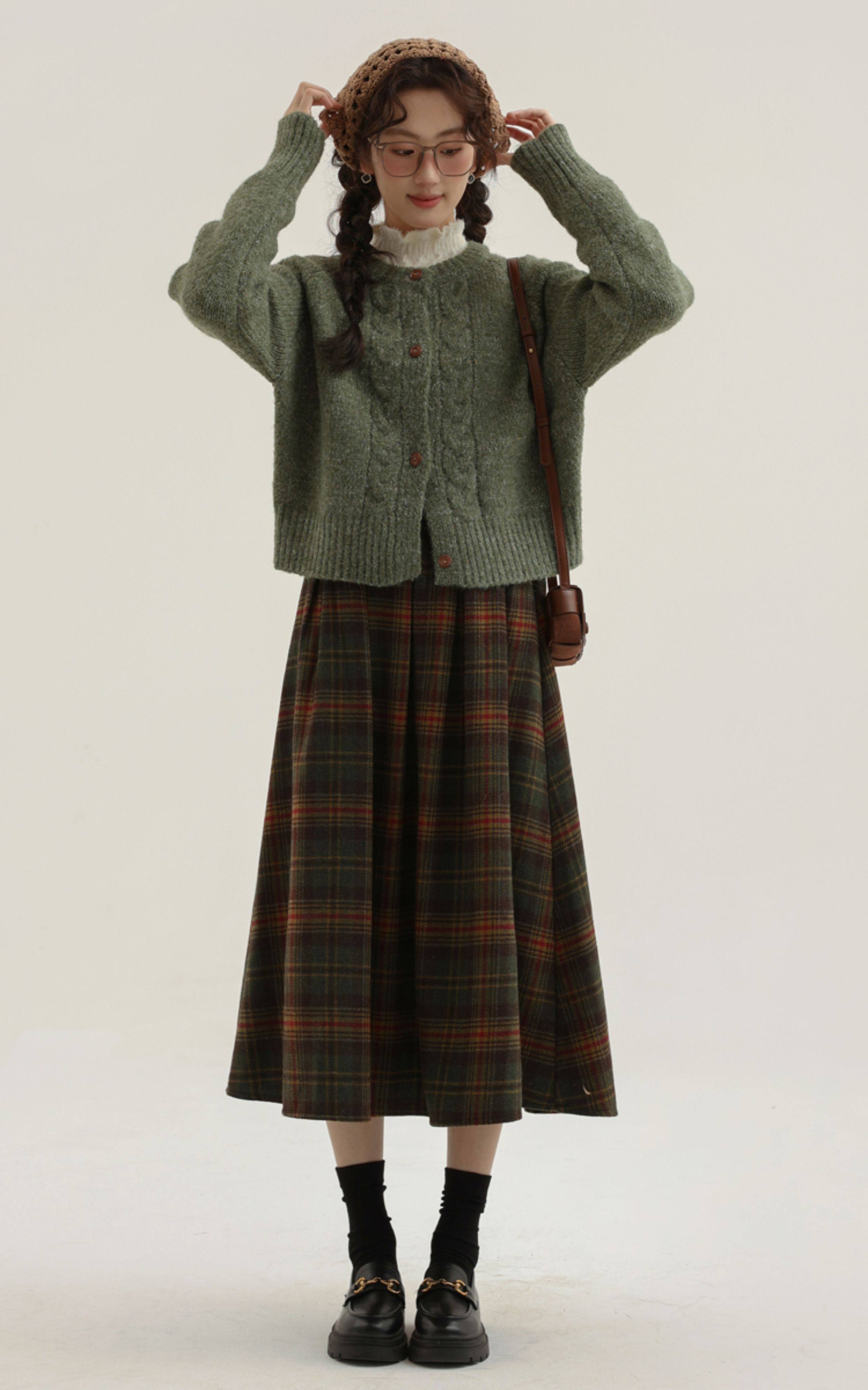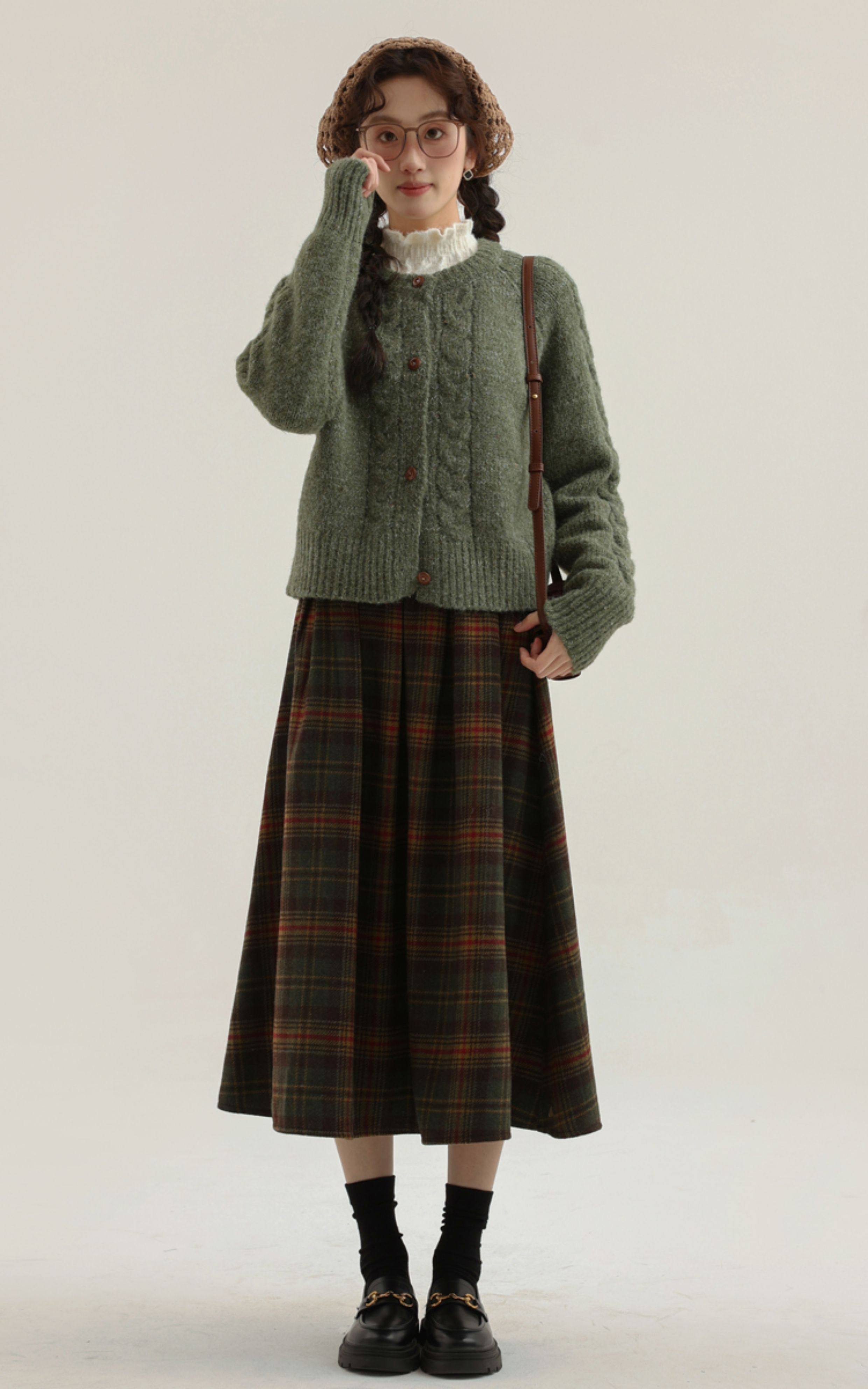 【三寸藕】冬季復古綠色針織開衫麻花紋軟糯森系毛衣甜美氣質外套