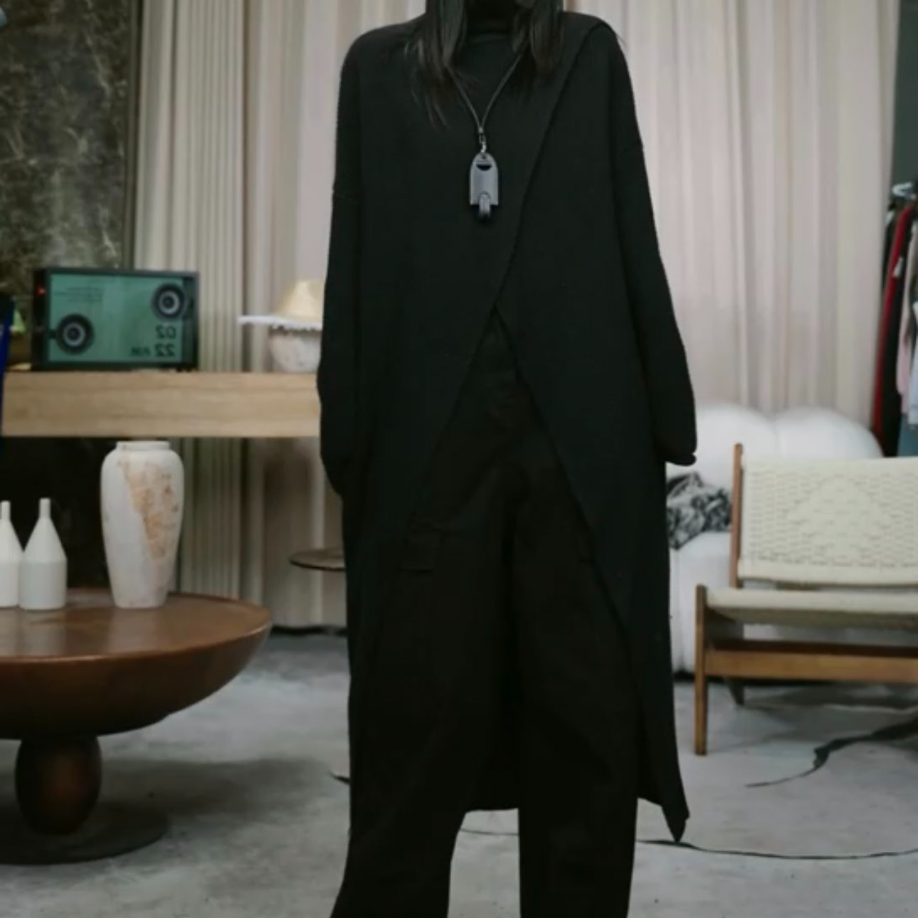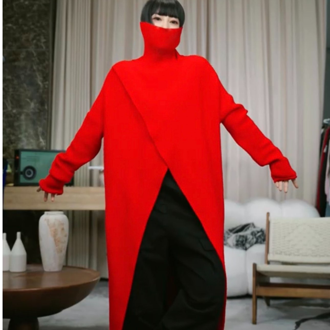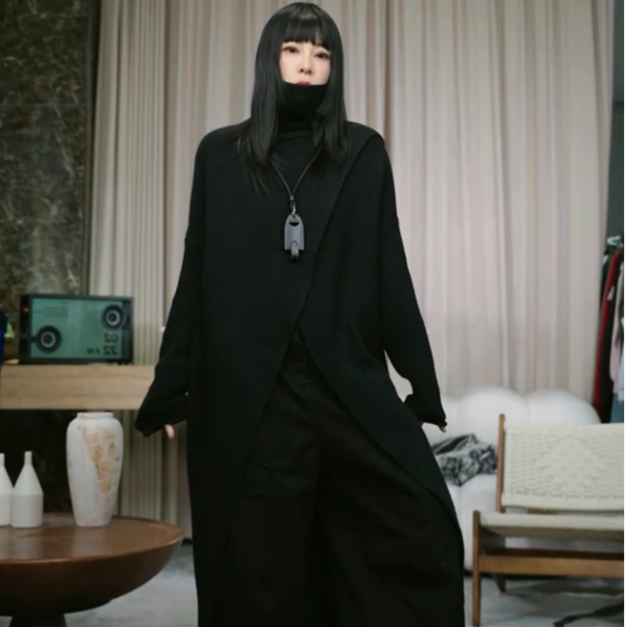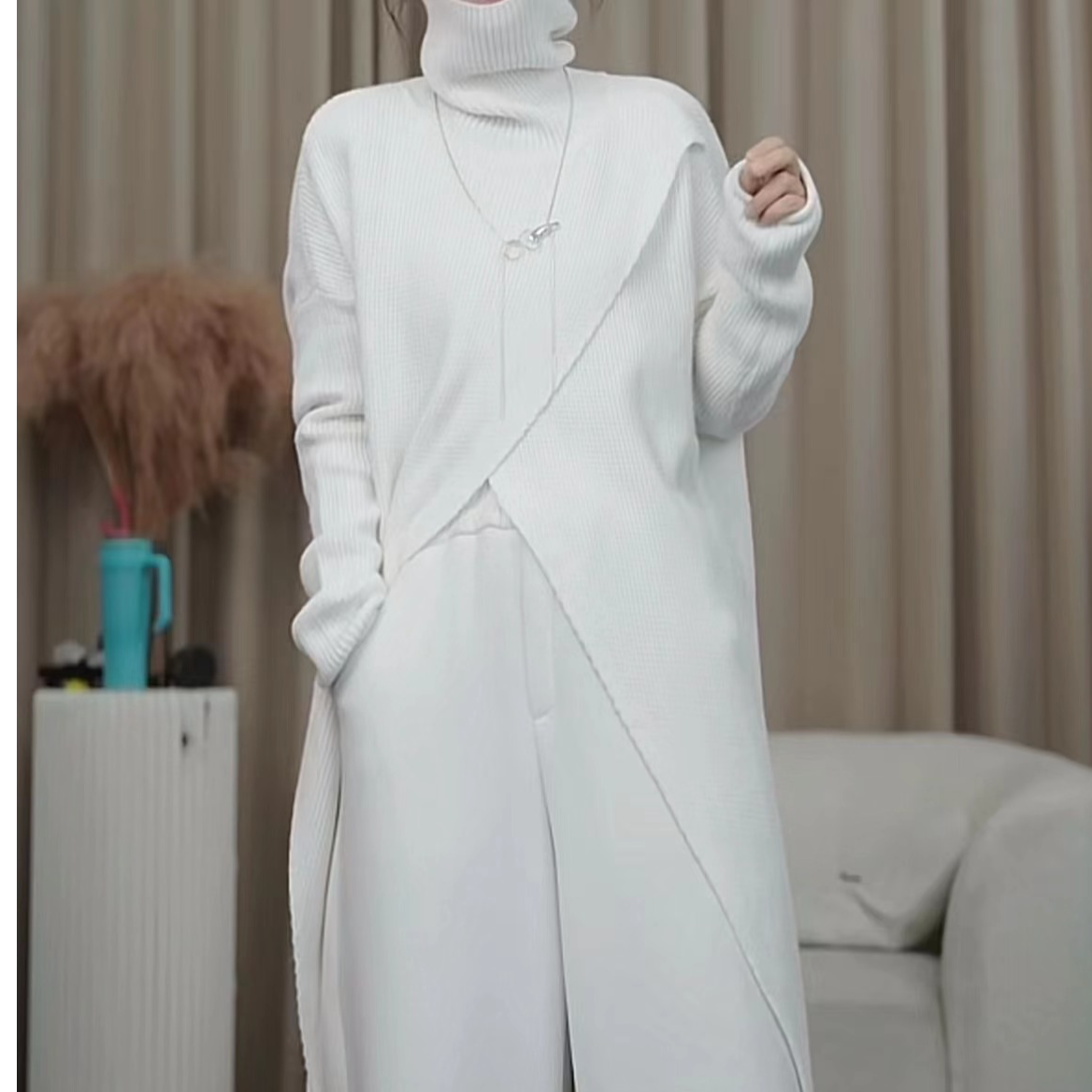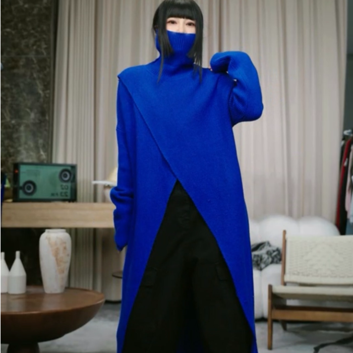 2025秋冬新款高領設計款開叉長款針織毛衣一店NF0509609