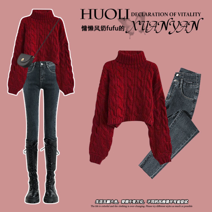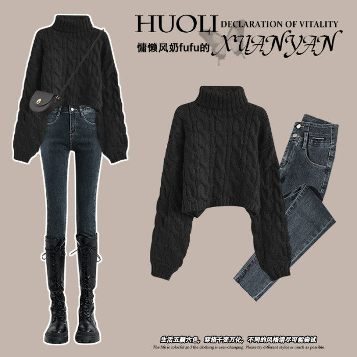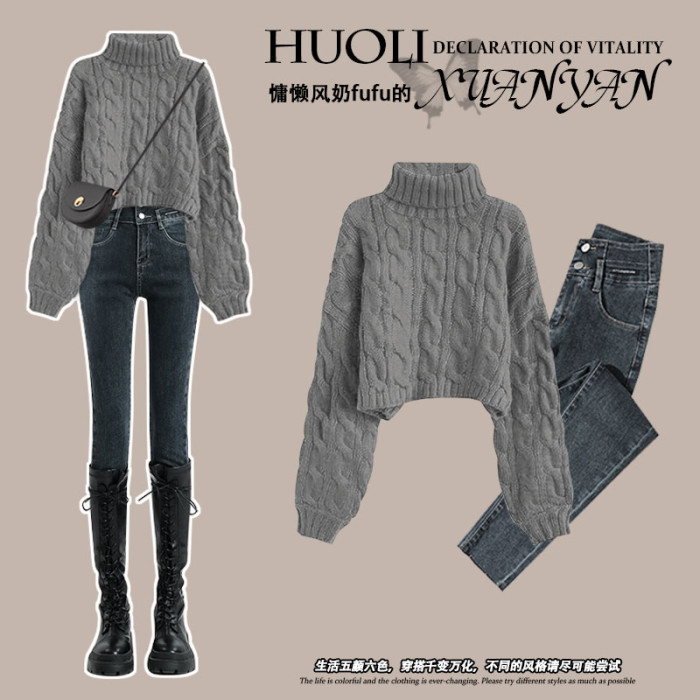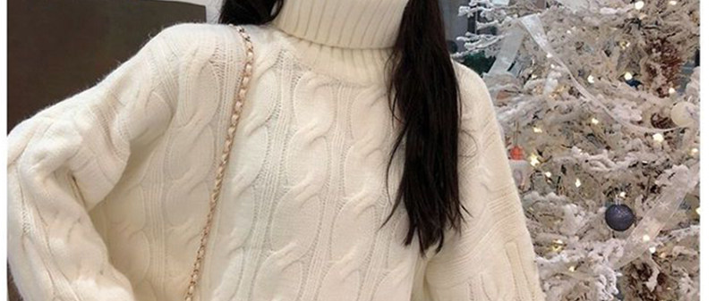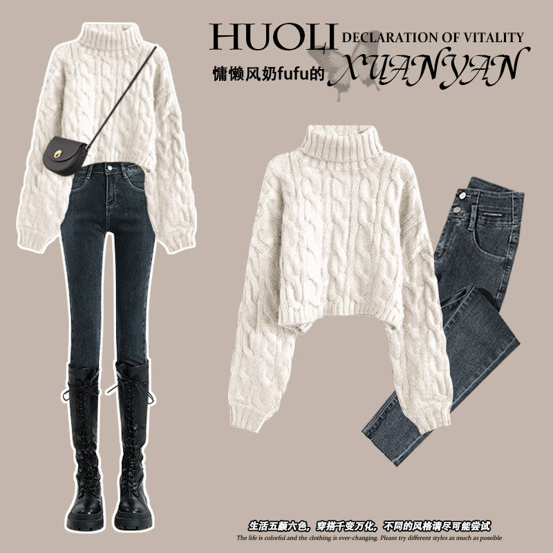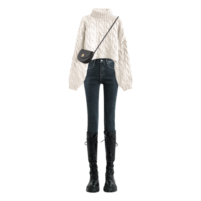 韓系冬季穿搭白色高領毛衣女巨好看的冬裝一整套高級感慵懶針織衫
