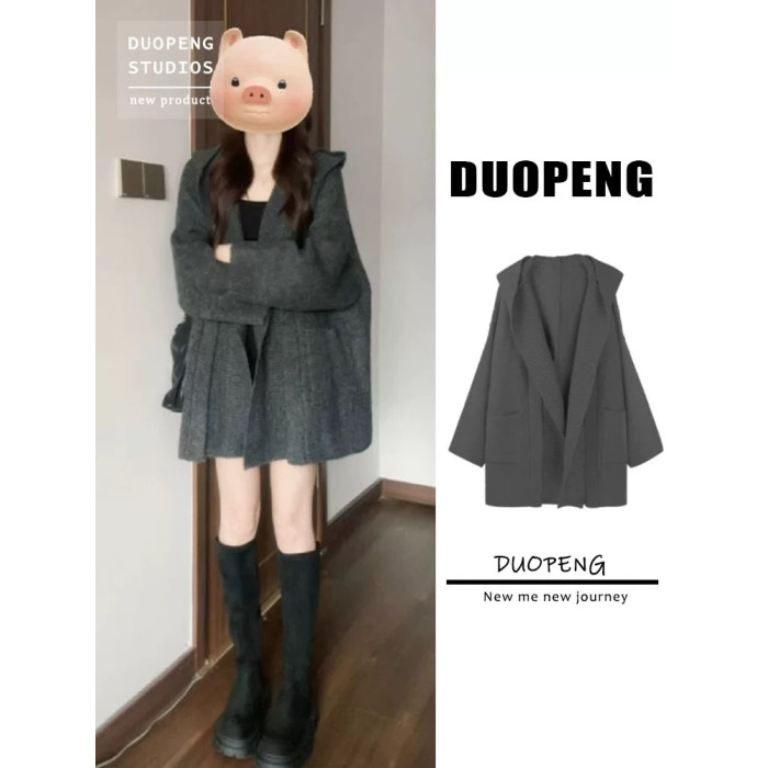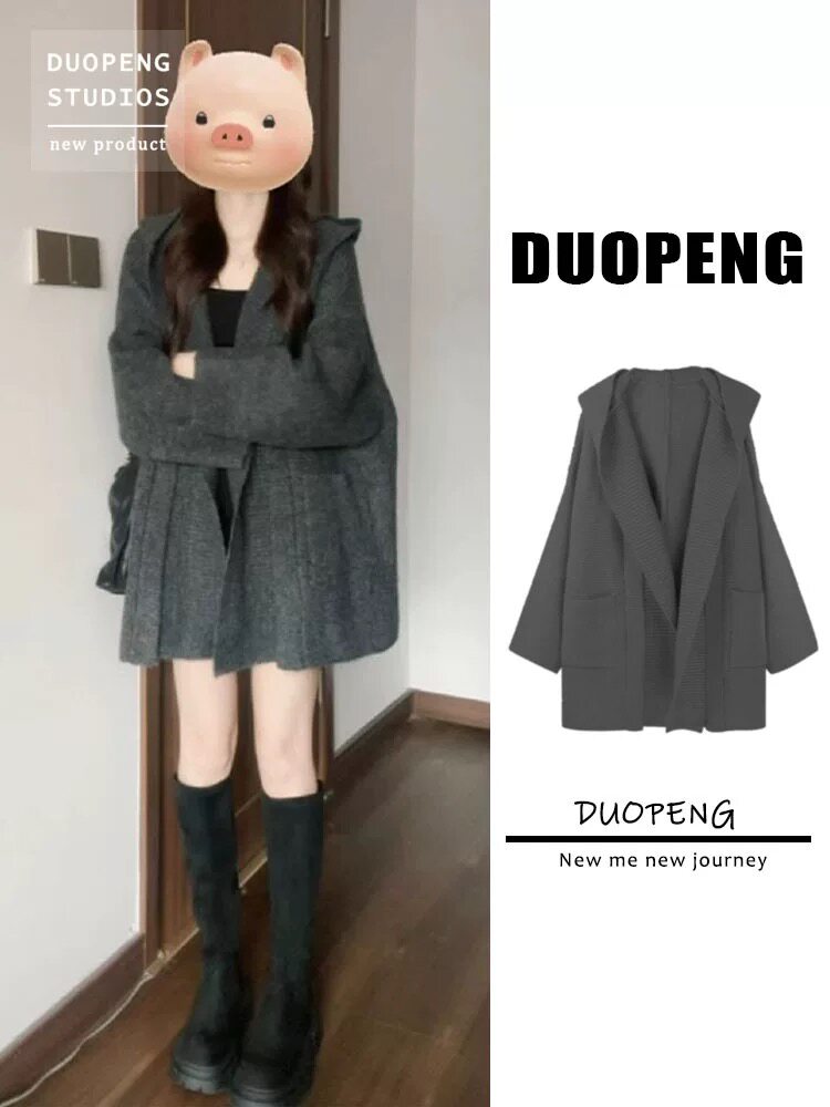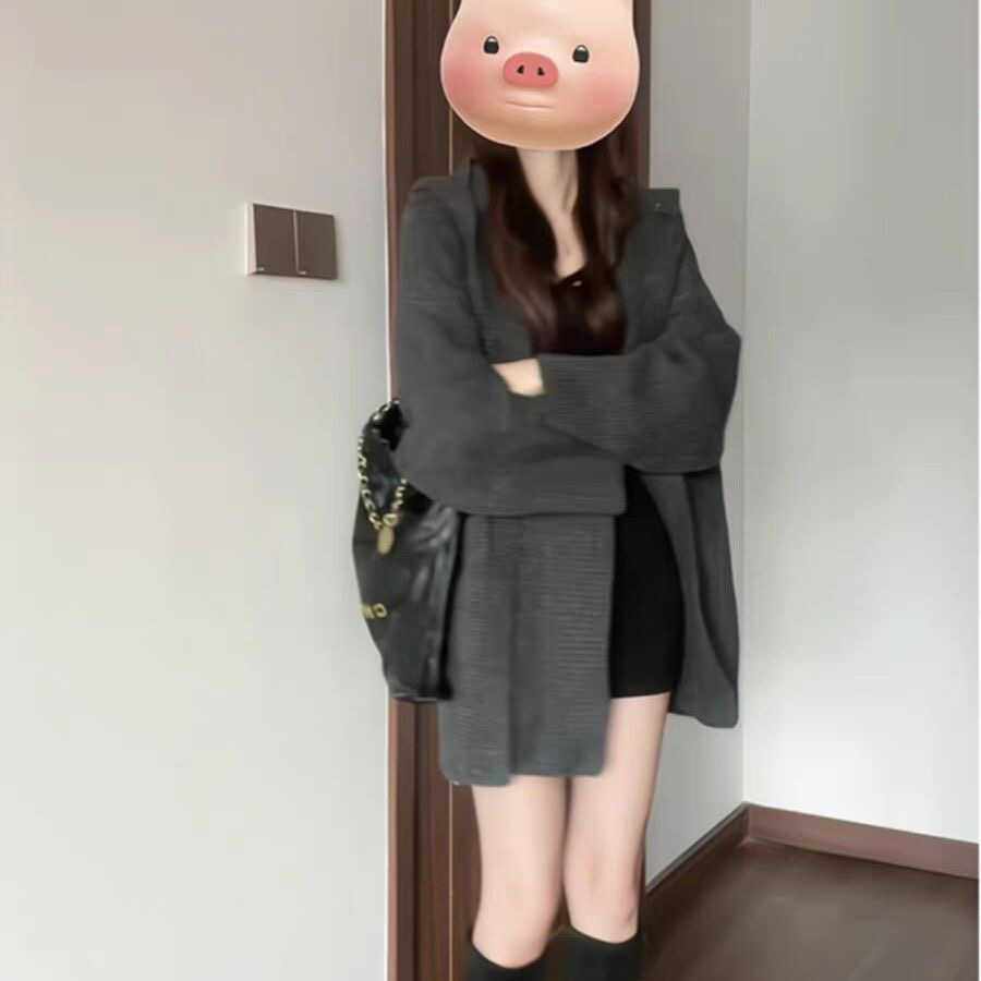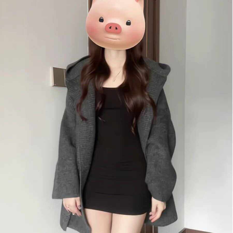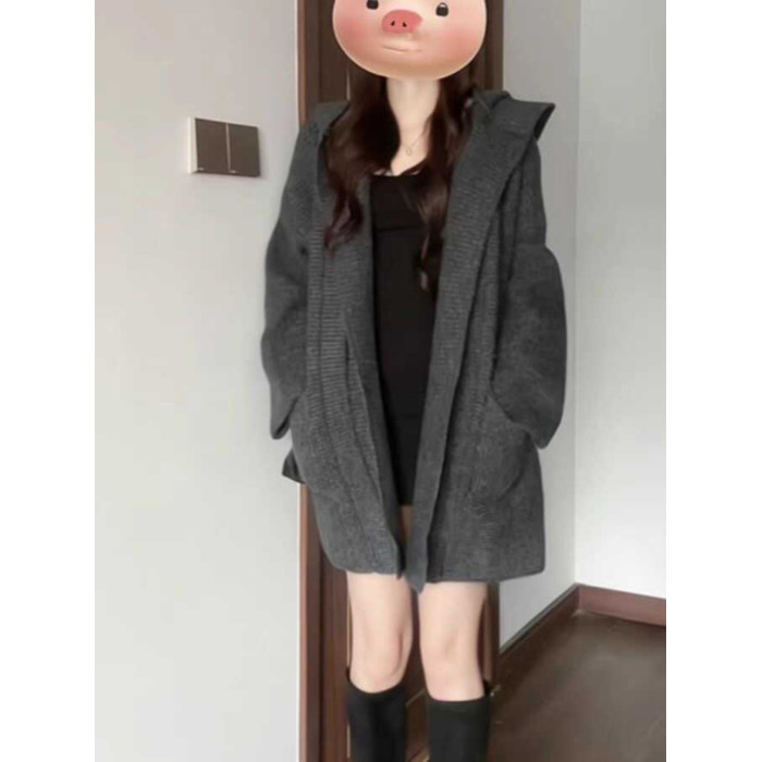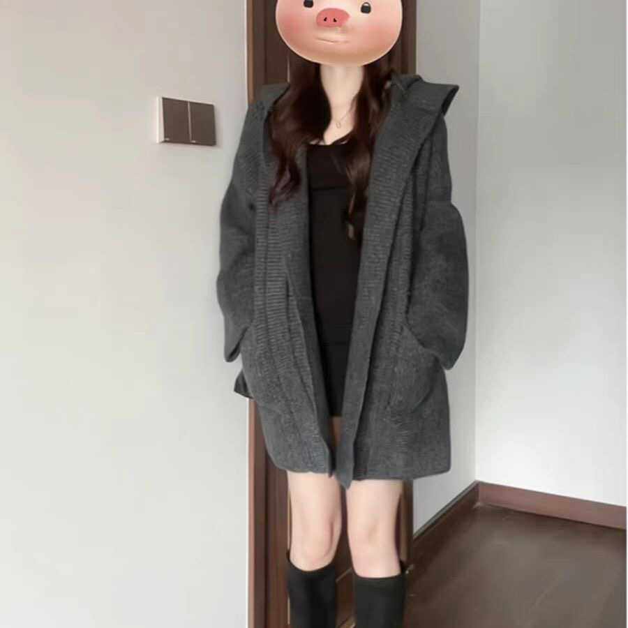 慵懶風加厚寬松針織開衫秋冬新款外搭中長款連帽超好看毛衣外套女