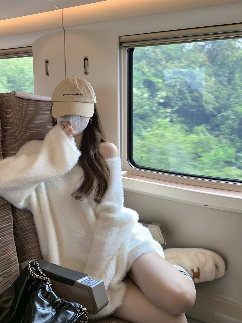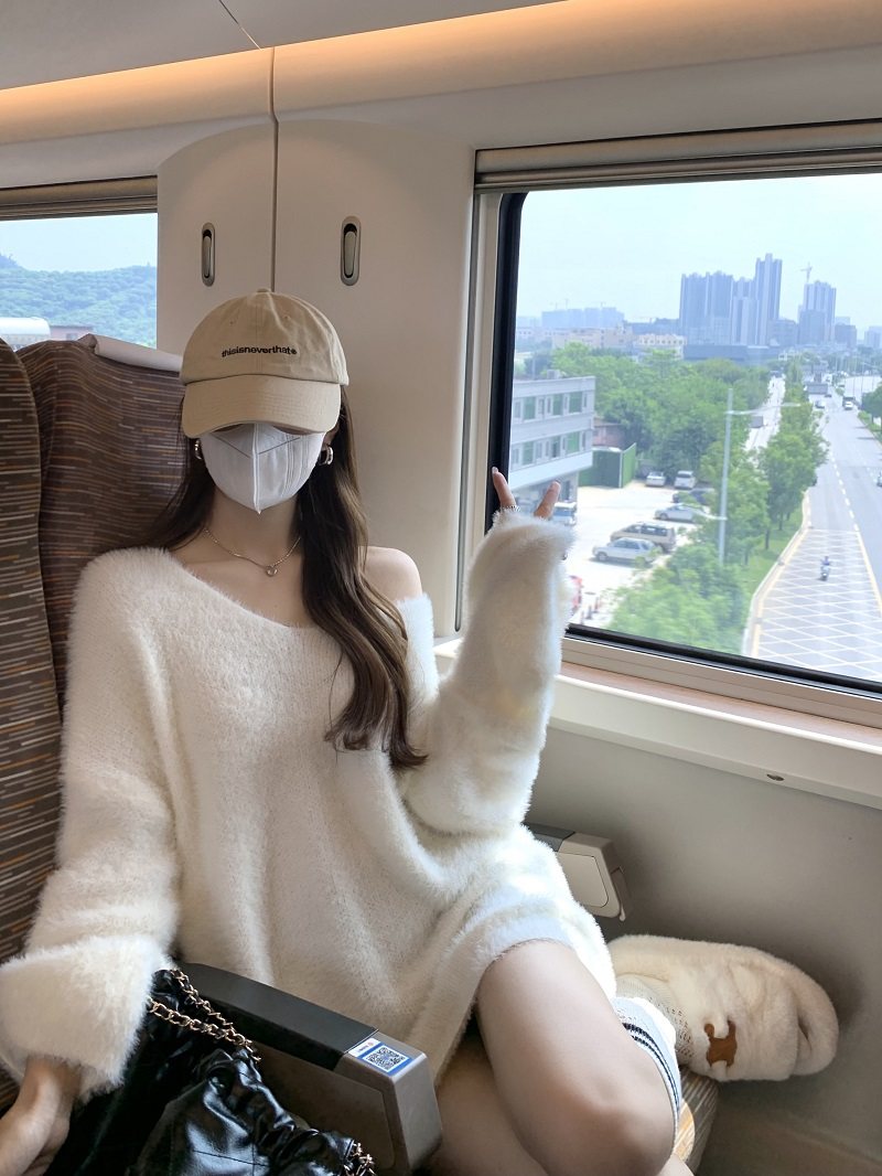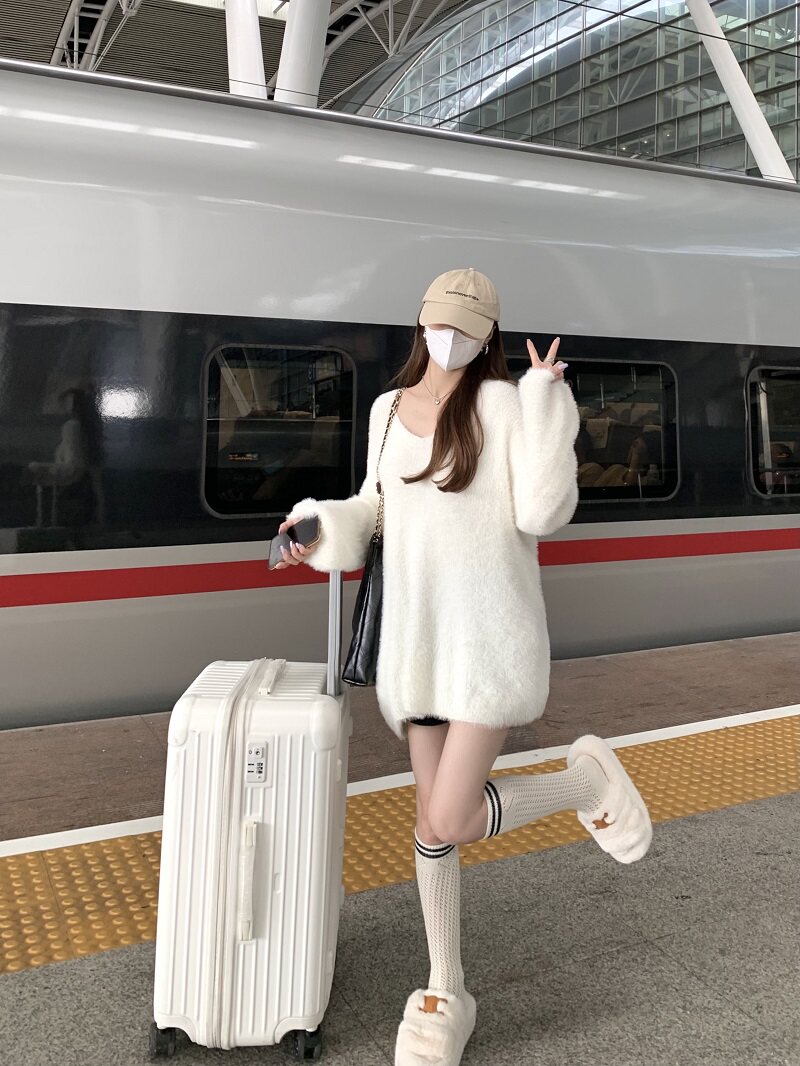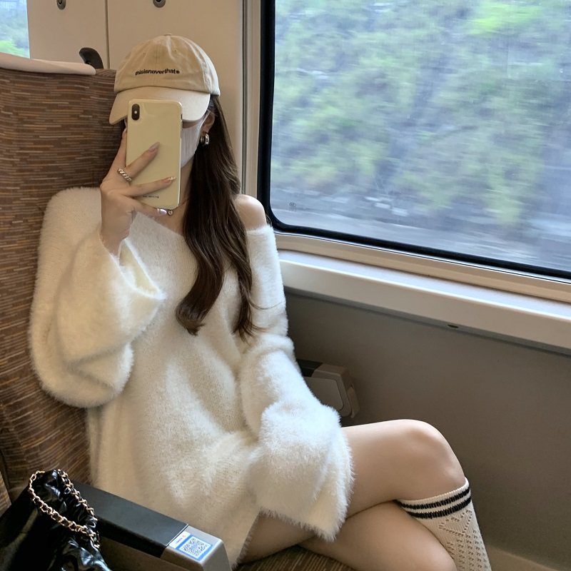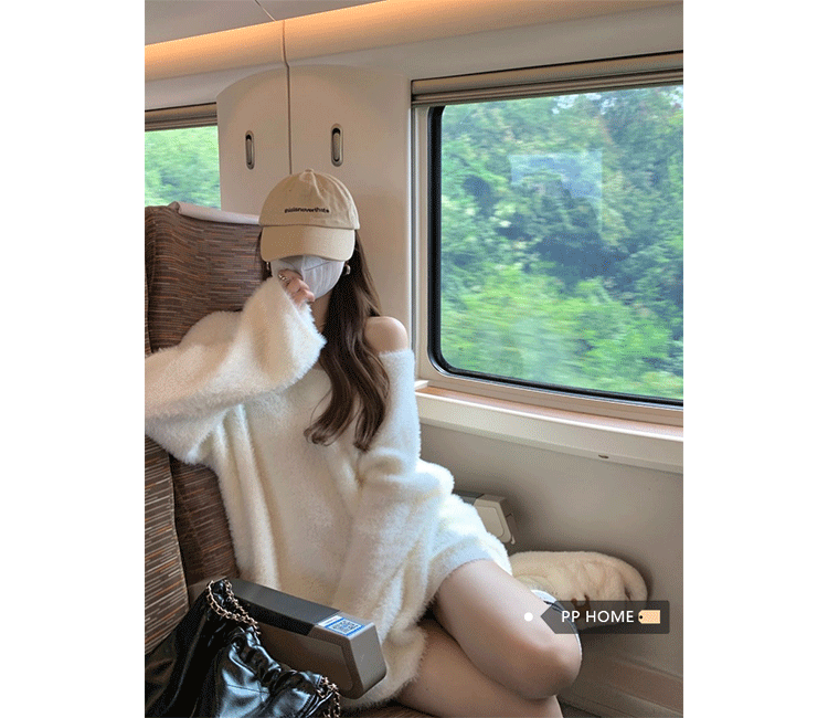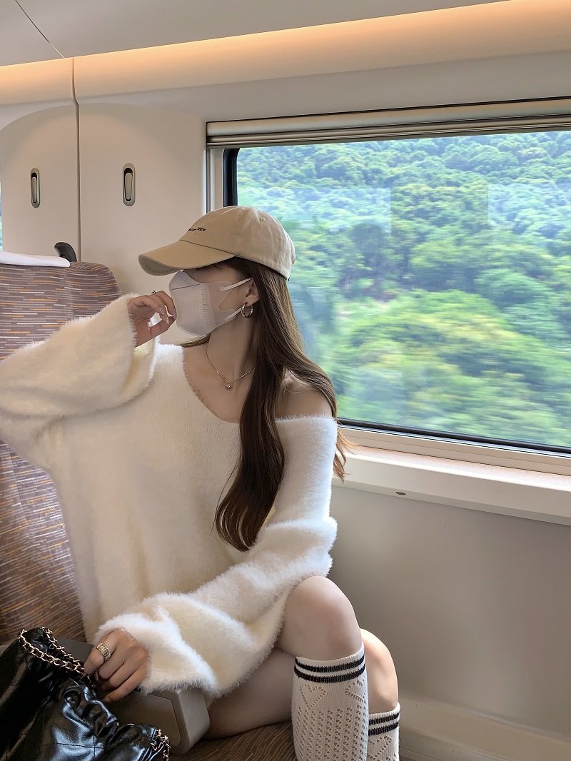 PPHOME溫柔風軟糯仿貂毛V領毛衣女秋季純欲寬松慵懶風針織衫上衣