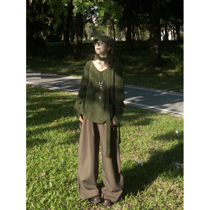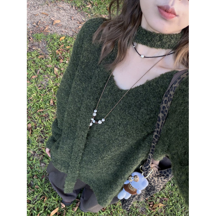 韓系慵懶風V領毛衣女秋季新款氣質復古高級感顯瘦長袖針織衫上衣