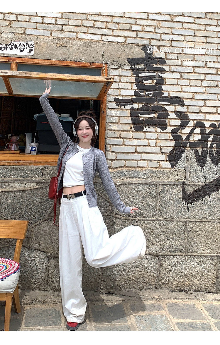 蘇三三 灰色麻花毛衣開衫外套女春季穿搭2026新款韓系氛圍感上衣