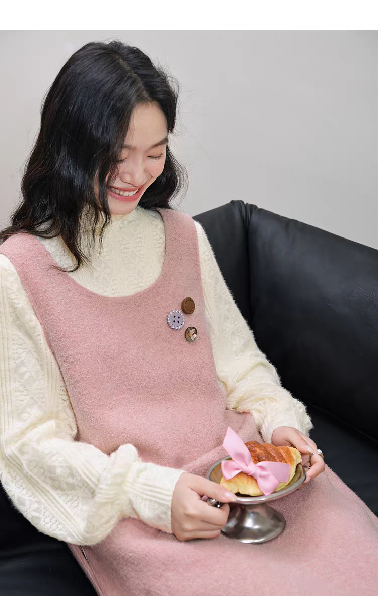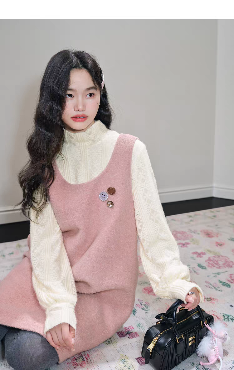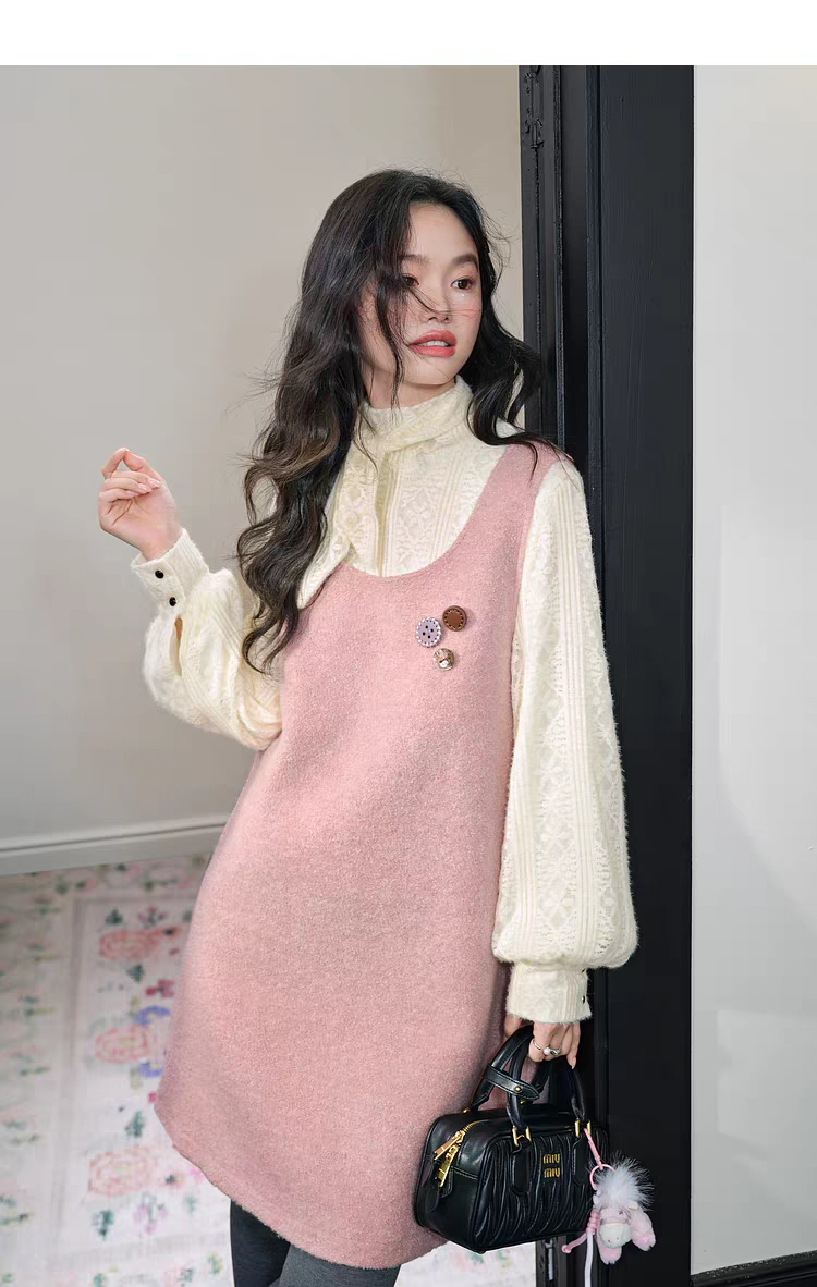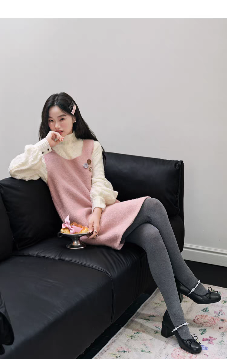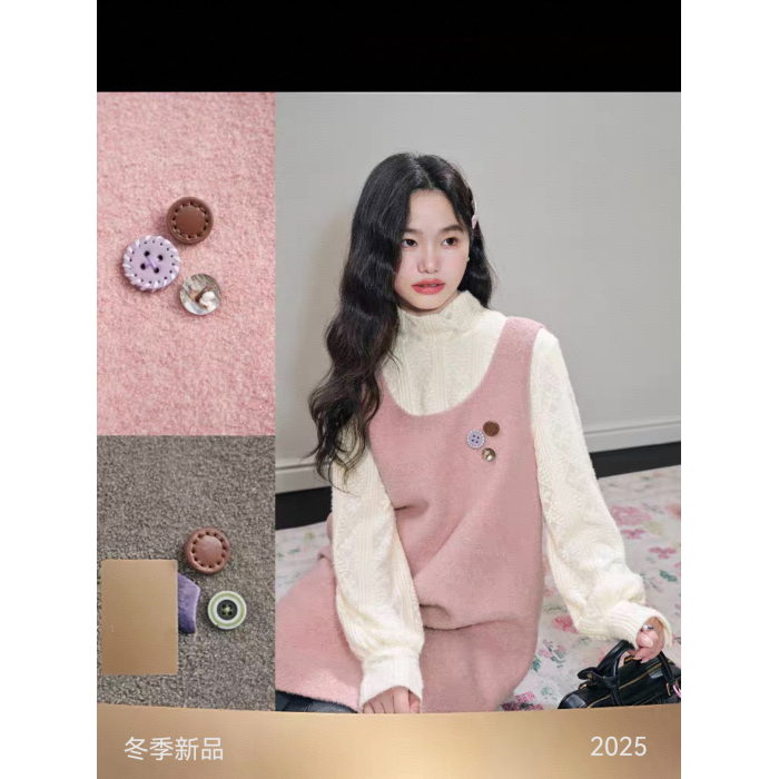粉色新年氛圍感穿搭背心裙短裙女2026秋冬季新款外塔毛呢連衣裙子