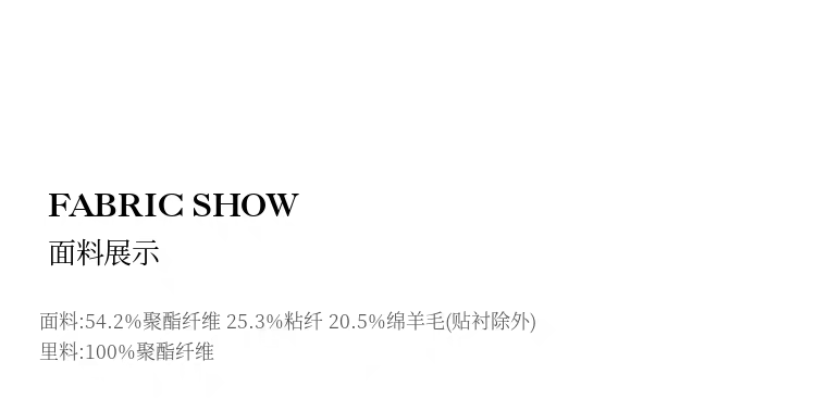 材質成分 聚酯纖維54.2% 粘膠纖維(粘纖)25.3% 羊毛20.5%