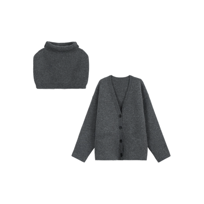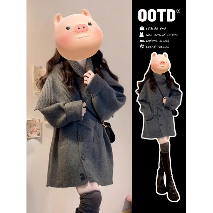 灰色韓系高級感毛衣外套女早春2026新款中長款慵懶風加厚針織上衣