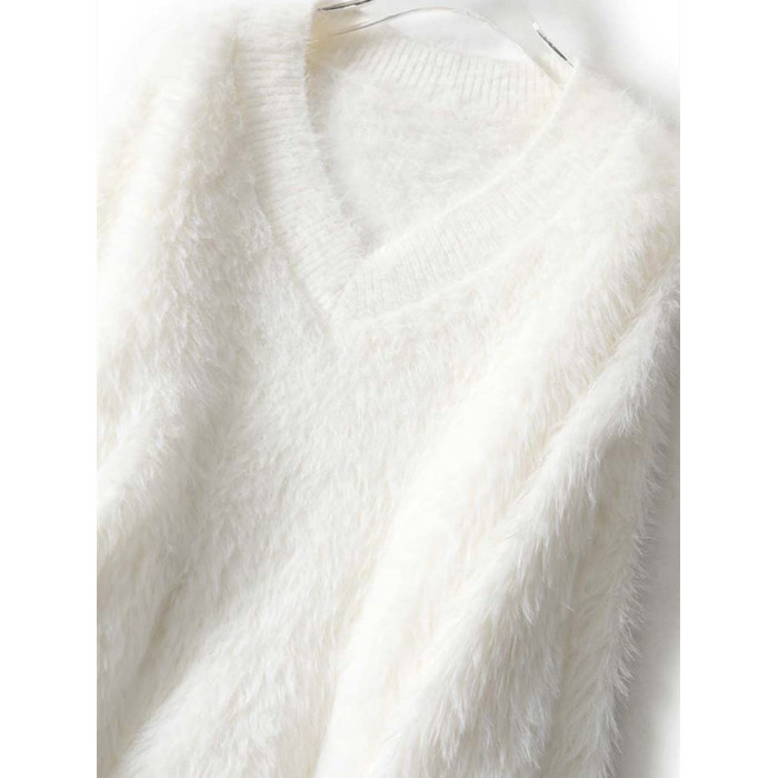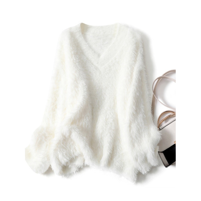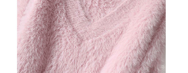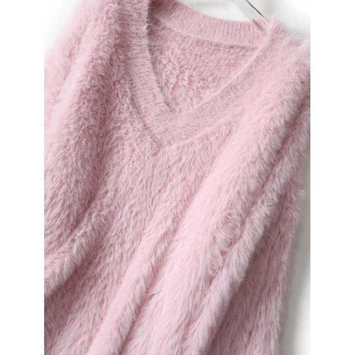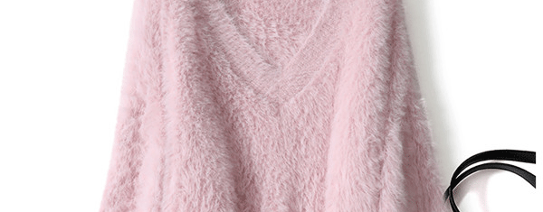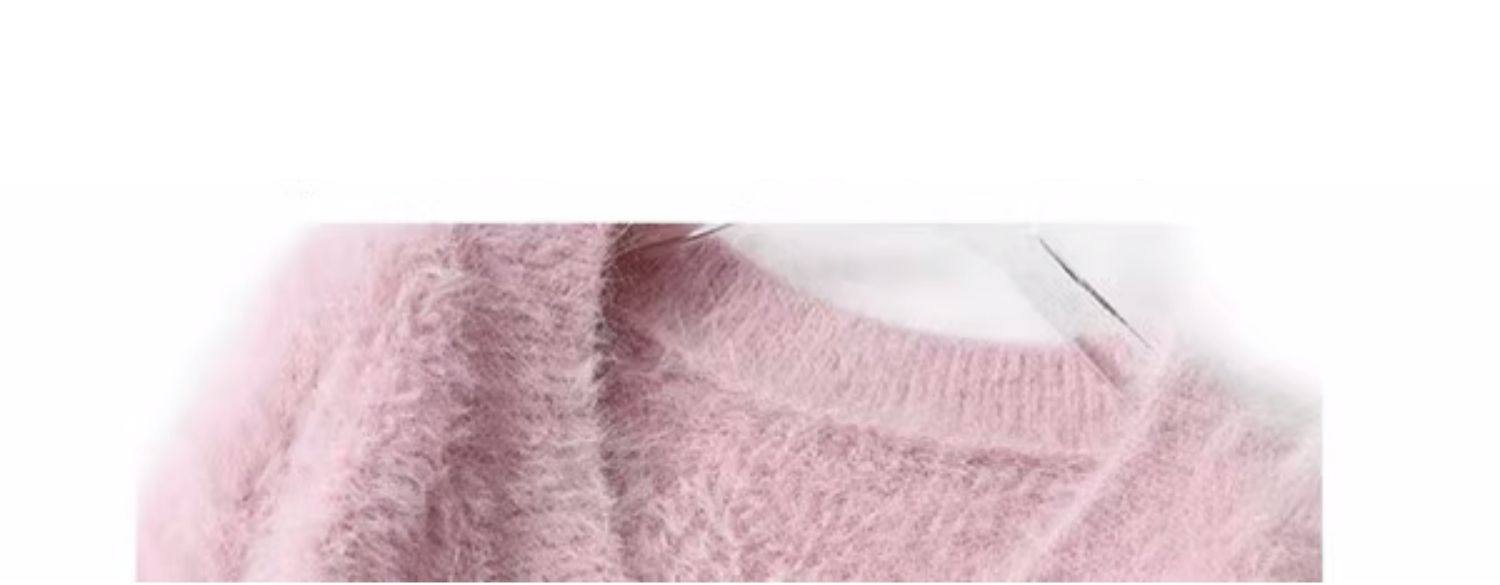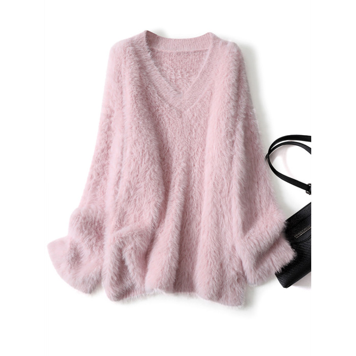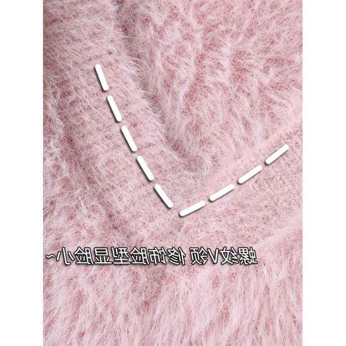 溫柔風粉色仿水貂絨v領毛衣女冬季加厚慵懶軟糯針織衫奶fufu上衣