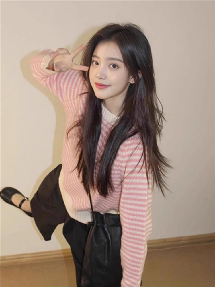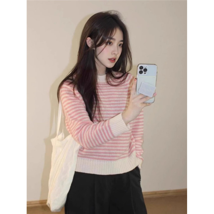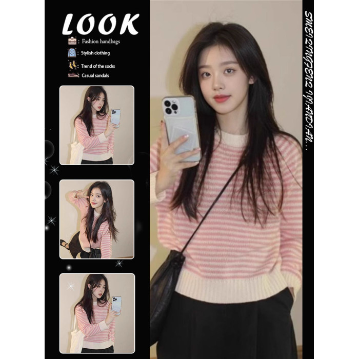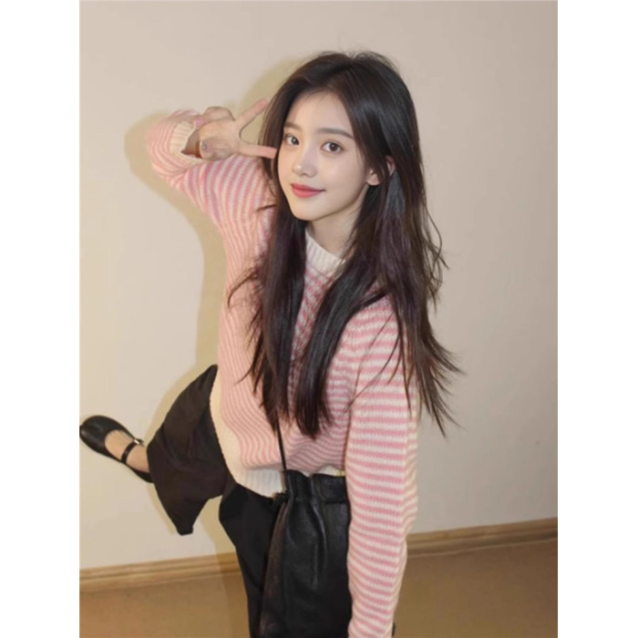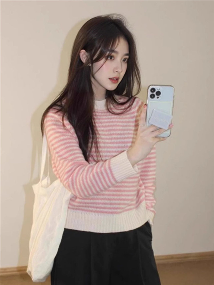粉色多巴胺減齡毛衣女2024秋季慵嬾風時尚氣質上衣寬鬆顯瘦針織衫