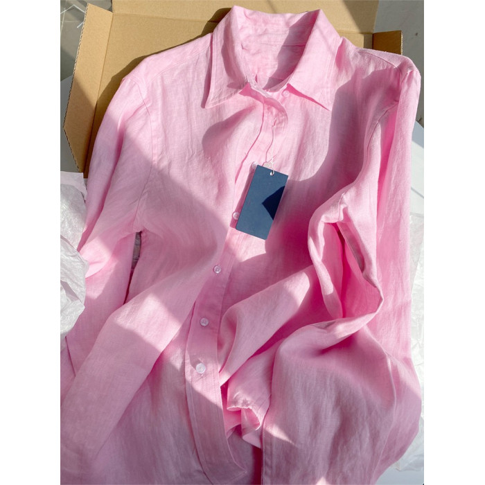 今年流行粉色棉麻高級感襯衫女春夏季2023年新款防曬長袖別致上衣