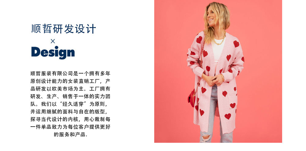 2025歐美新款情人節愛心針織開衫愛心口袋V領中長款外套 女