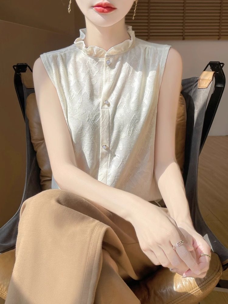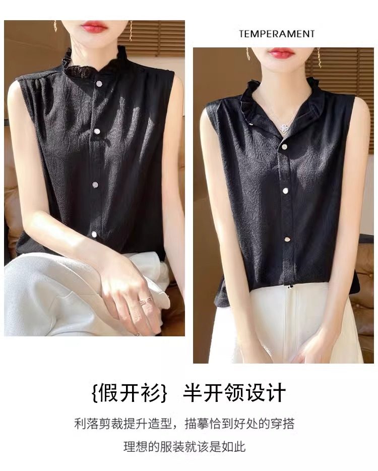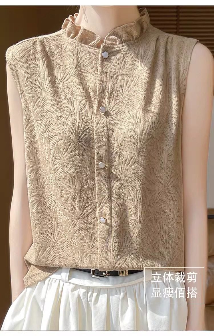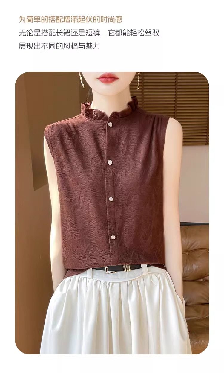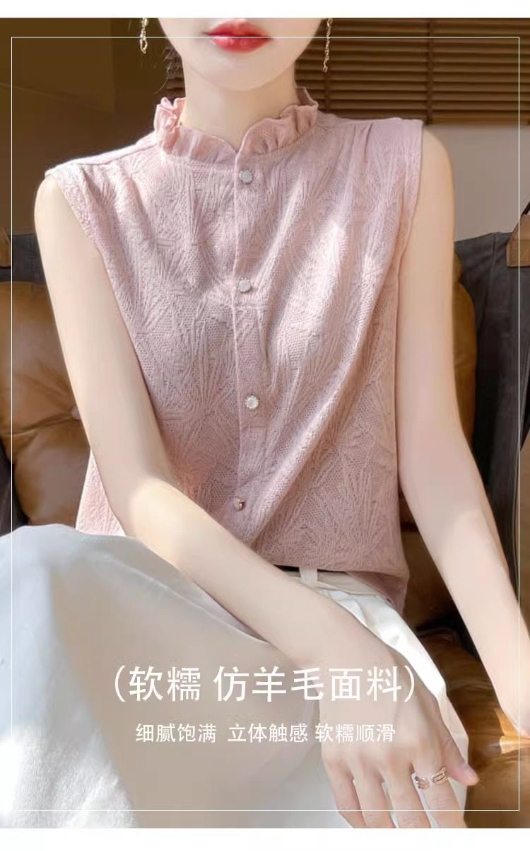 高級感吊帶背心內搭女花邊領無袖襯衫針織西裝打底衫精仿羊毛上衣
