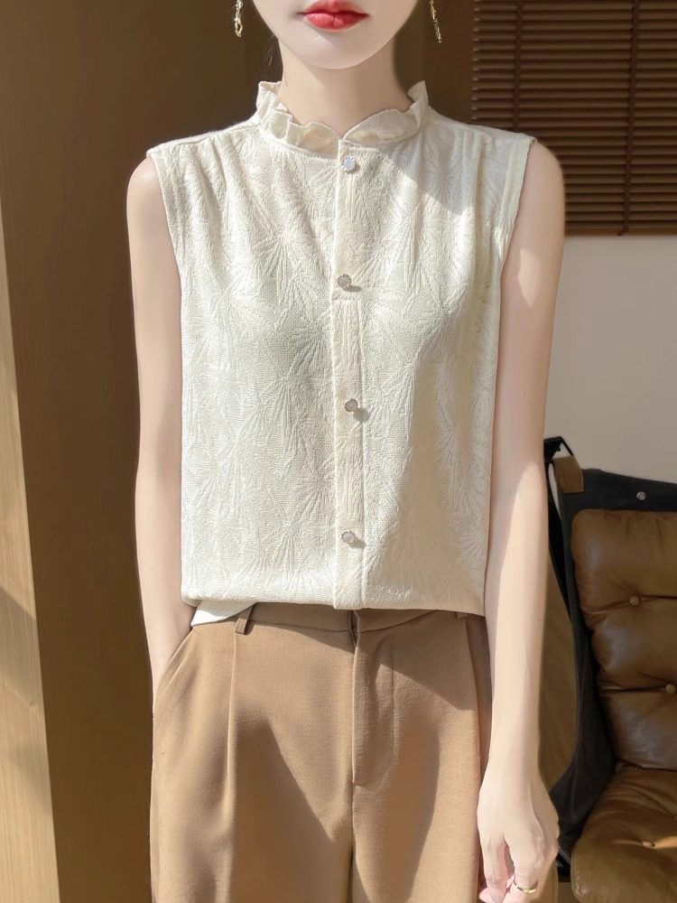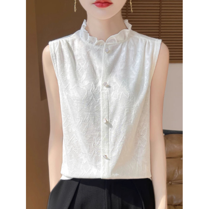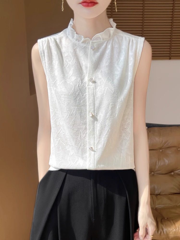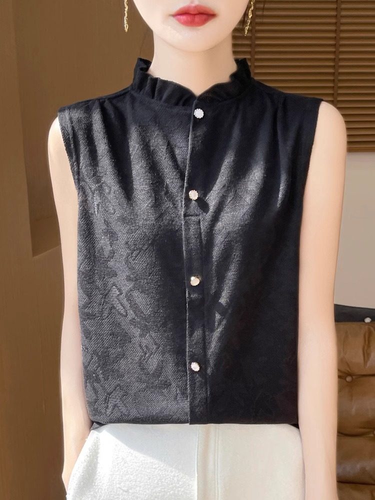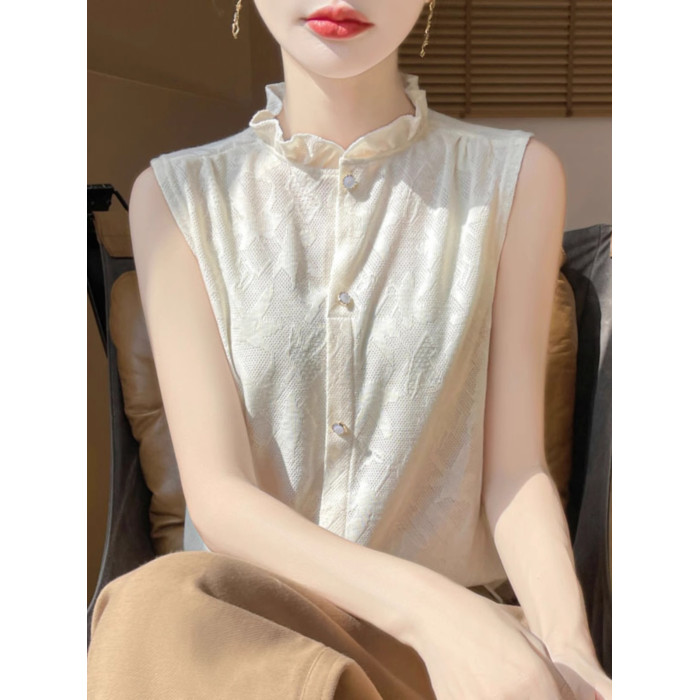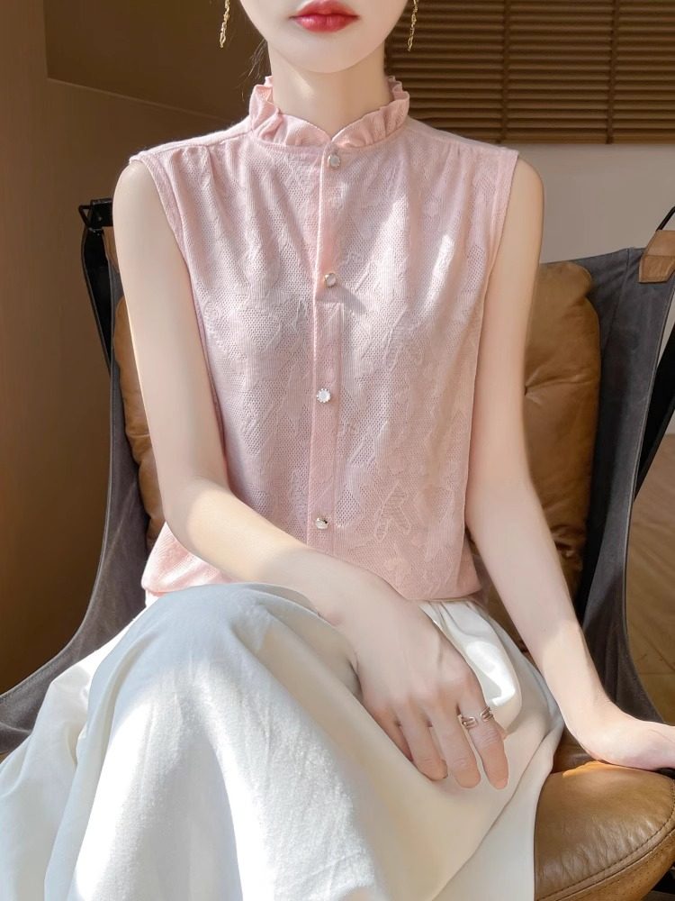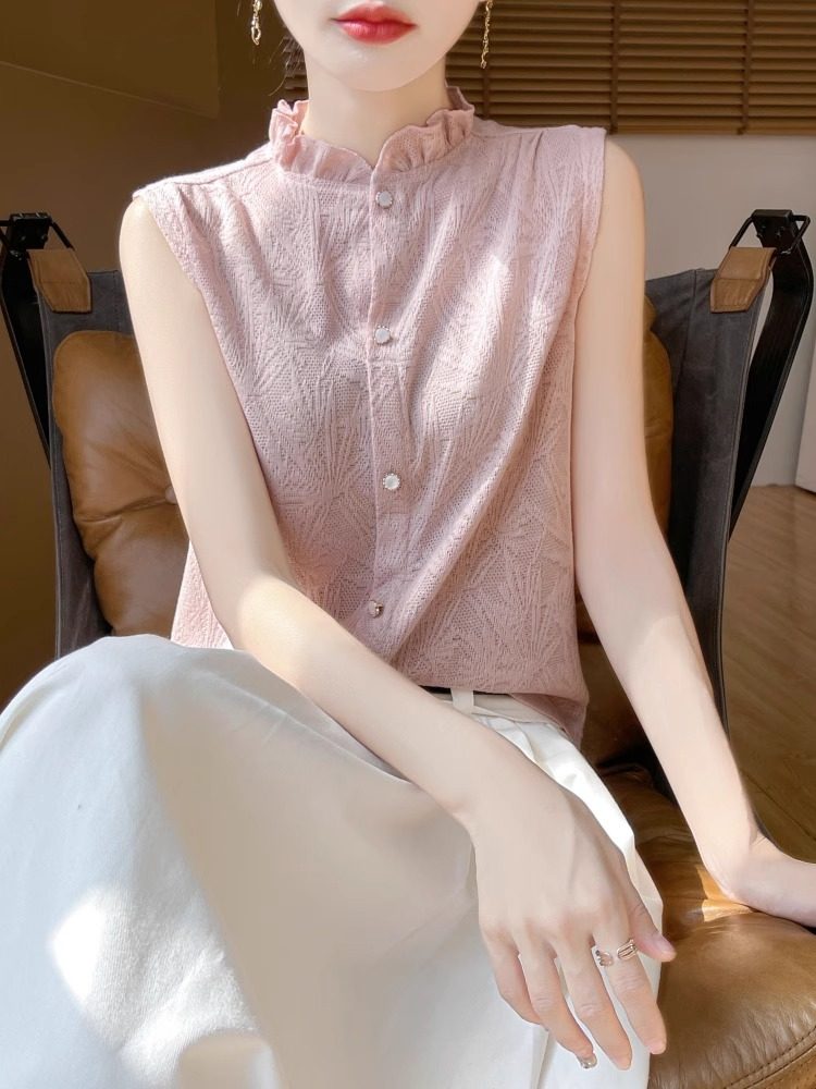 高級感吊帶背心內搭女花邊領無袖襯衫針織西裝打底衫精仿羊毛上衣