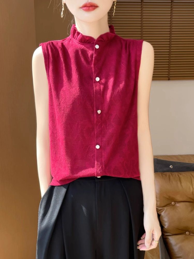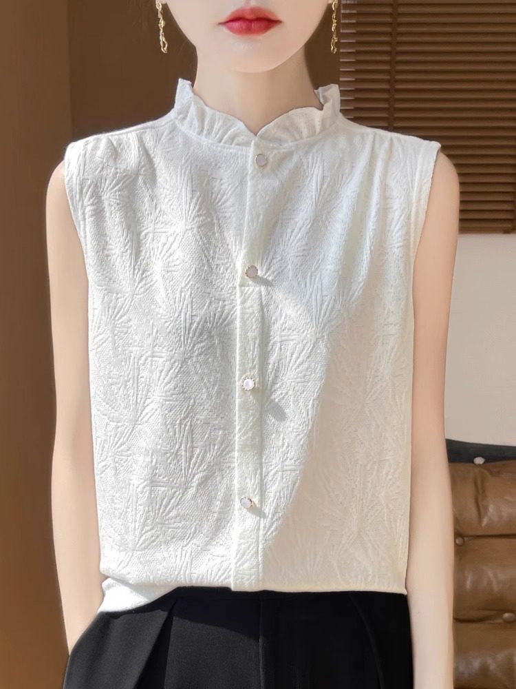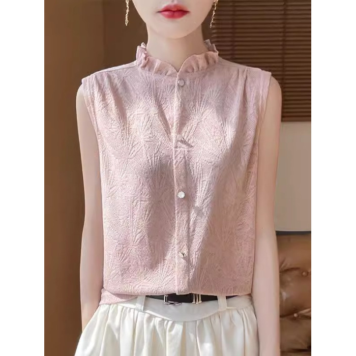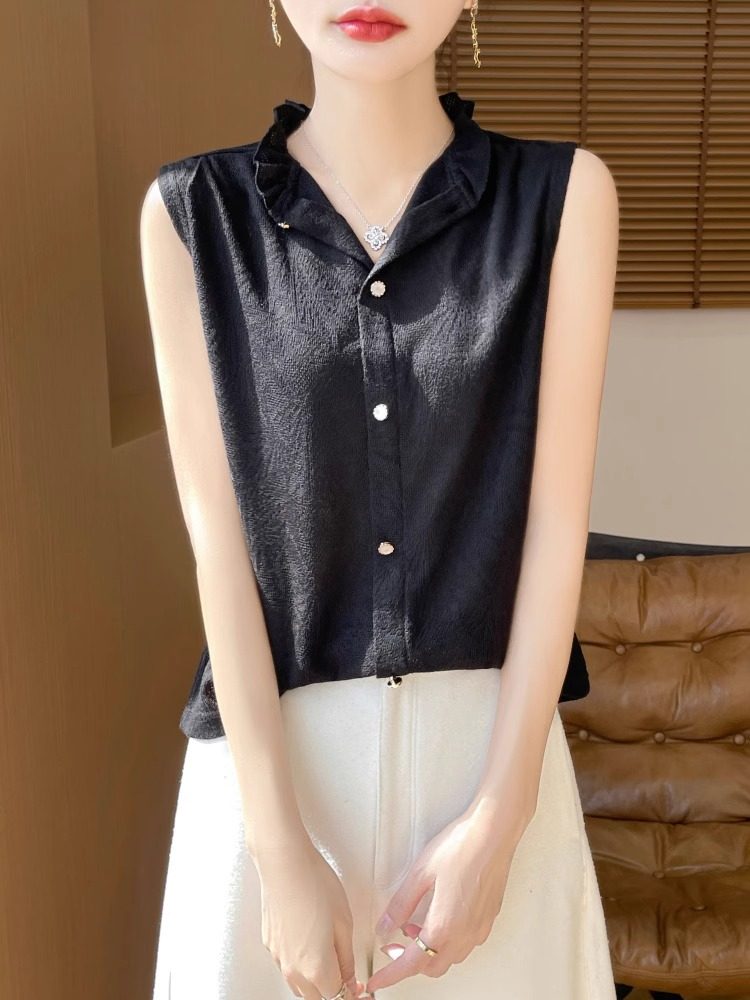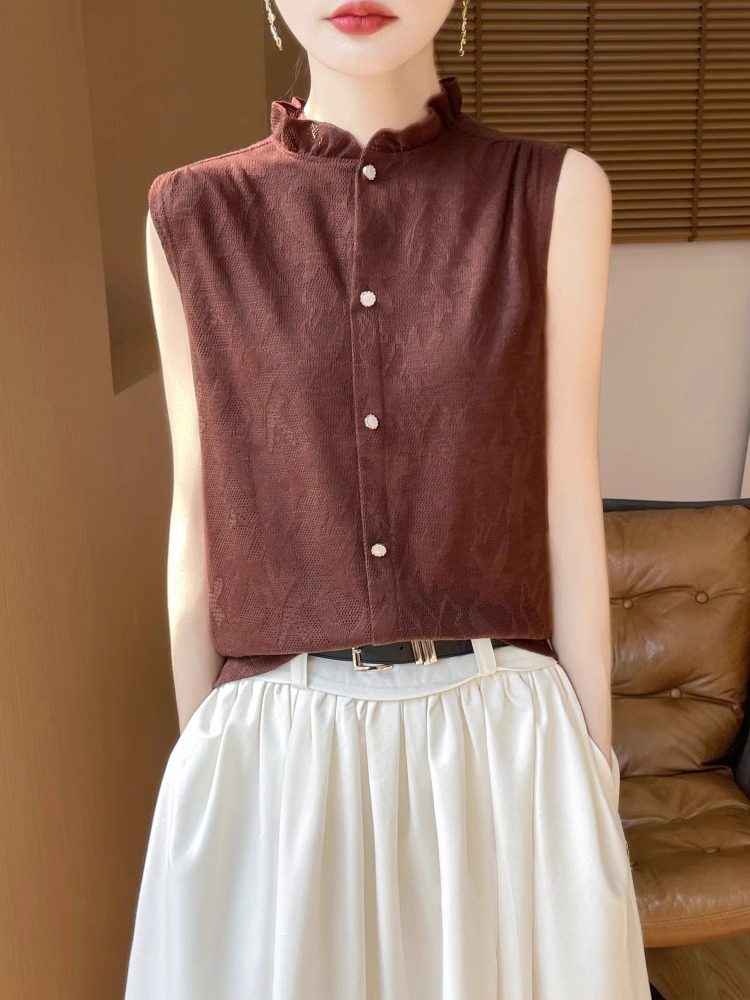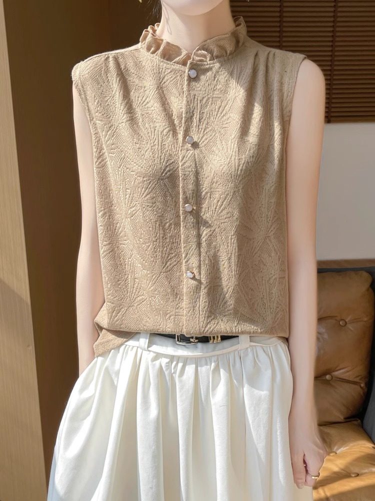 高級感吊帶背心內搭女花邊領無袖襯衫針織西裝打底衫精仿羊毛上衣