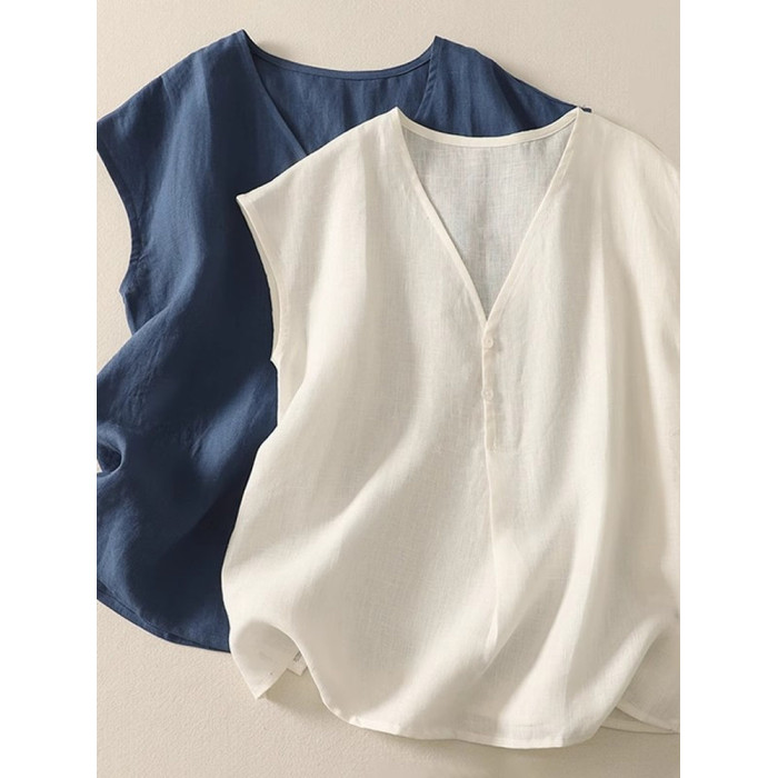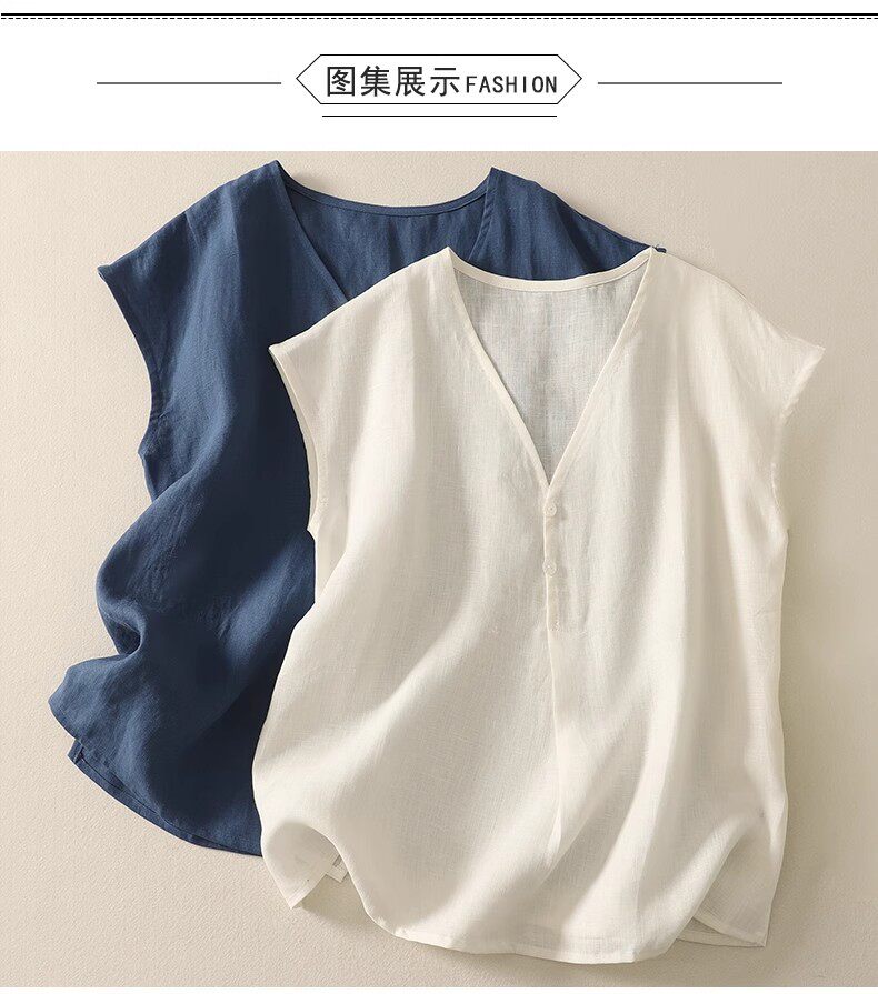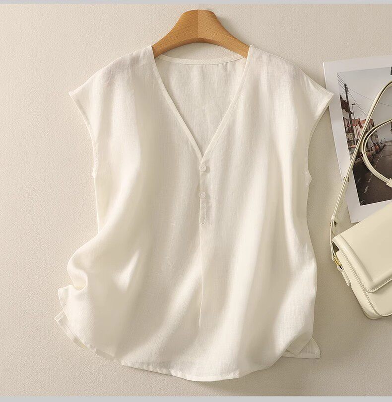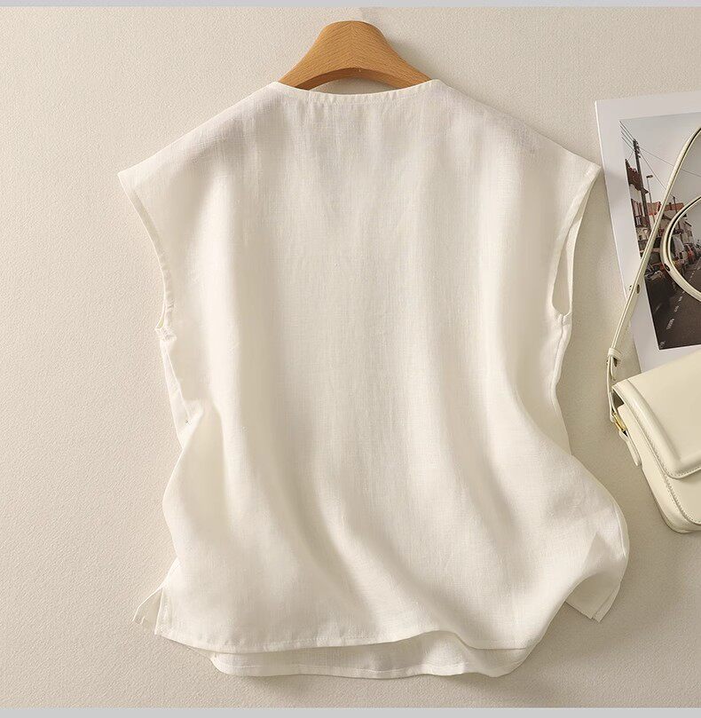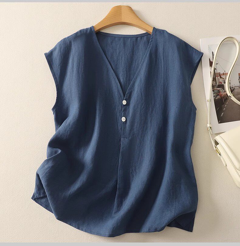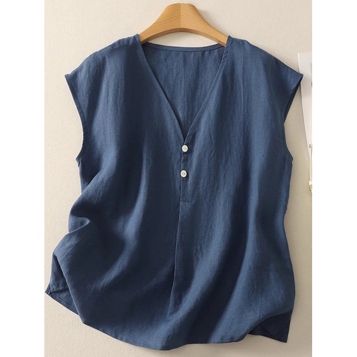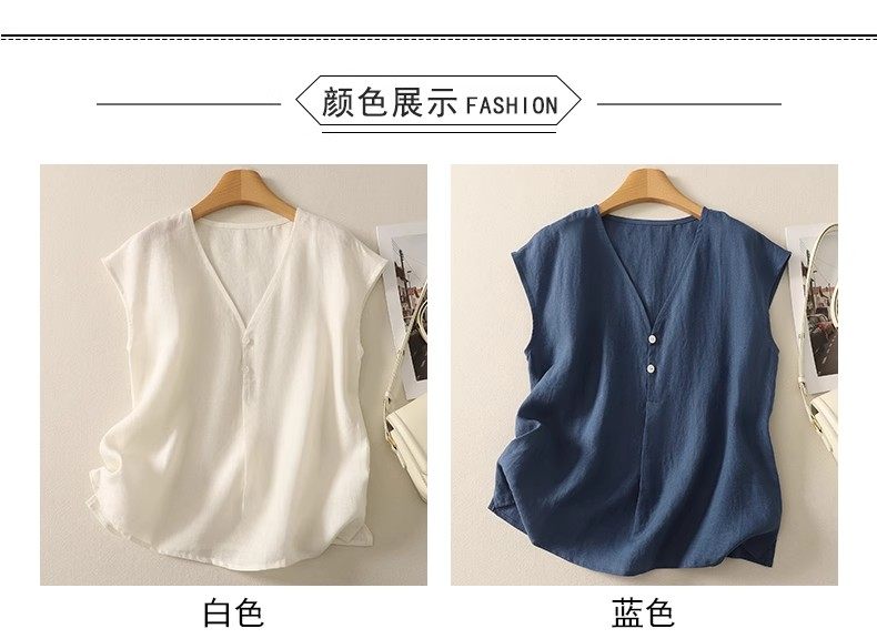 棉麻背心上衣夏季薄款休閒氣質v領襯衫寬鬆顯瘦無袖苧麻小衫女