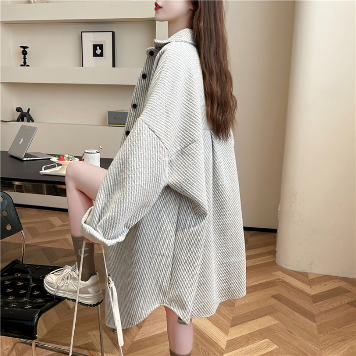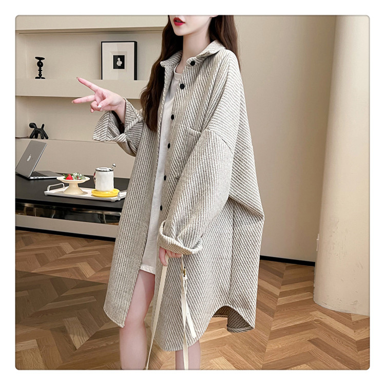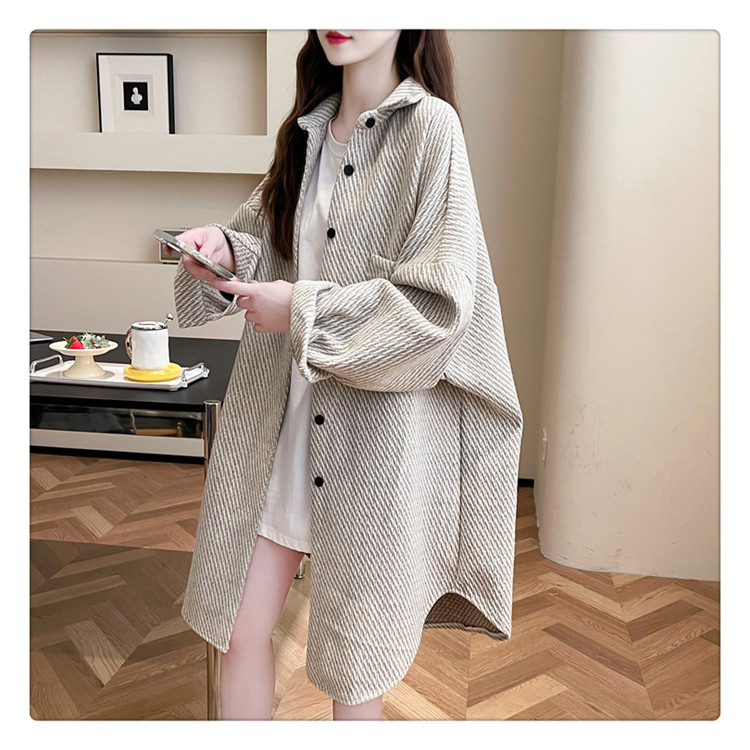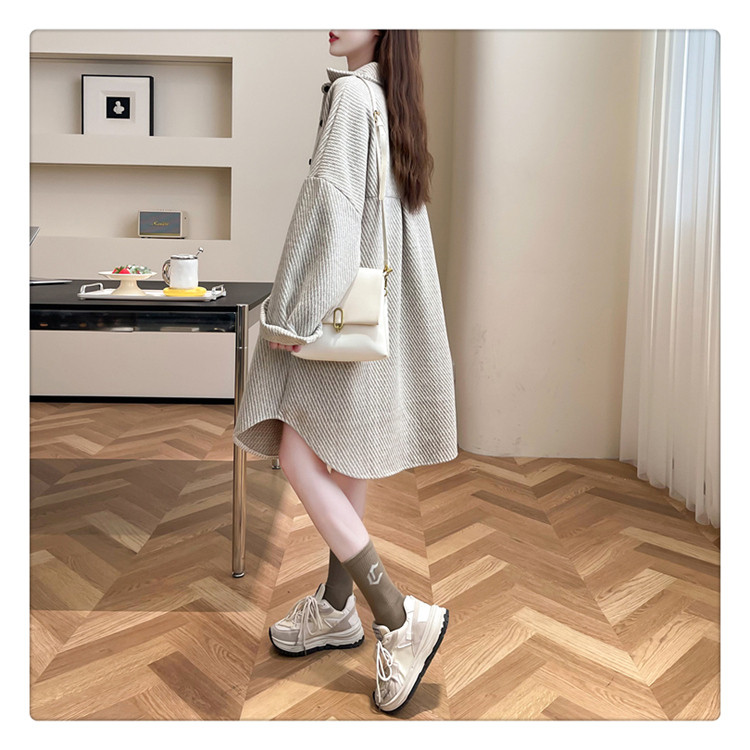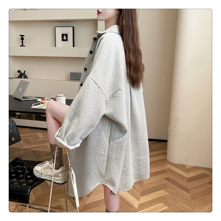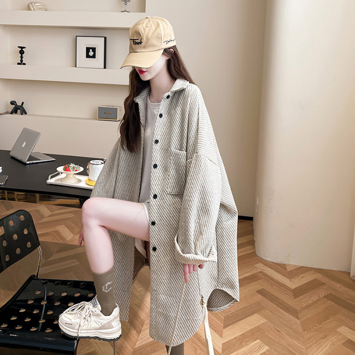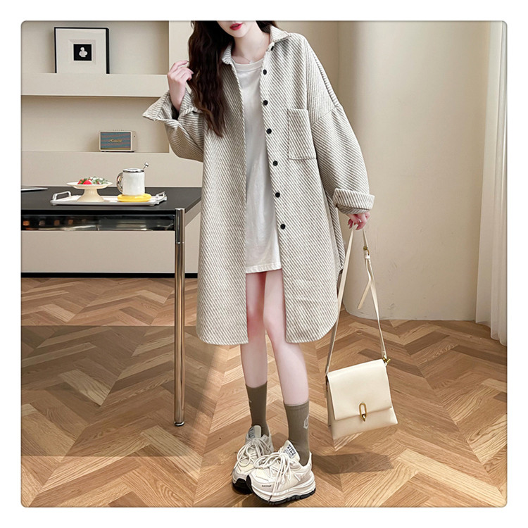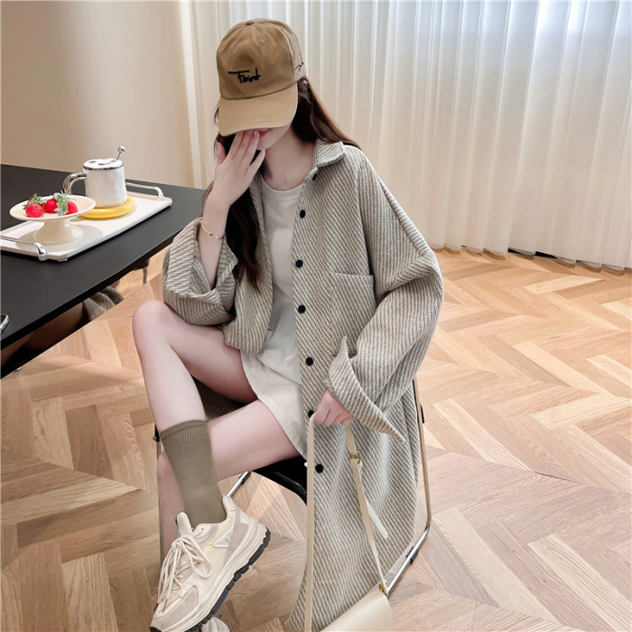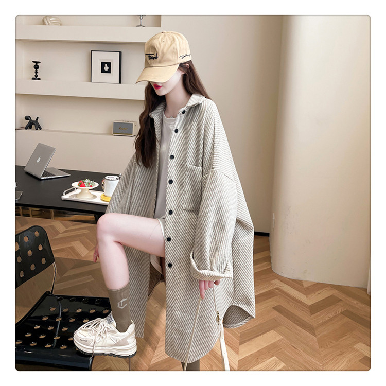 2026秋冬季新款大碼純色中長款寬鬆加絨長袖襯衫女開衫上衣外套潮