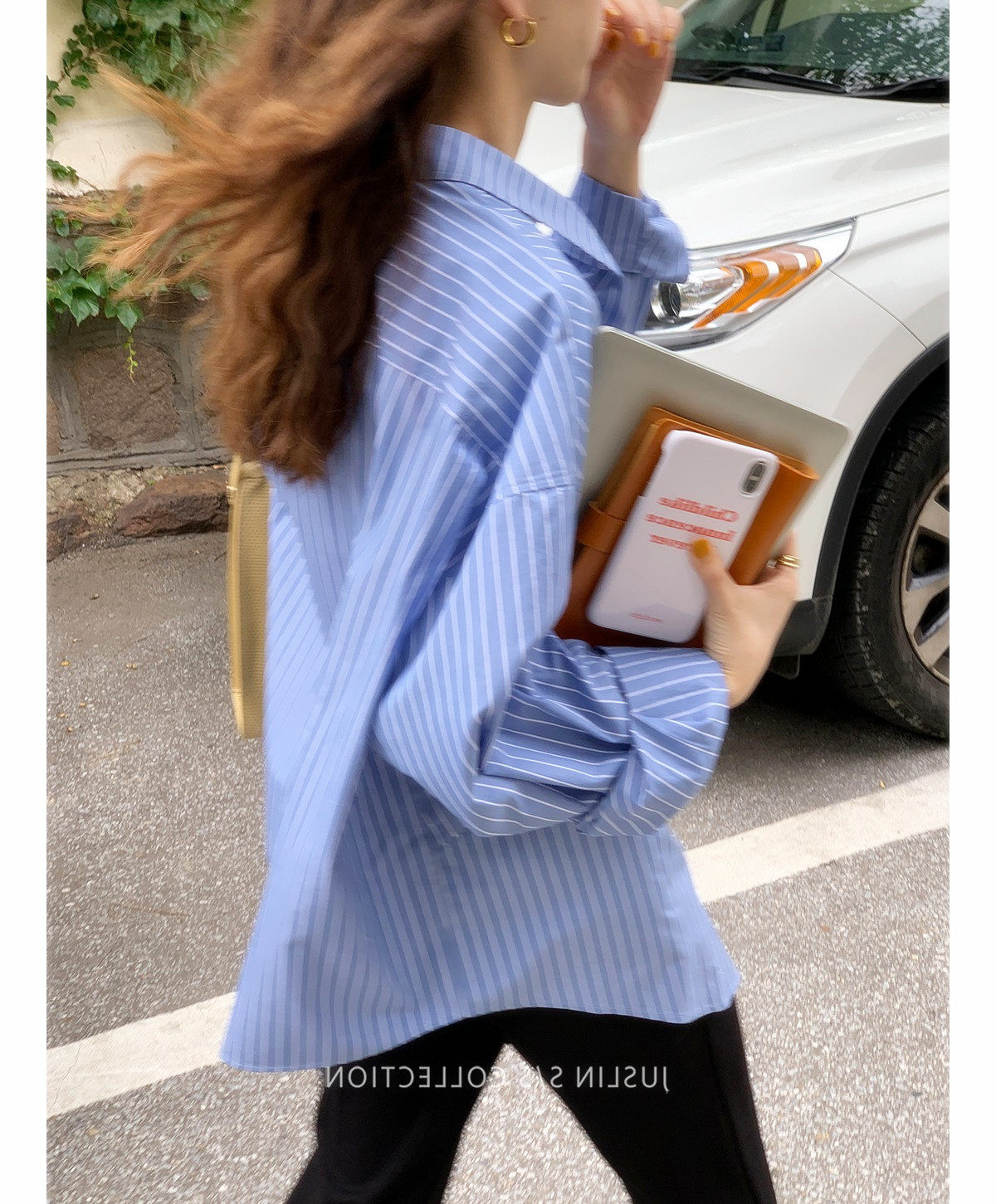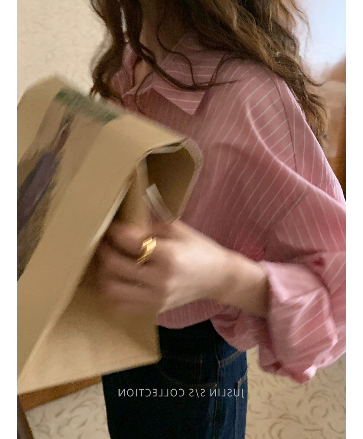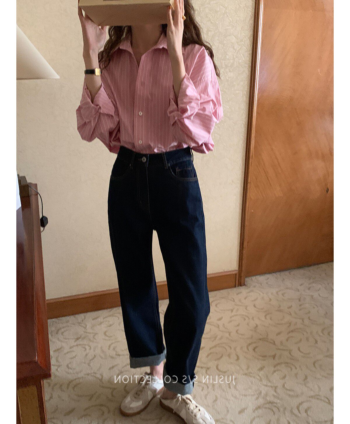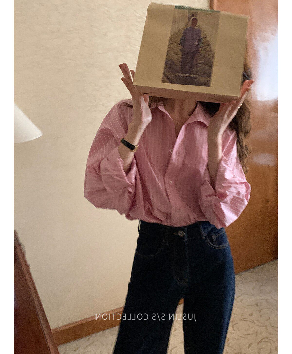 2026春秋粉色條紋減齡寬鬆百搭襯衫女韓版設計感溫柔慵懶圓領襯衣