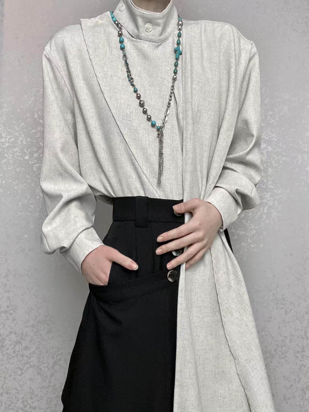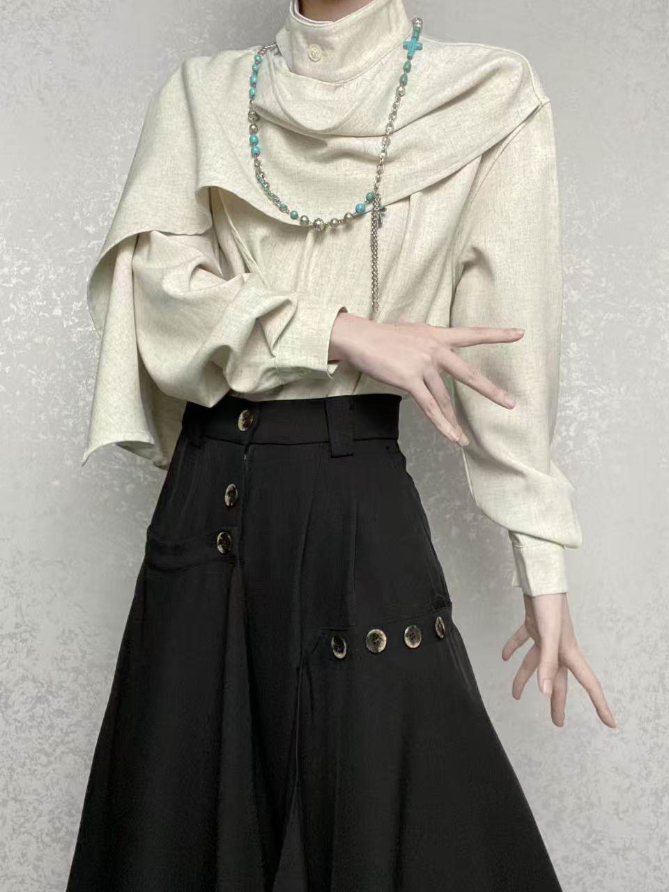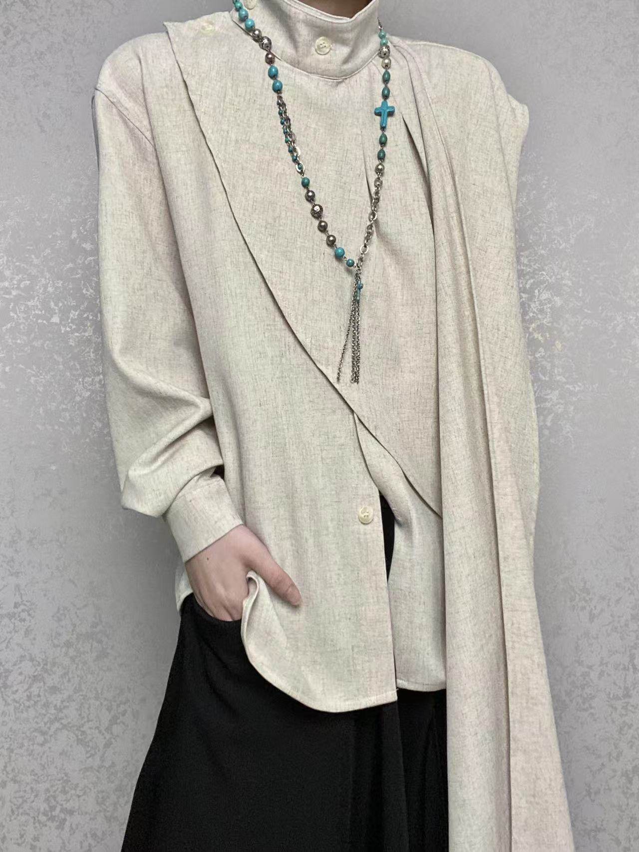 ROAE 原創復古春季飄帶圍巾領襯衫設計感小衆新中式襯衣長袖上衣