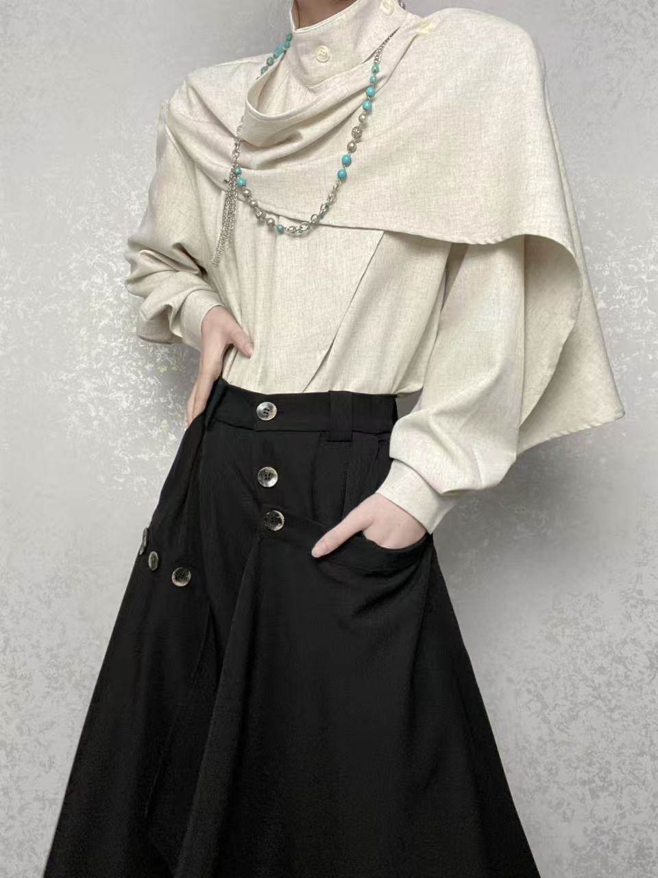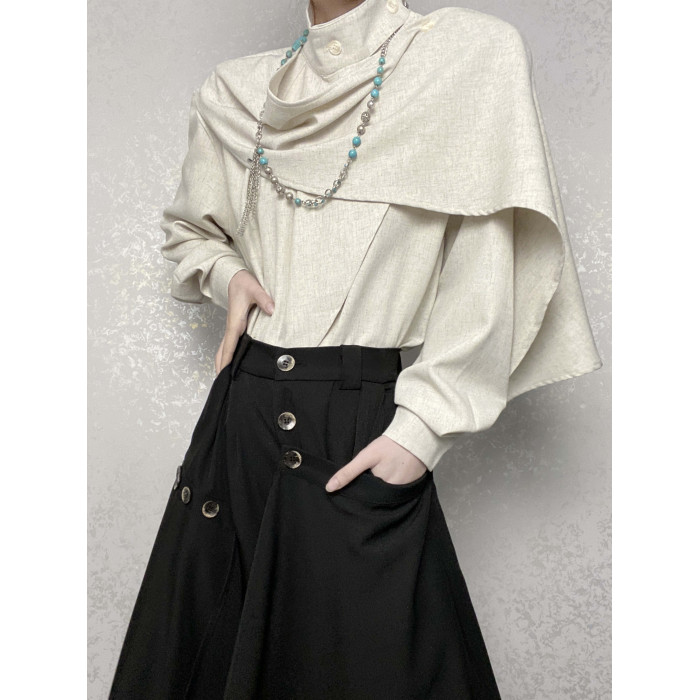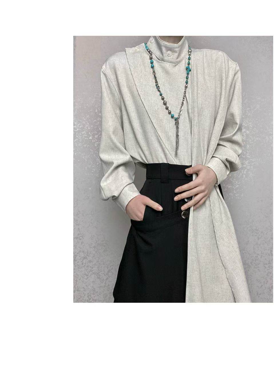 ROAE 原創復古春季飄帶圍巾領襯衫設計感小衆新中式襯衣長袖上衣