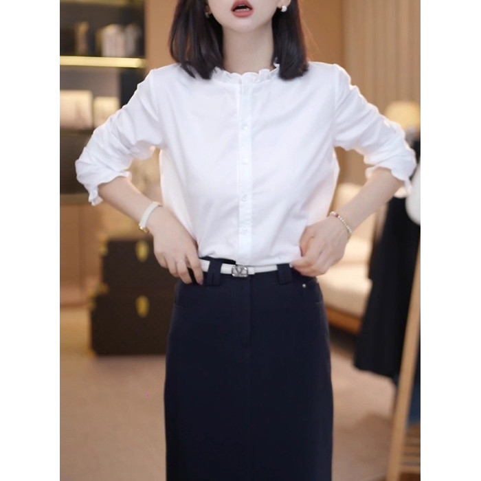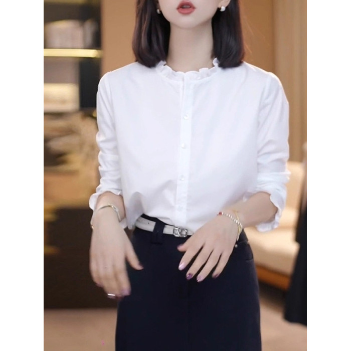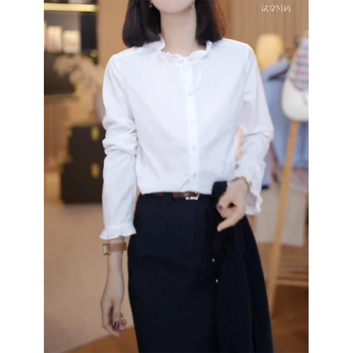 大碼時尚百搭荷葉邊白色襯衫女春季2026新款胖mm顯瘦氣質寬鬆上衣