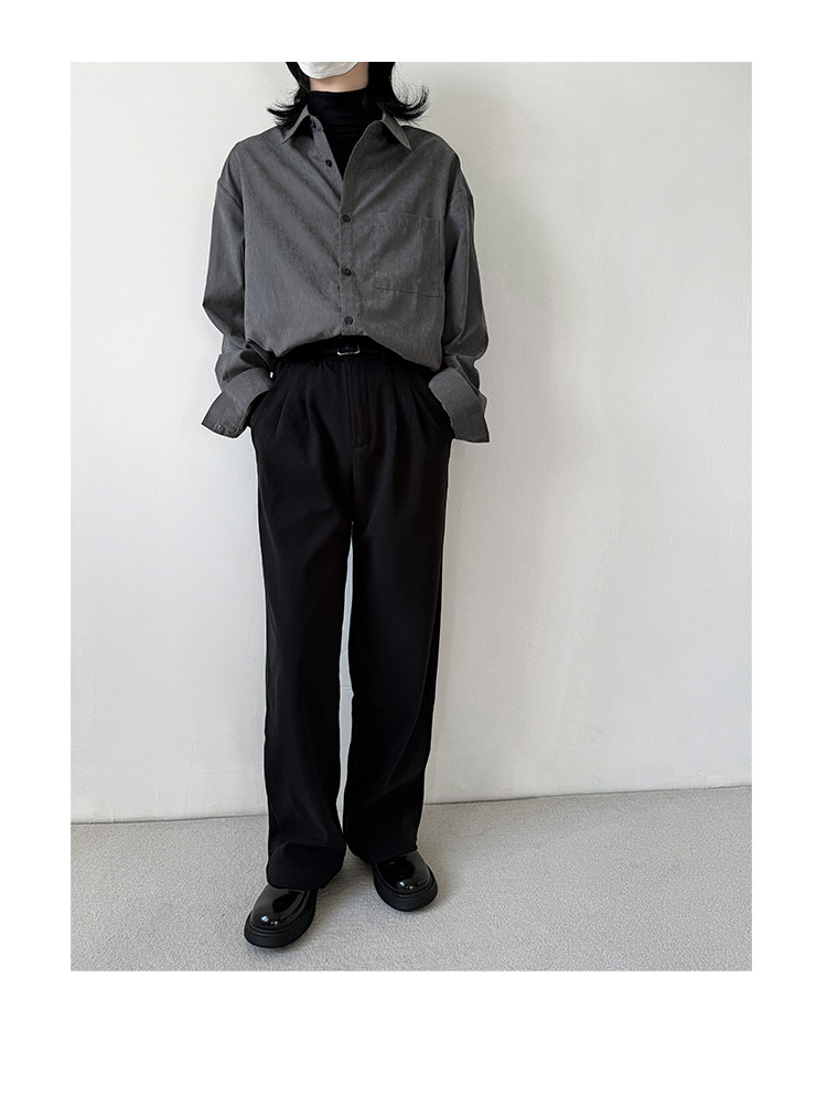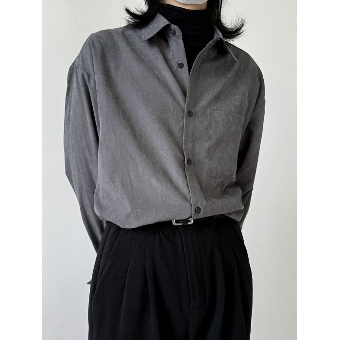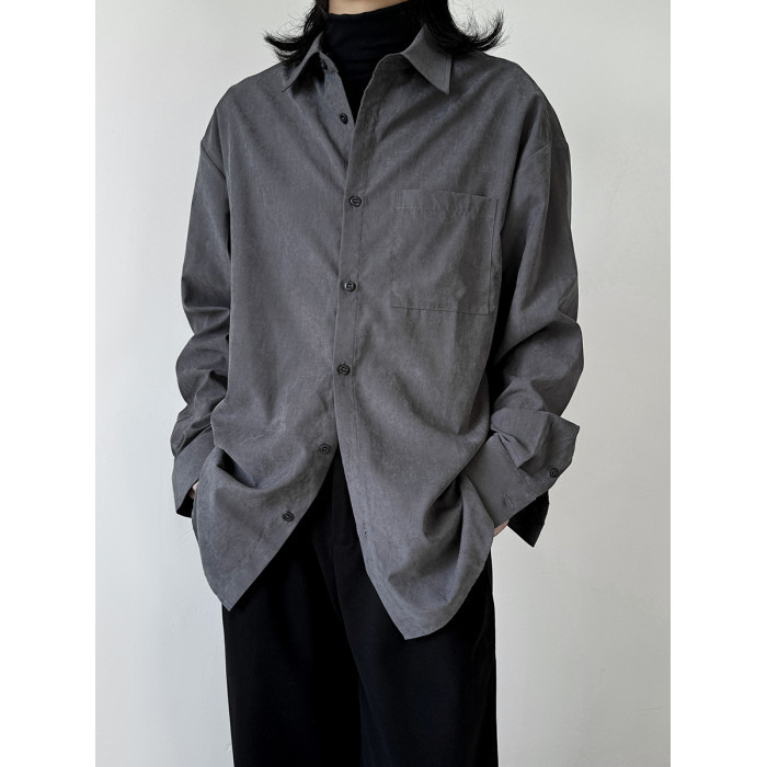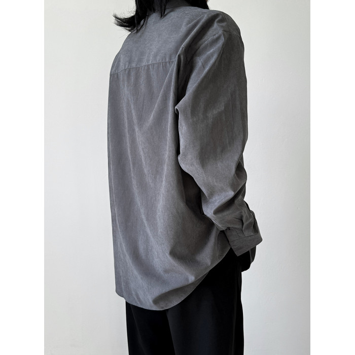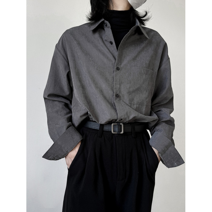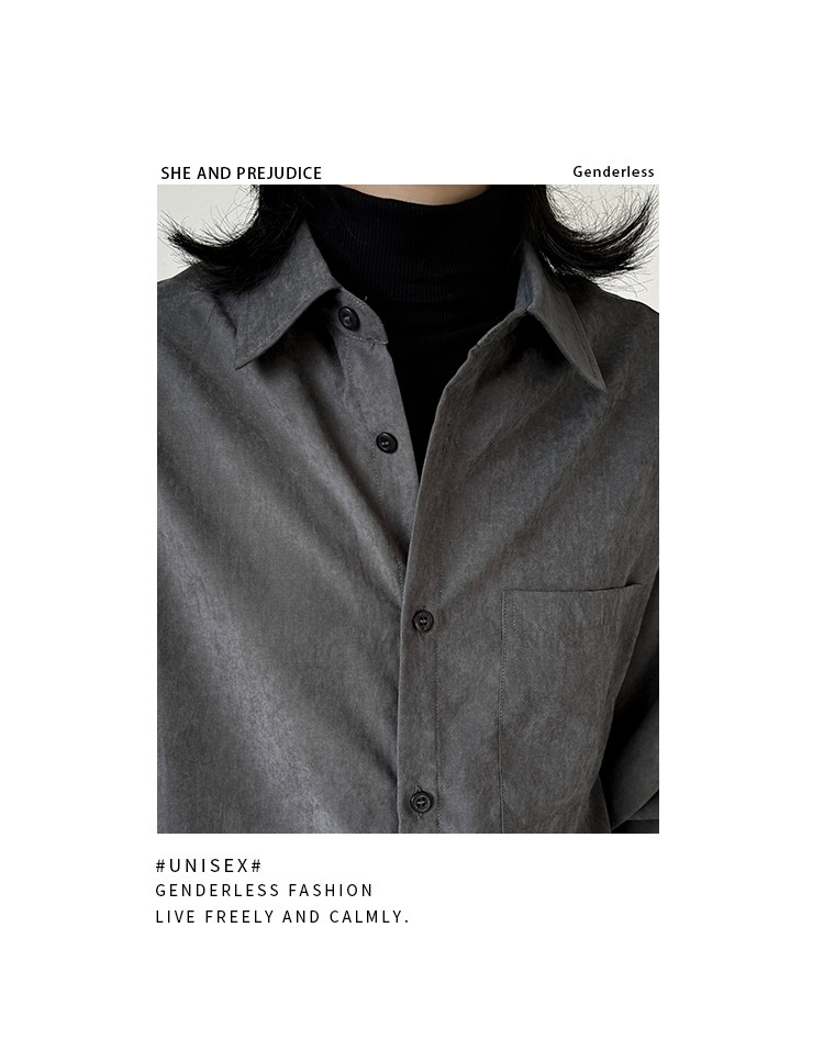 她與偏見 冷色系灰色襯衫長袖寬鬆垂墜感簡約法式慵懶風曡穿上衣