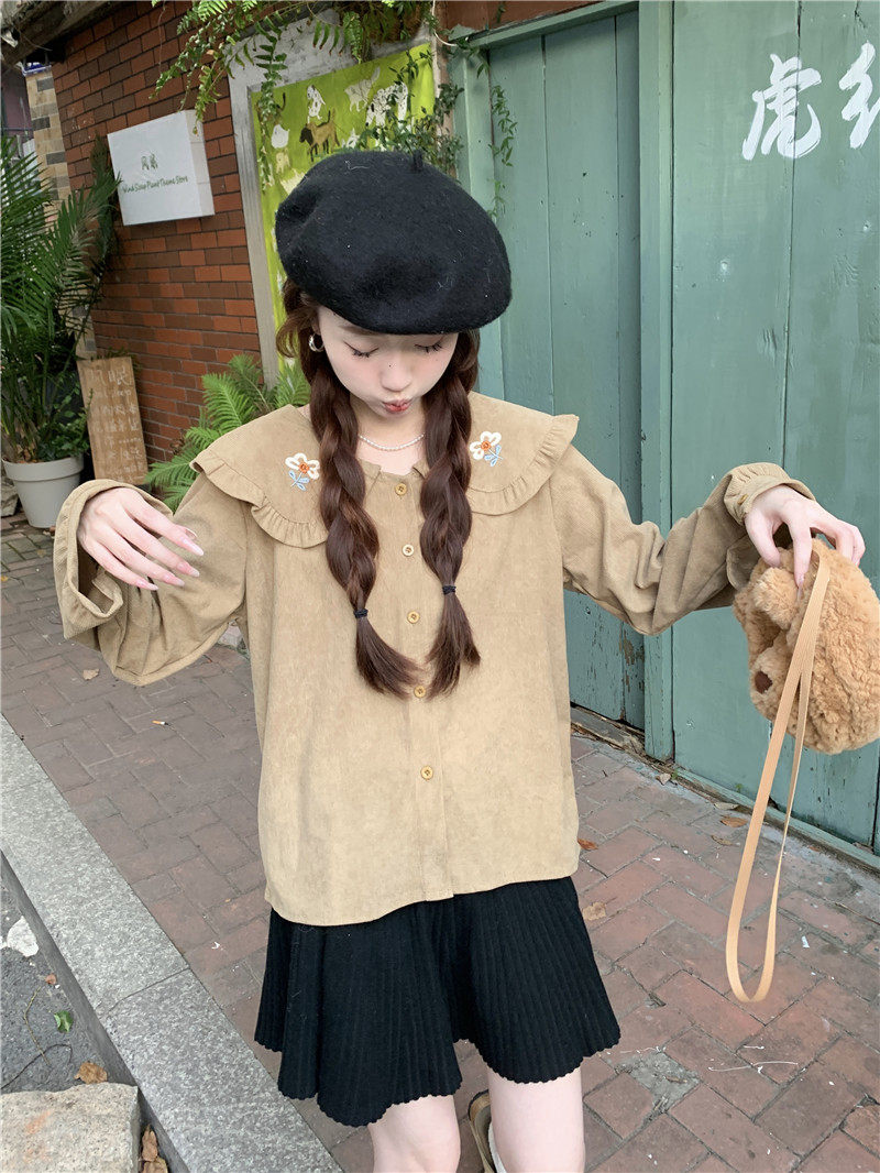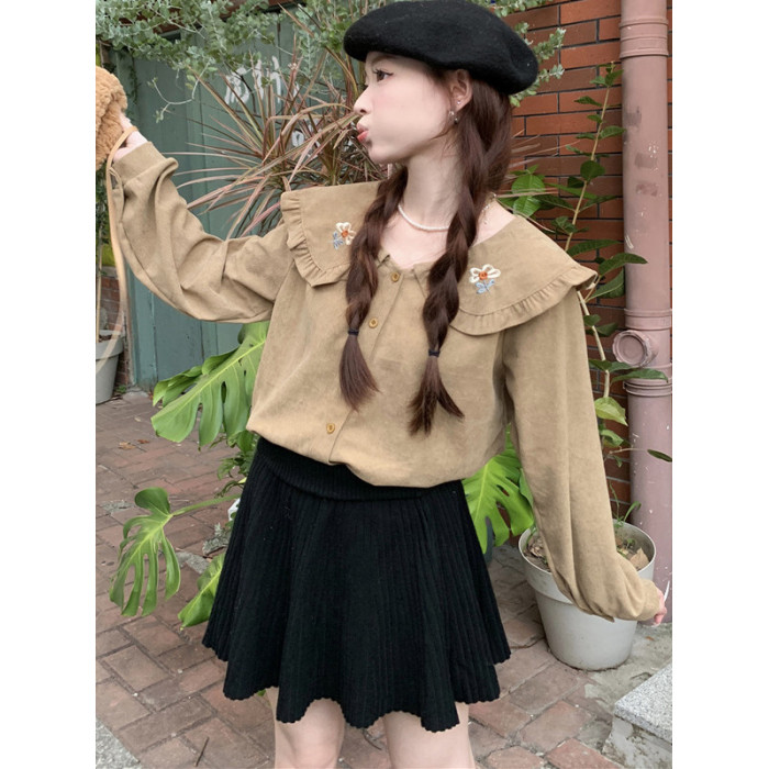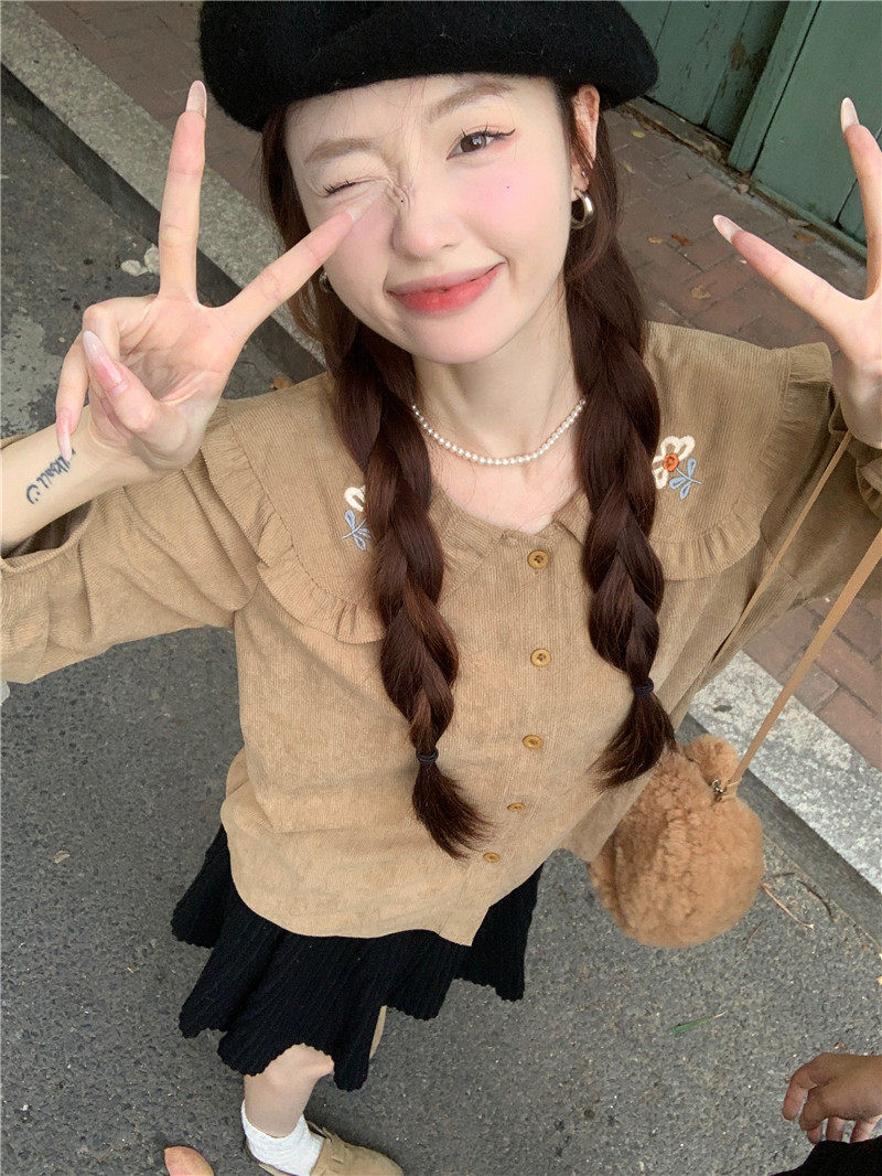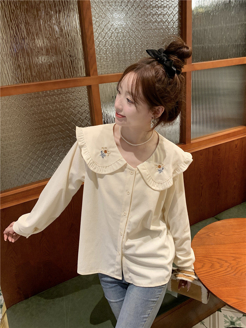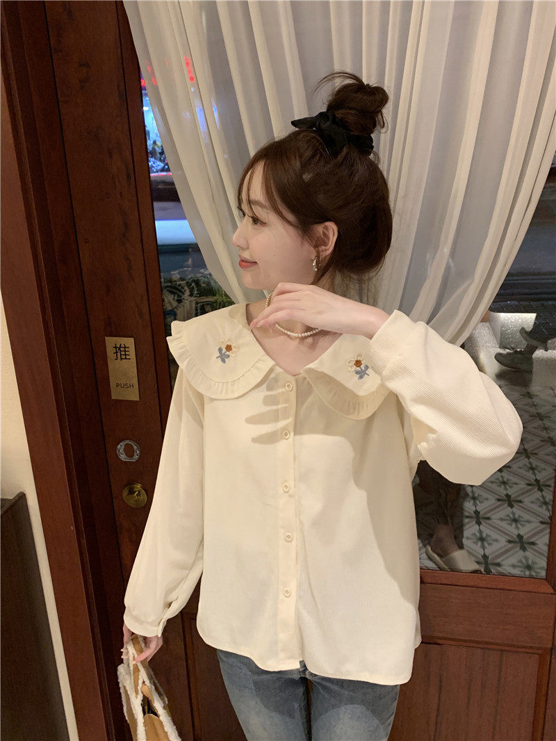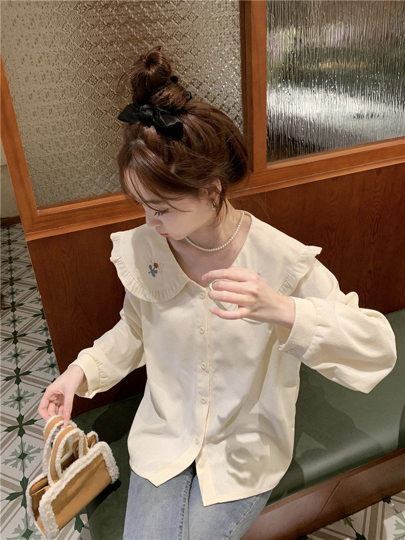 2025年春秋襯衣女法式甜美寬鬆休閒娃娃領襯衣刺綉小衆學院風襯衫