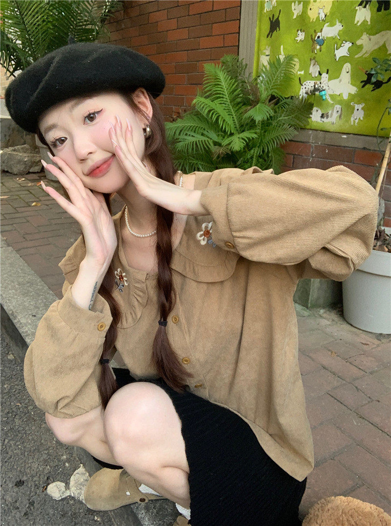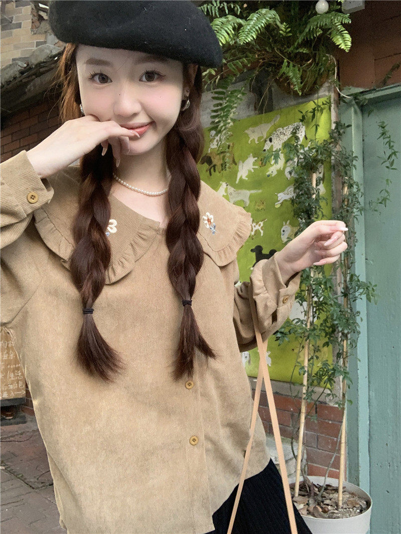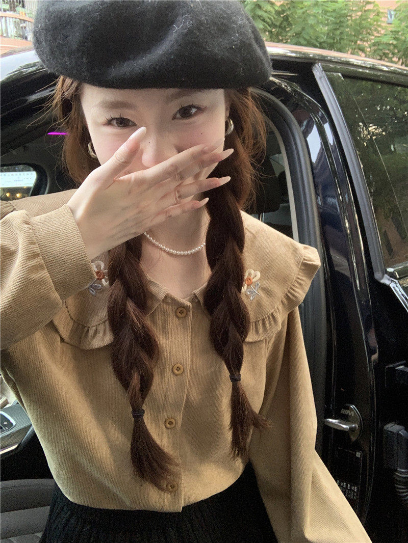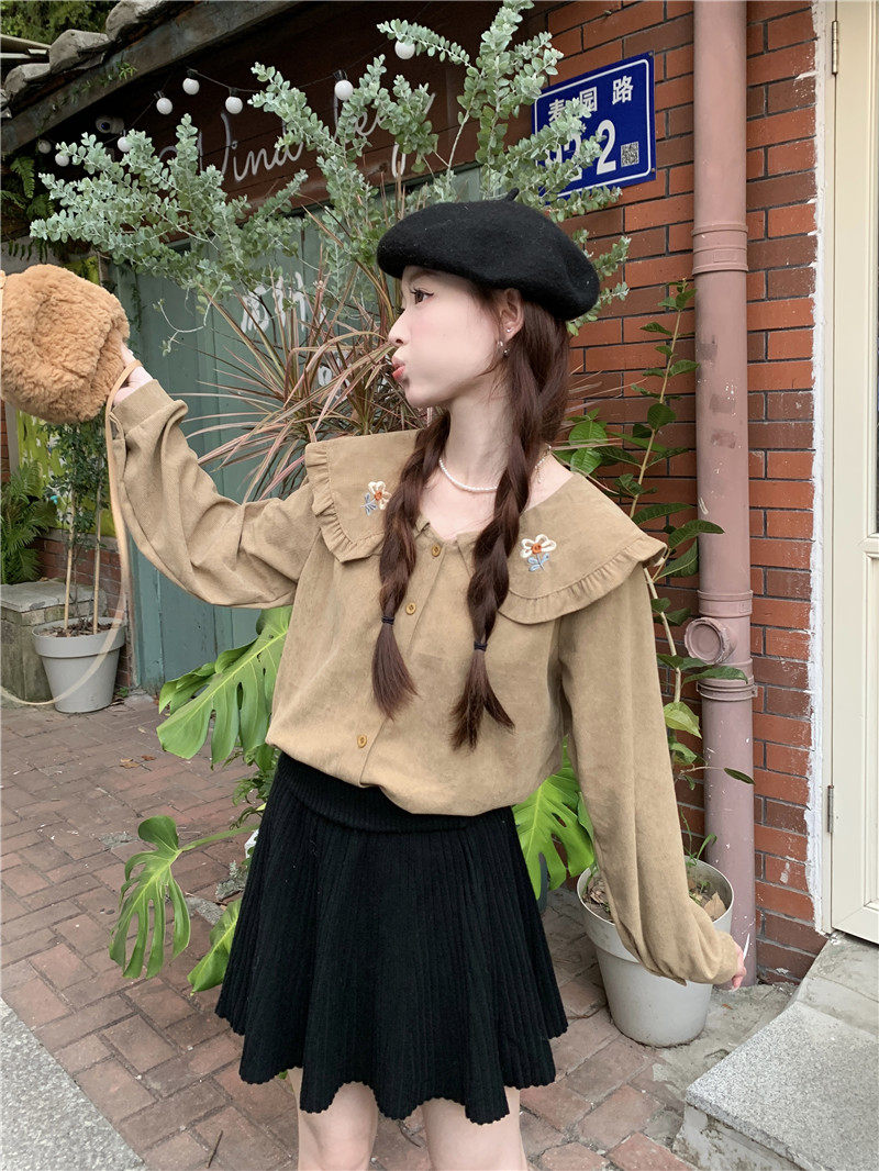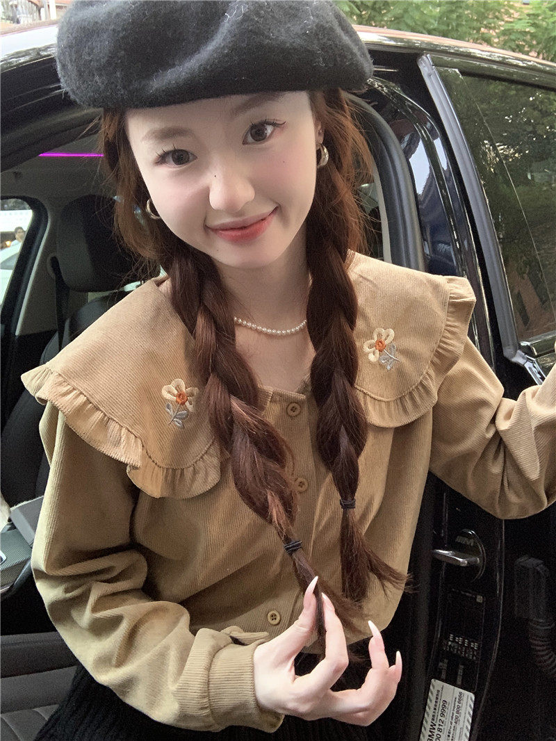 2025年春秋襯衣女法式甜美寬鬆休閒娃娃領襯衣刺綉小衆學院風襯衫