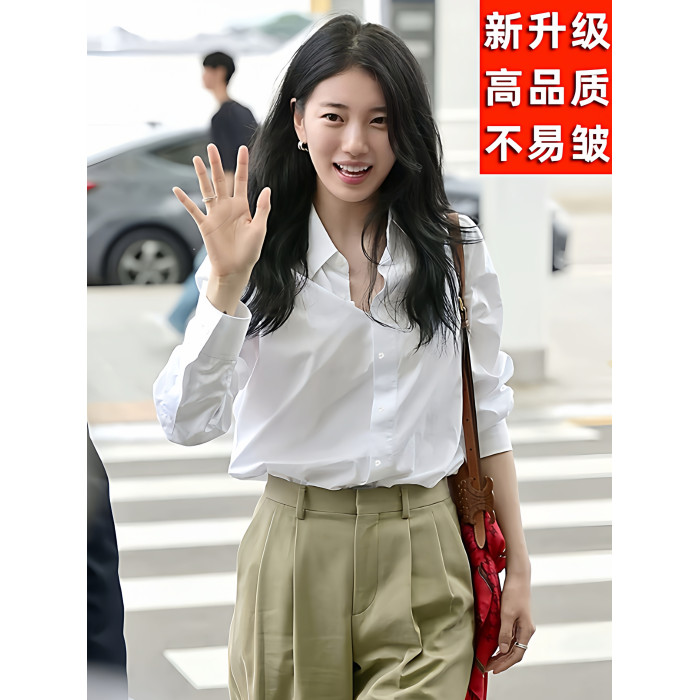 高級小資小上衣白襯衫女高級感輕奢減齡洋氣長袖不易皺襯衣內搭秋