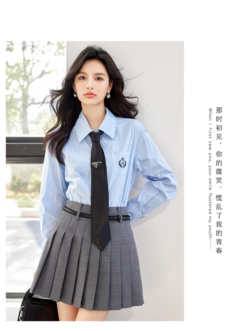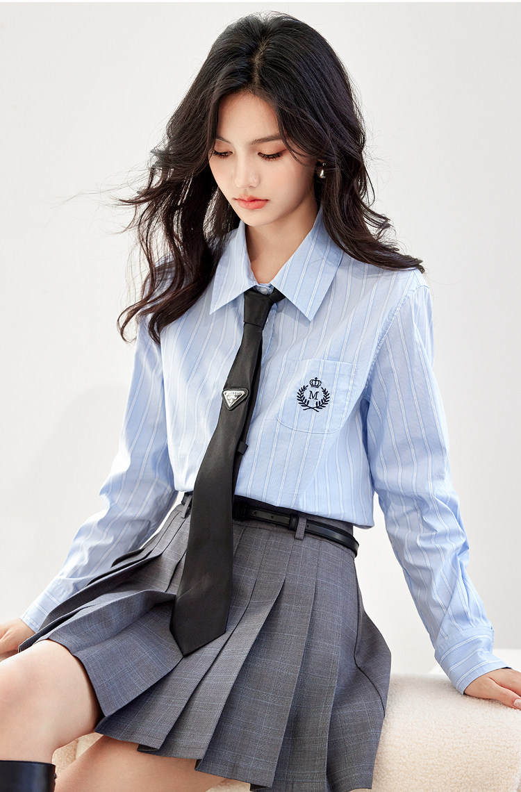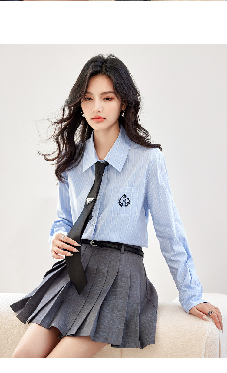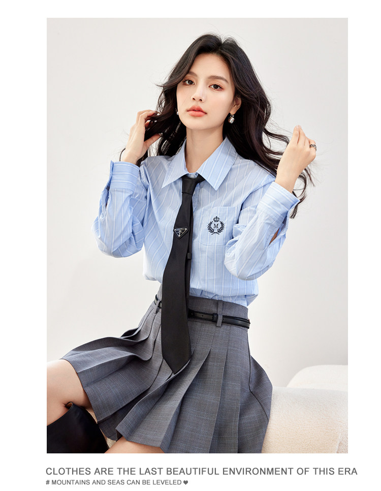 拉夏貝爾氣質百搭繙領條紋襯衫女2026春秋新款韓版學院風長袖上衣
