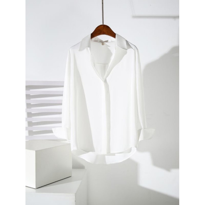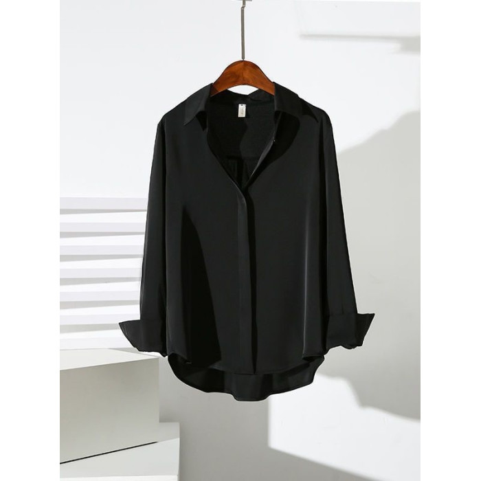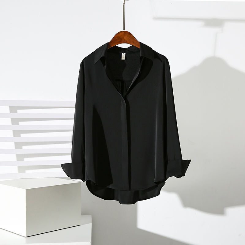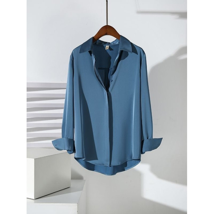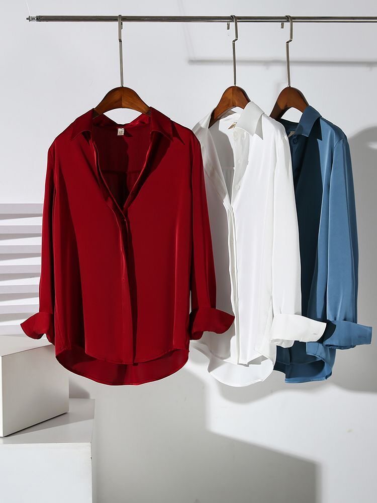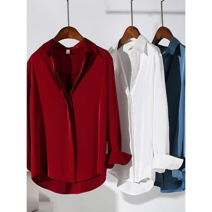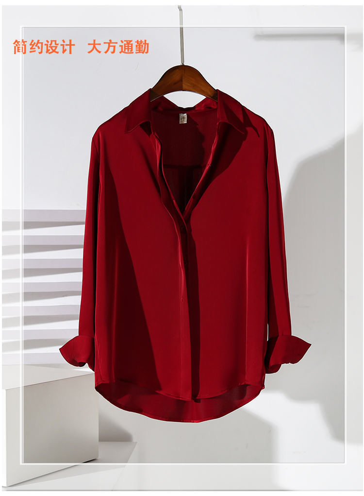 高級感紅色緞面襯衫女長袖通勤文藝氣質上衣新款抗皺免燙醋酸襯衣