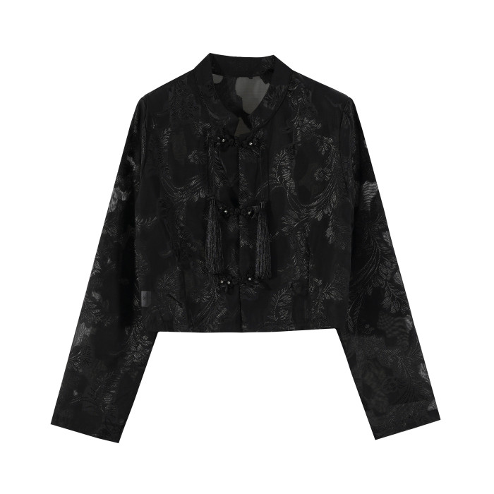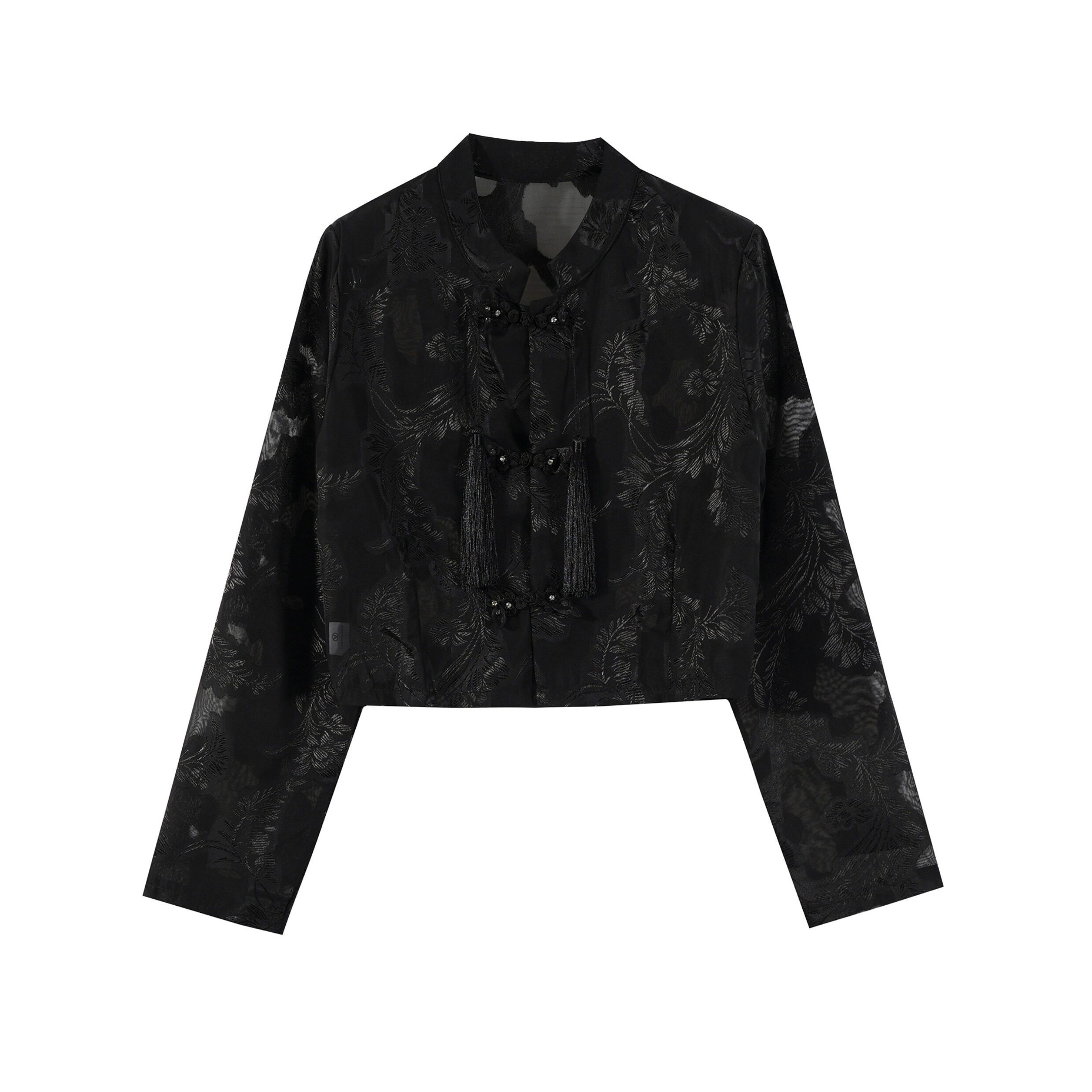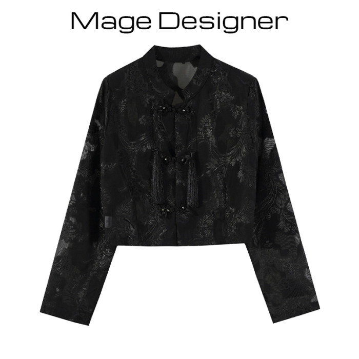 新中式國風復古盤釦短款改良西裝上衣春秋新款高級感顯瘦立領襯衫