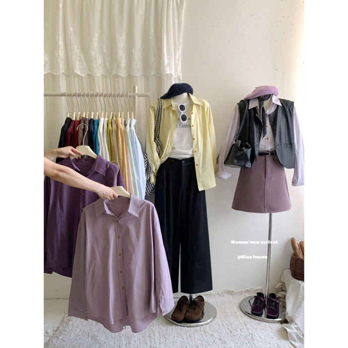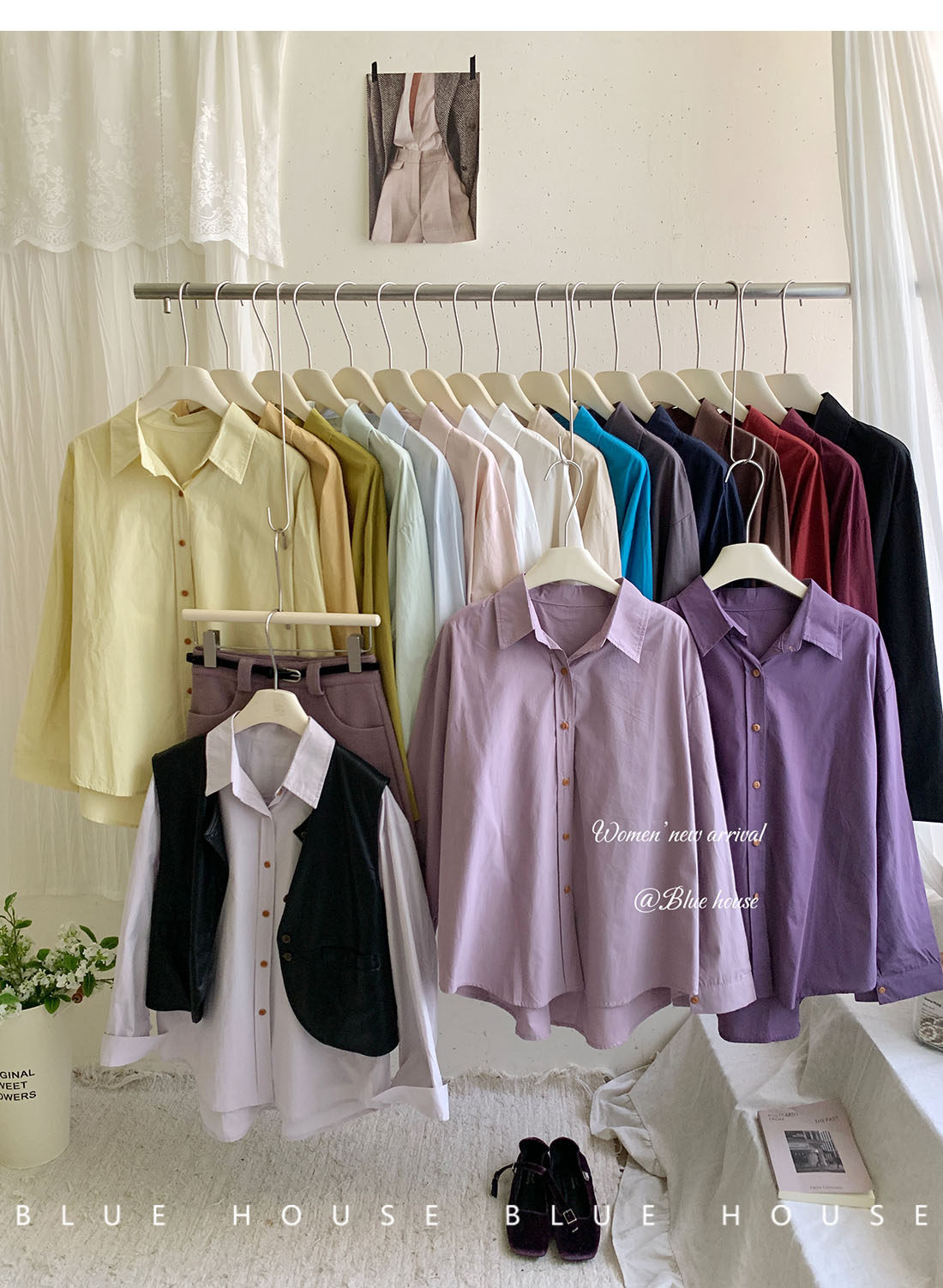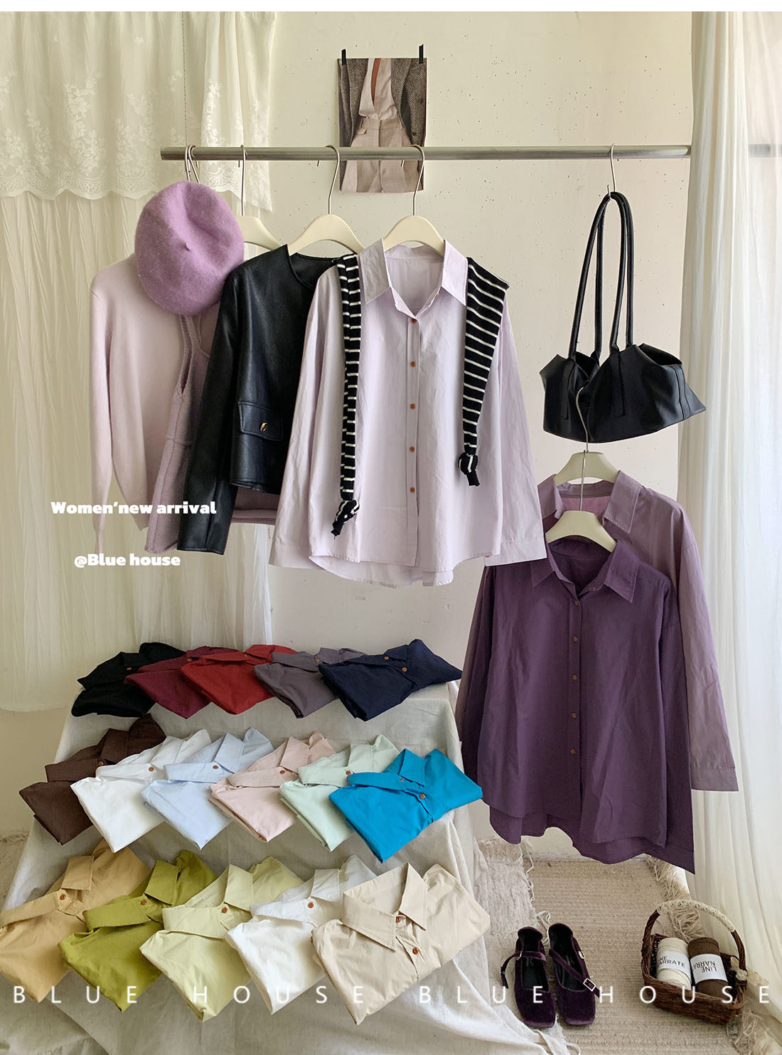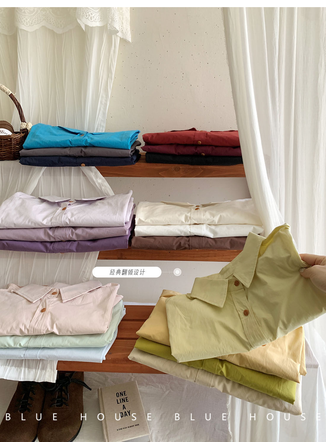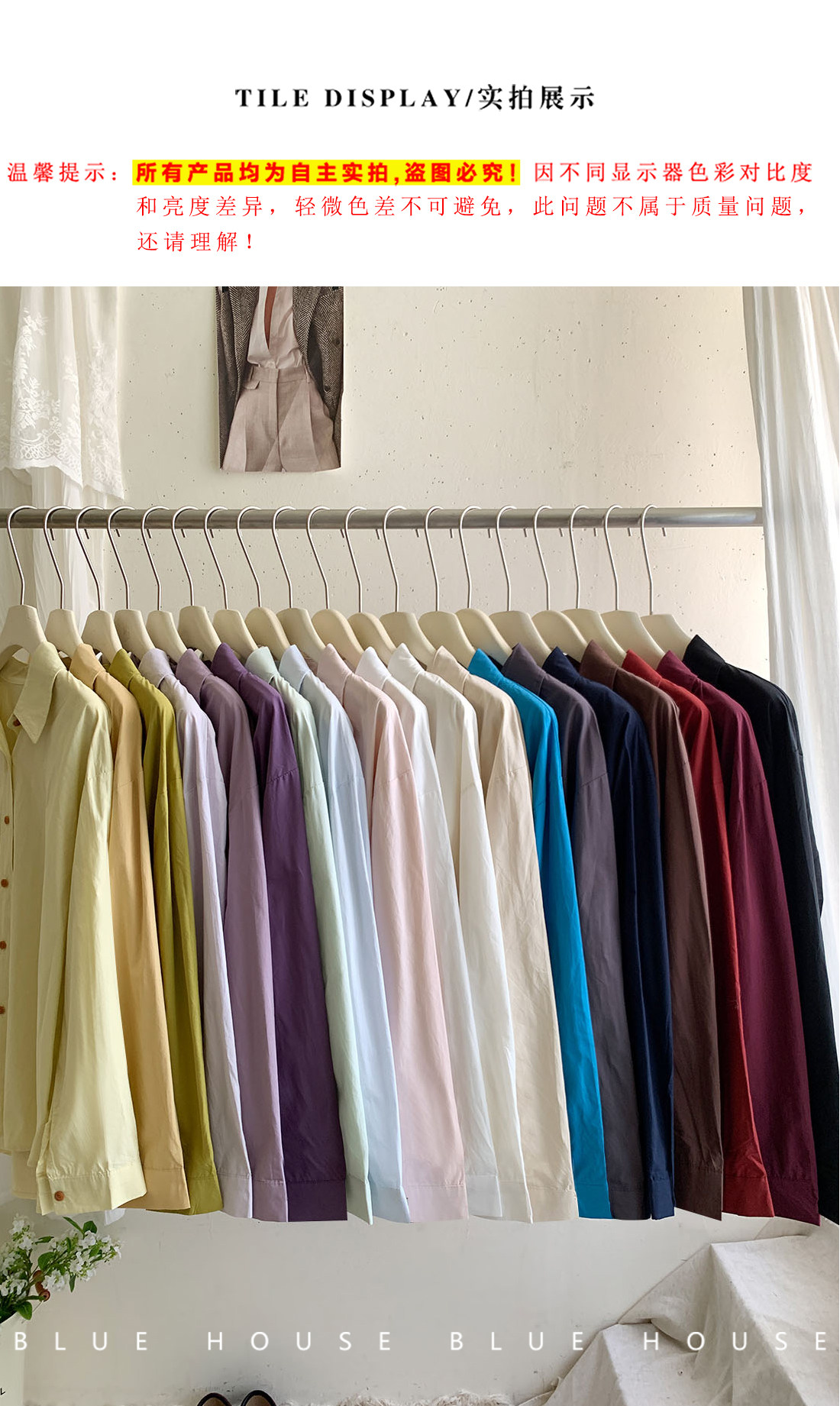 基礎系韓國王炸色系長袖方領淨版襯衫女秋內搭外曡穿休閒氣質襯衣