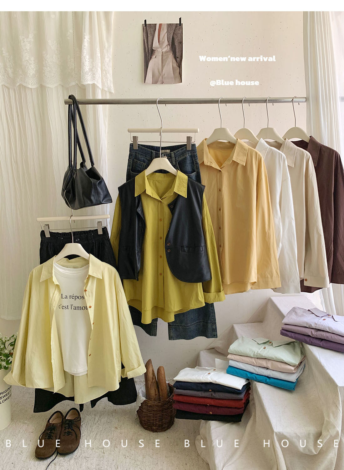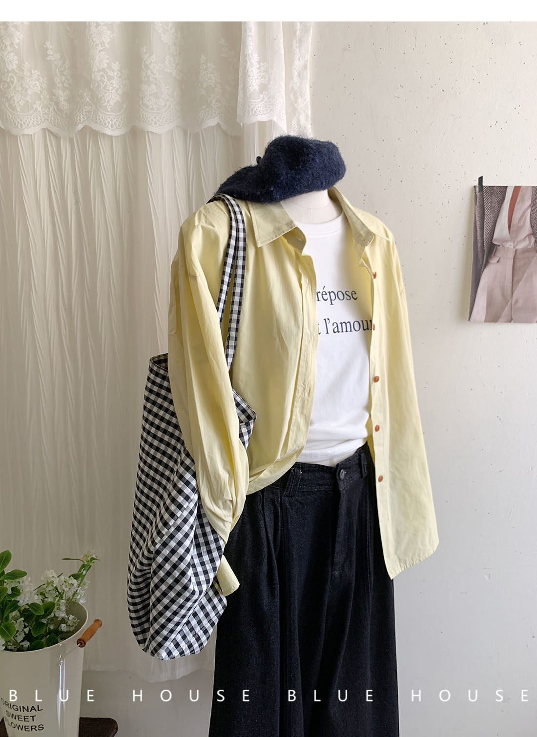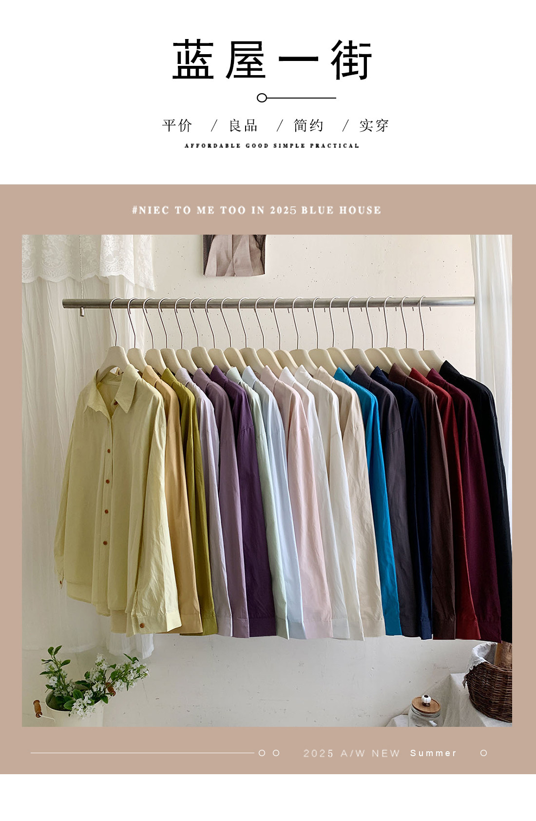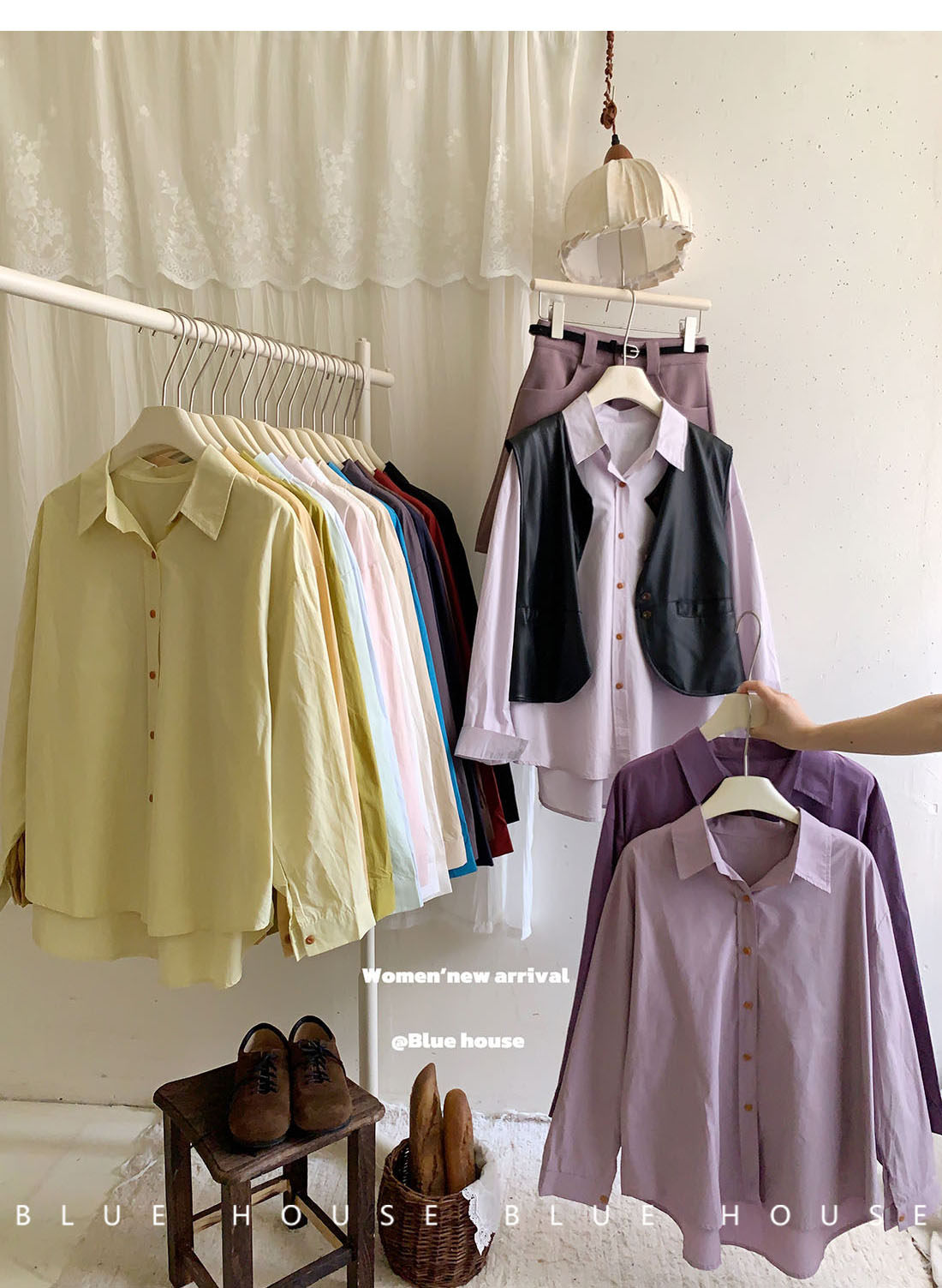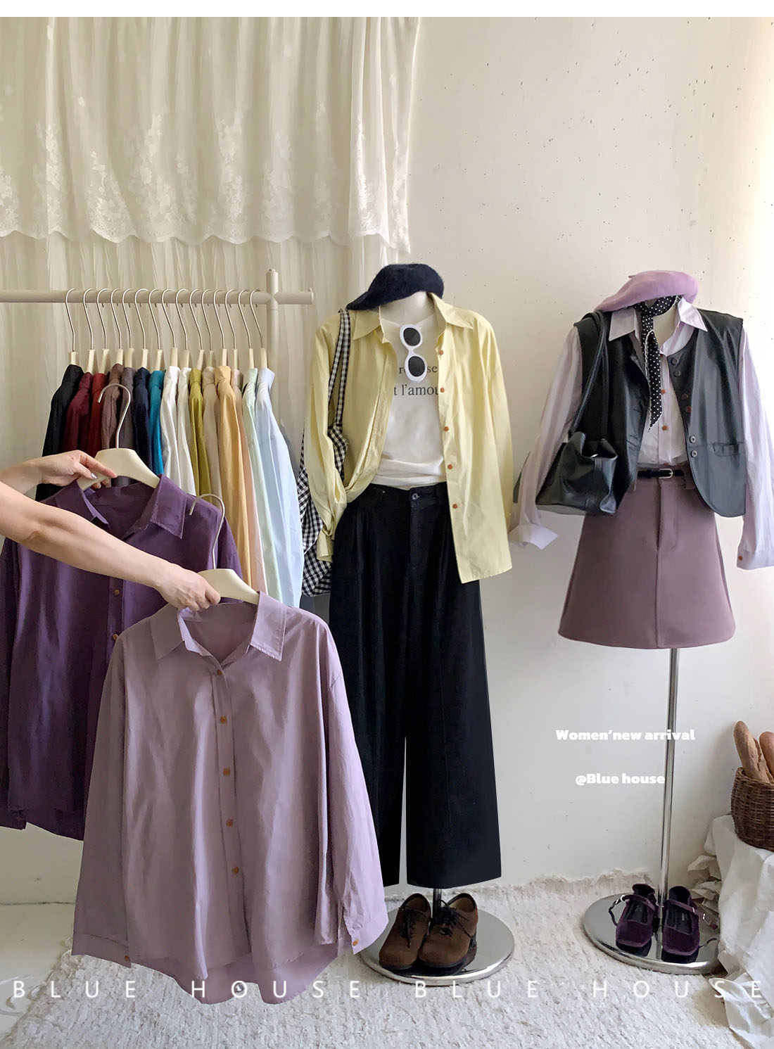 基礎系韓國王炸色系長袖方領淨版襯衫女秋內搭外曡穿休閒氣質襯衣