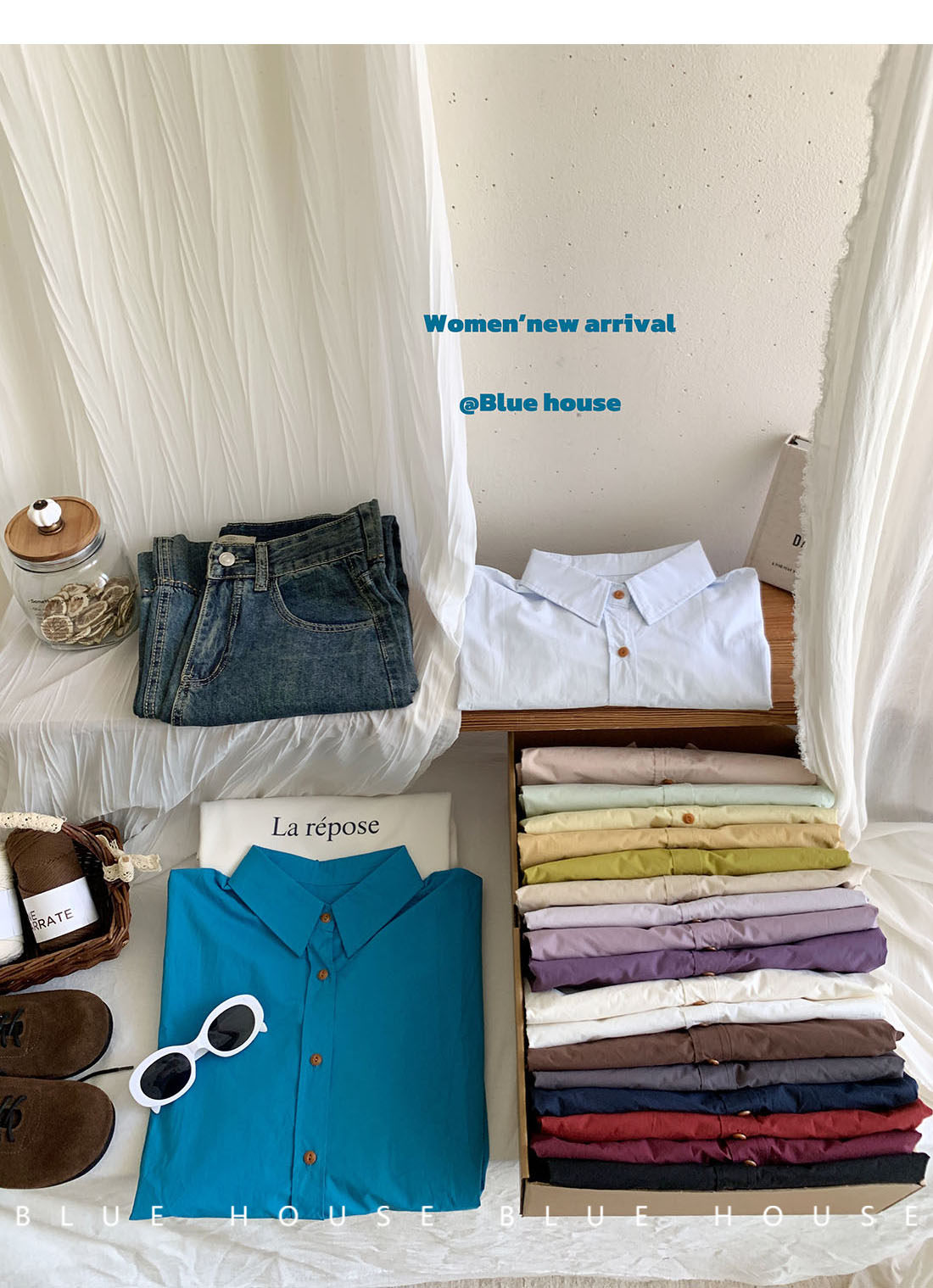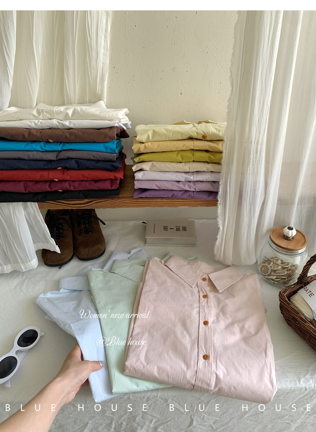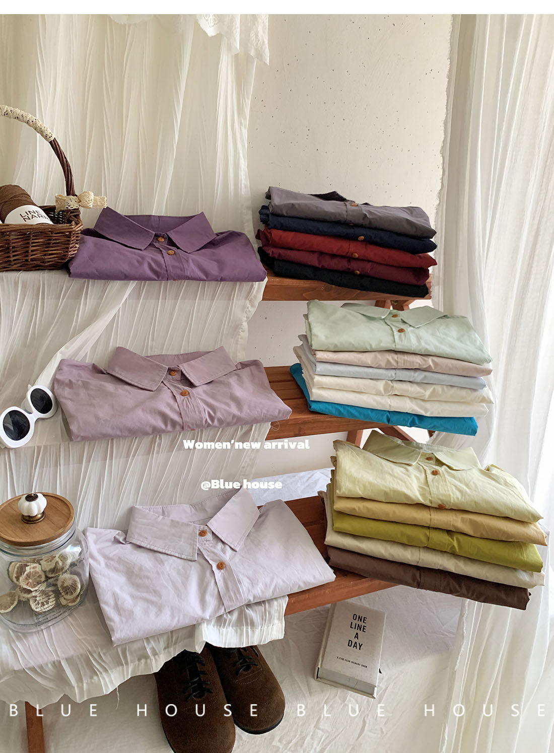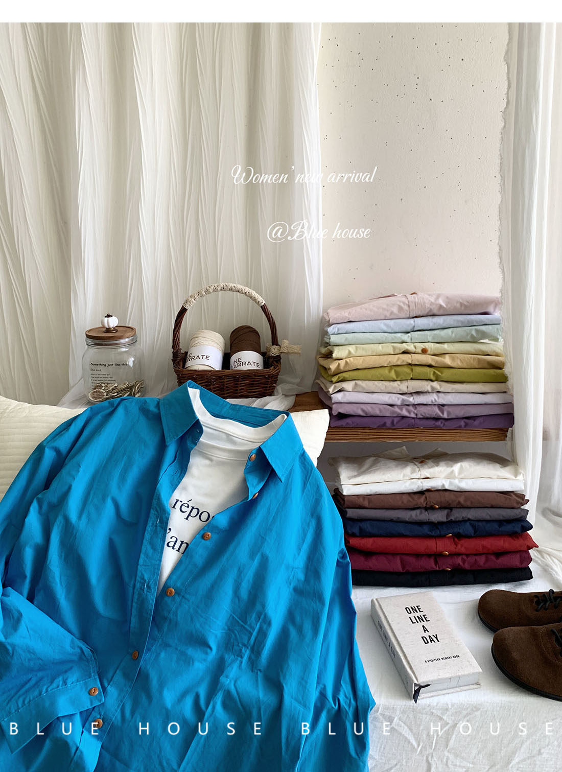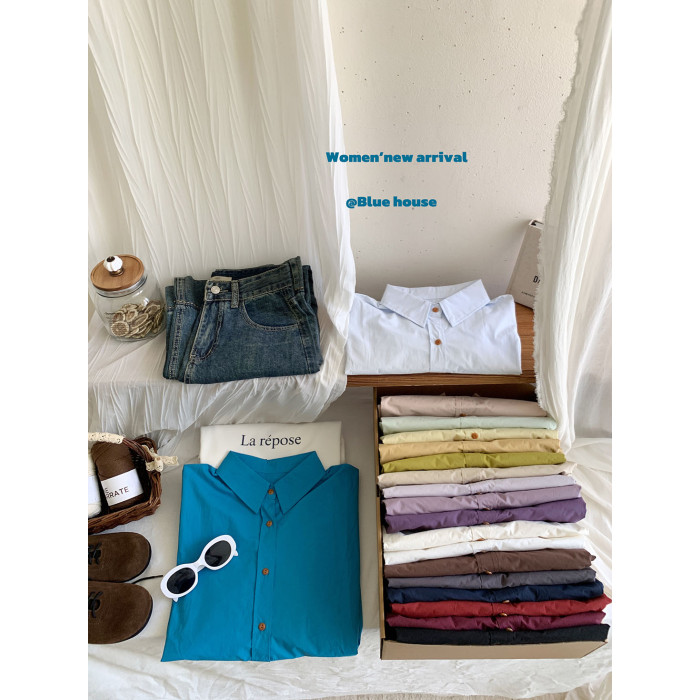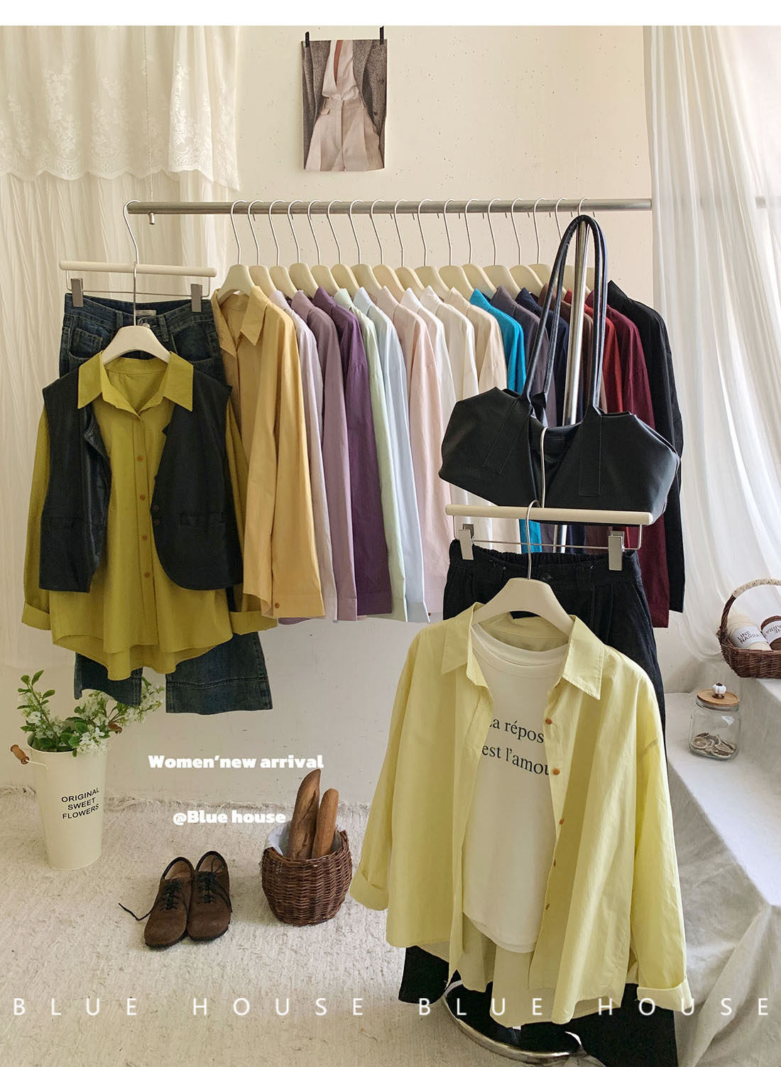 基礎系韓國王炸色系長袖方領淨版襯衫女秋內搭外曡穿休閒氣質襯衣