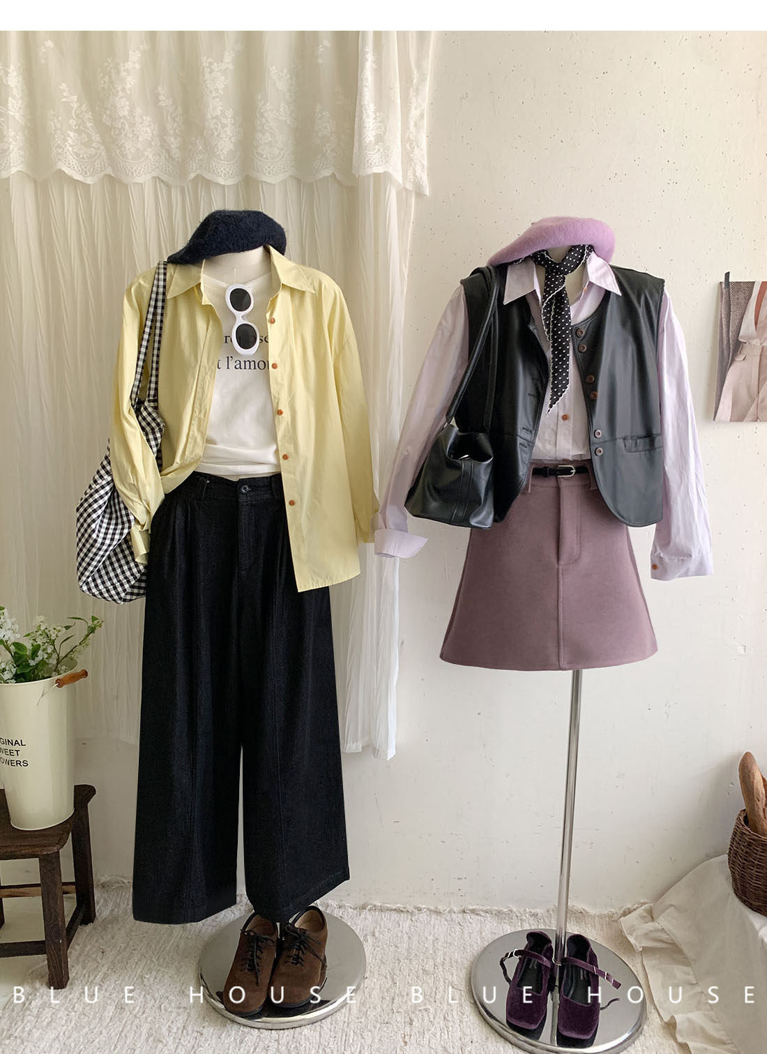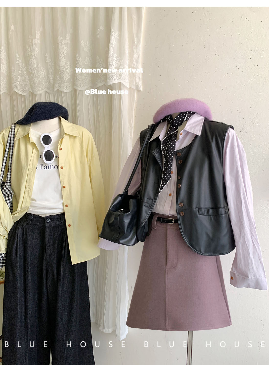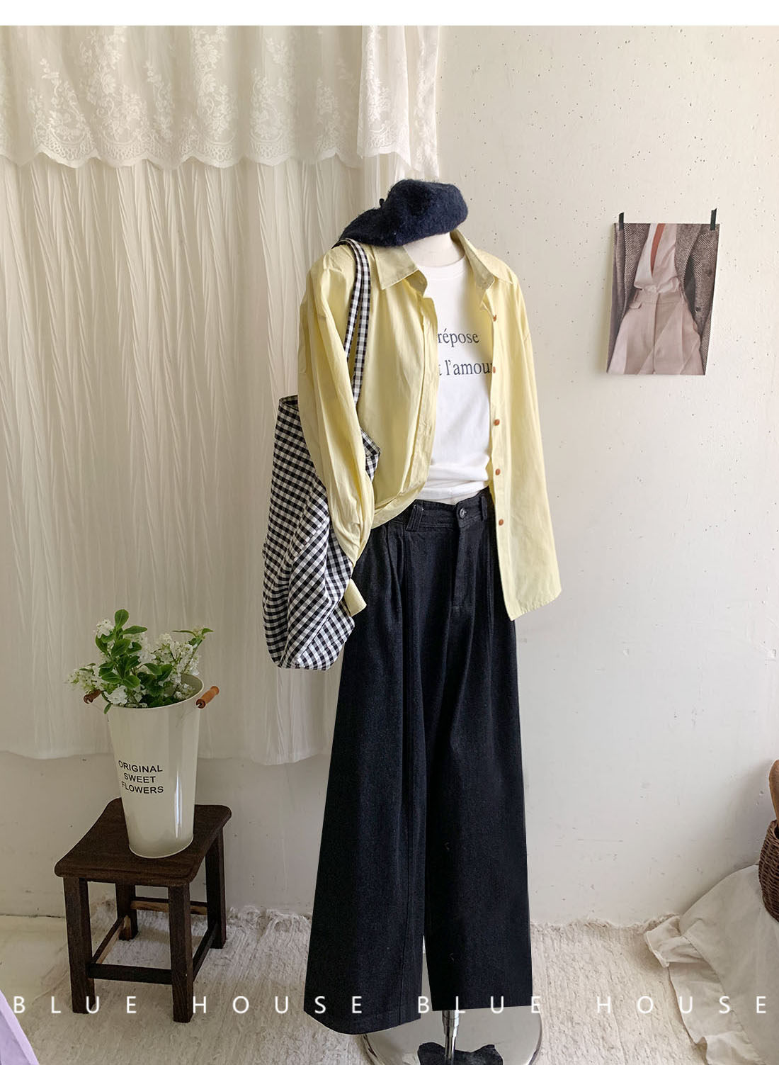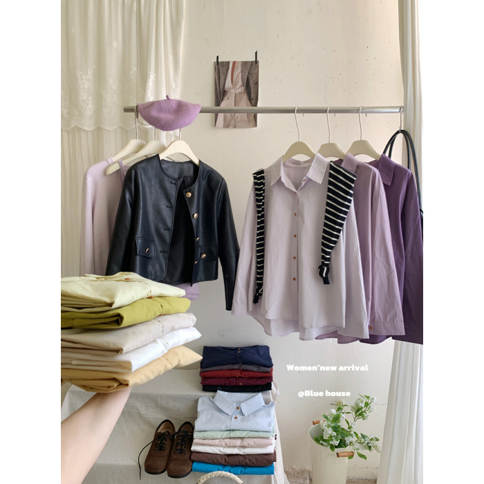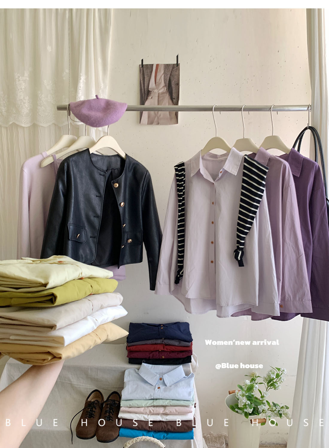 基礎系韓國王炸色系長袖方領淨版襯衫女秋內搭外曡穿休閒氣質襯衣