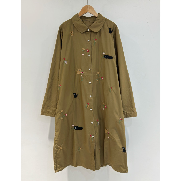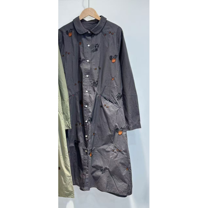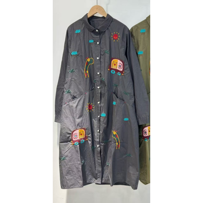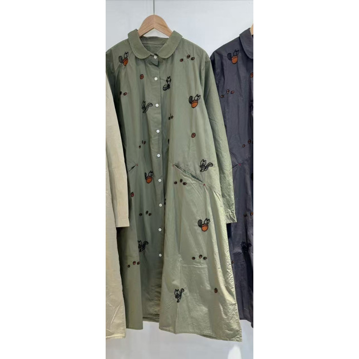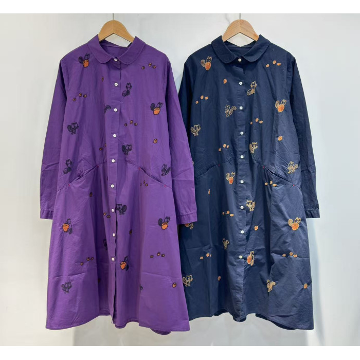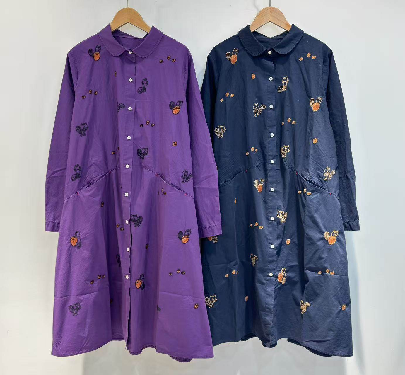 2025秋季新款日系復古刺綉寬鬆休閒薄料襯衫裙女減齡純棉連衣裙潮