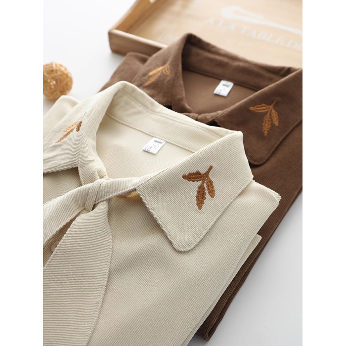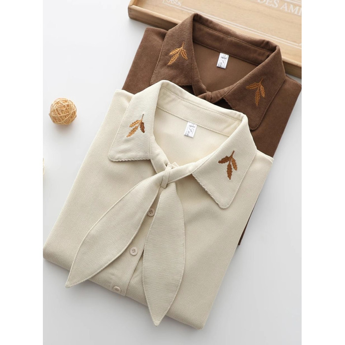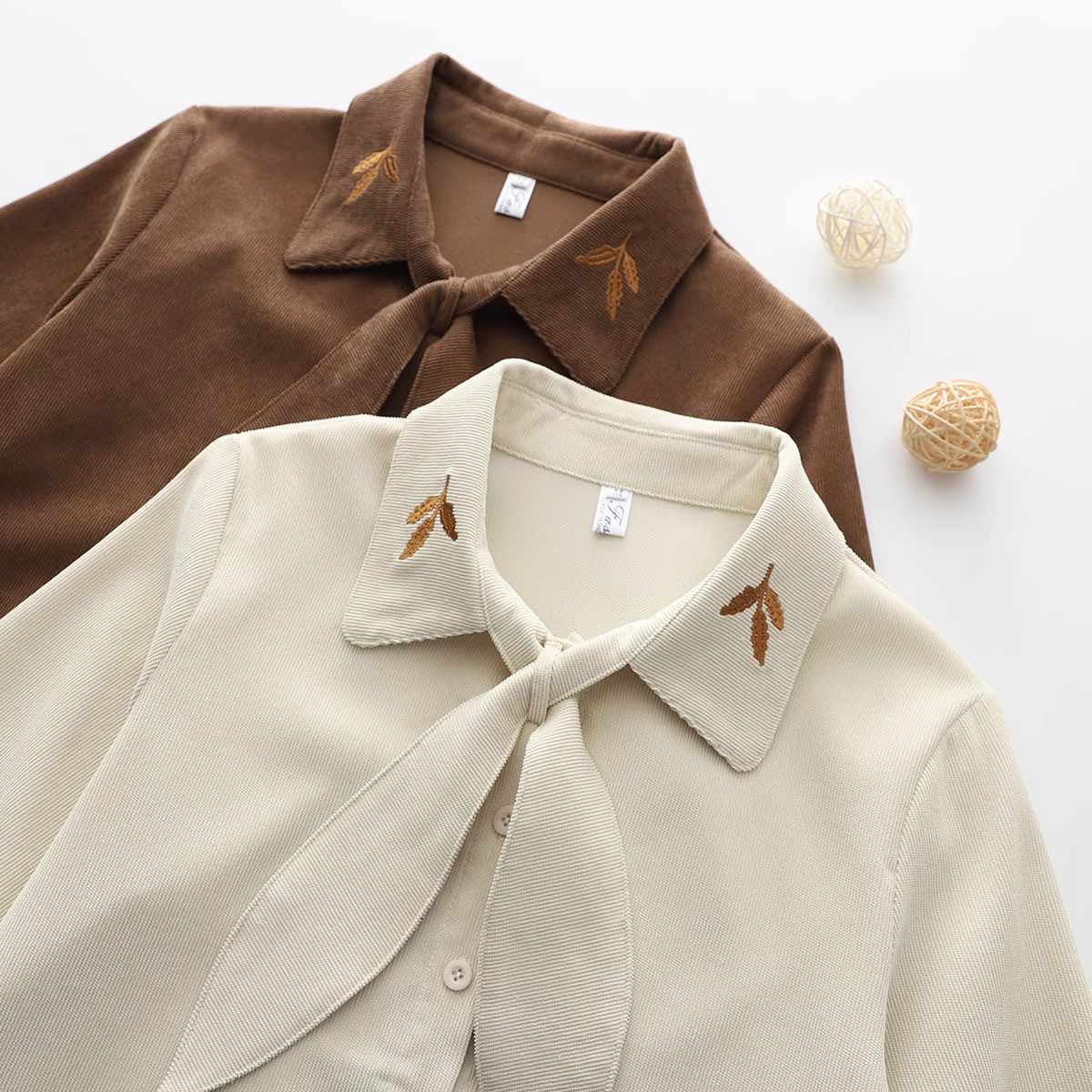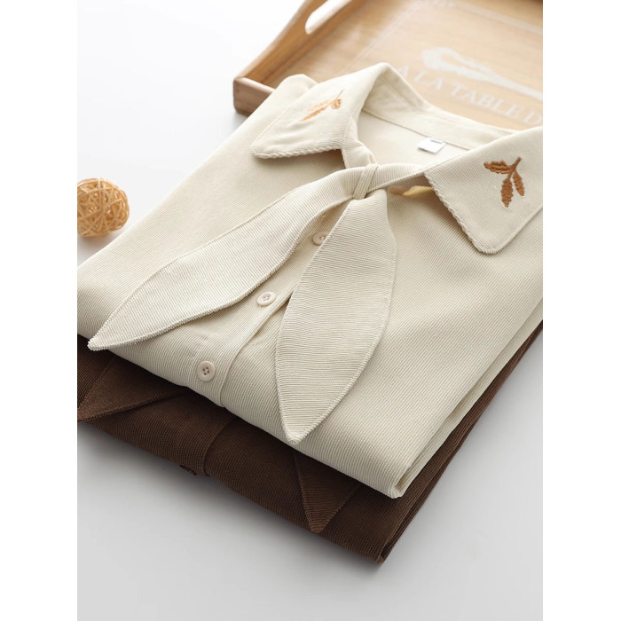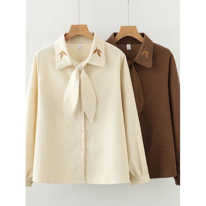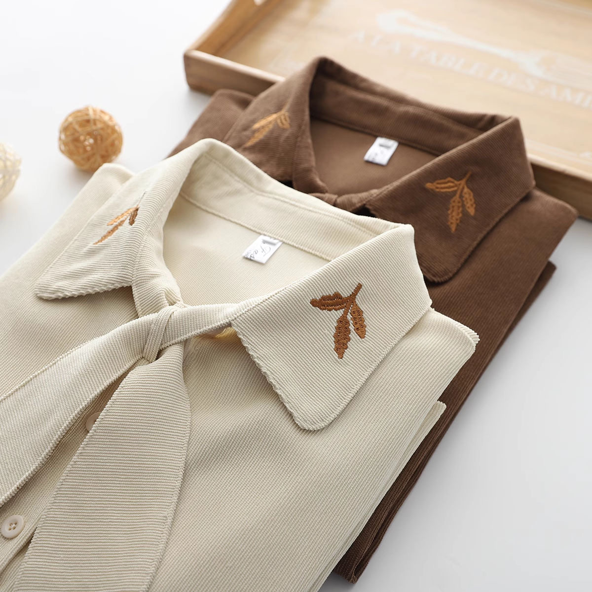 日系森女可愛兔耳朵刺綉領口單排釦泡泡袖磨毛加厚襯衫氣質襯衣秋