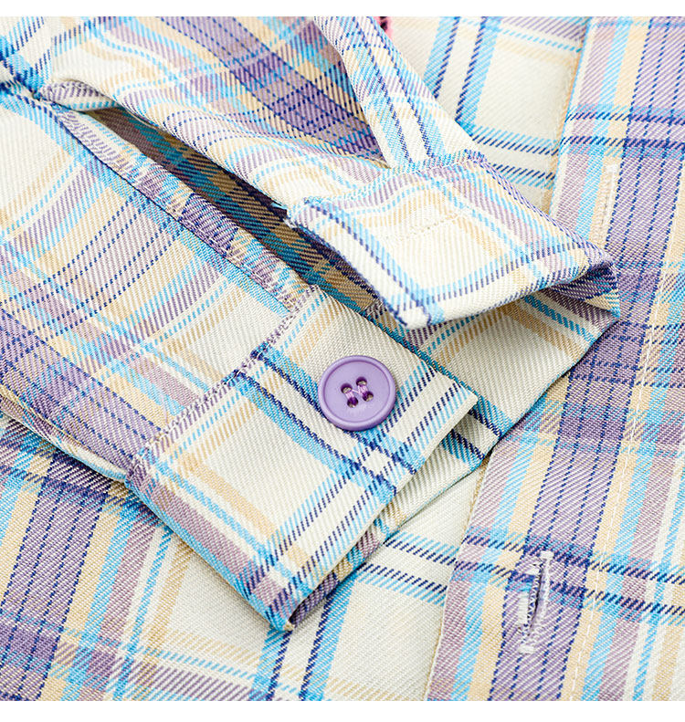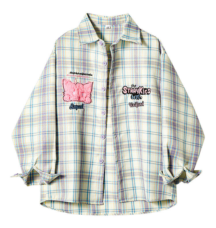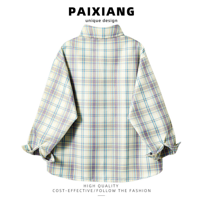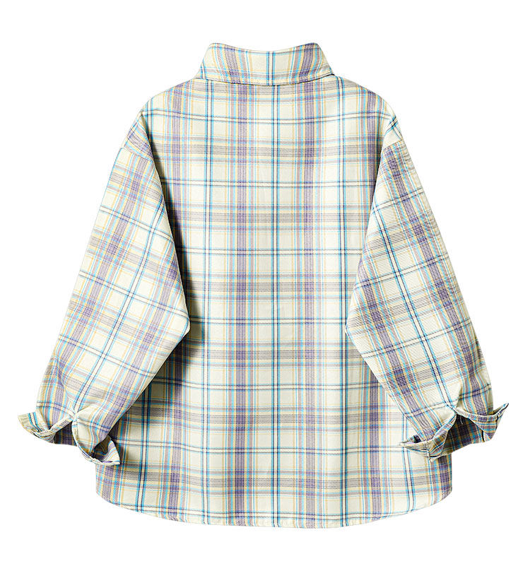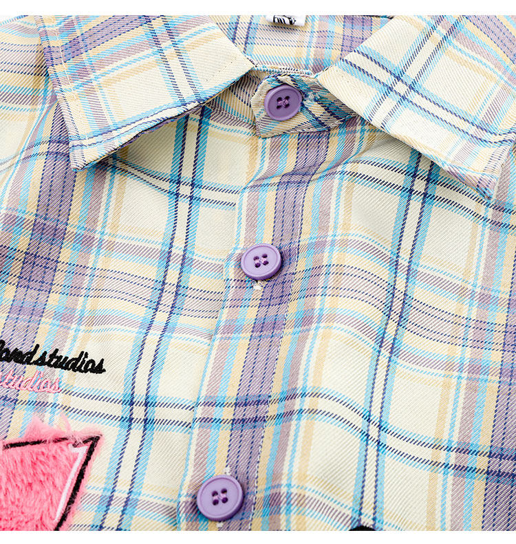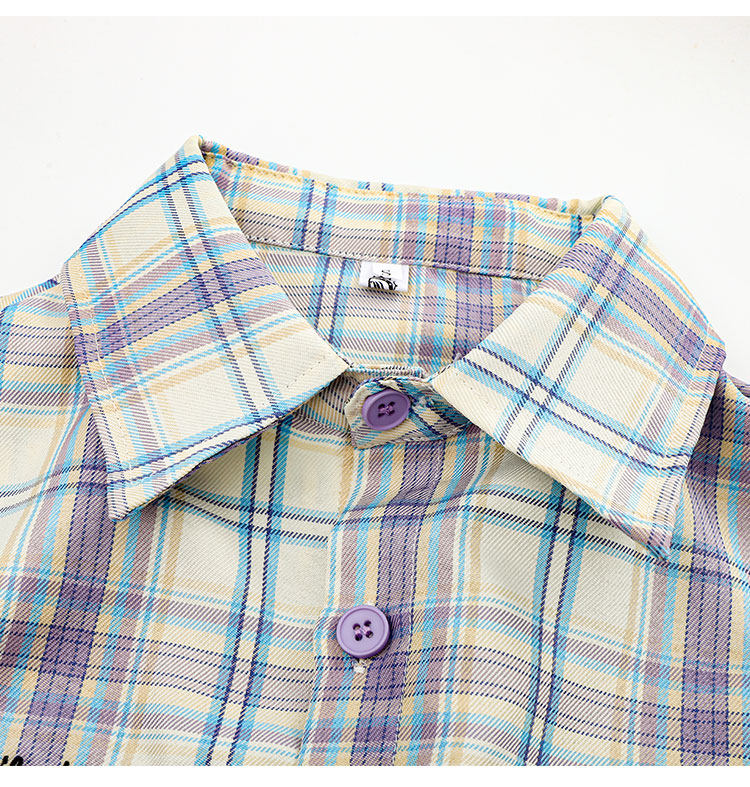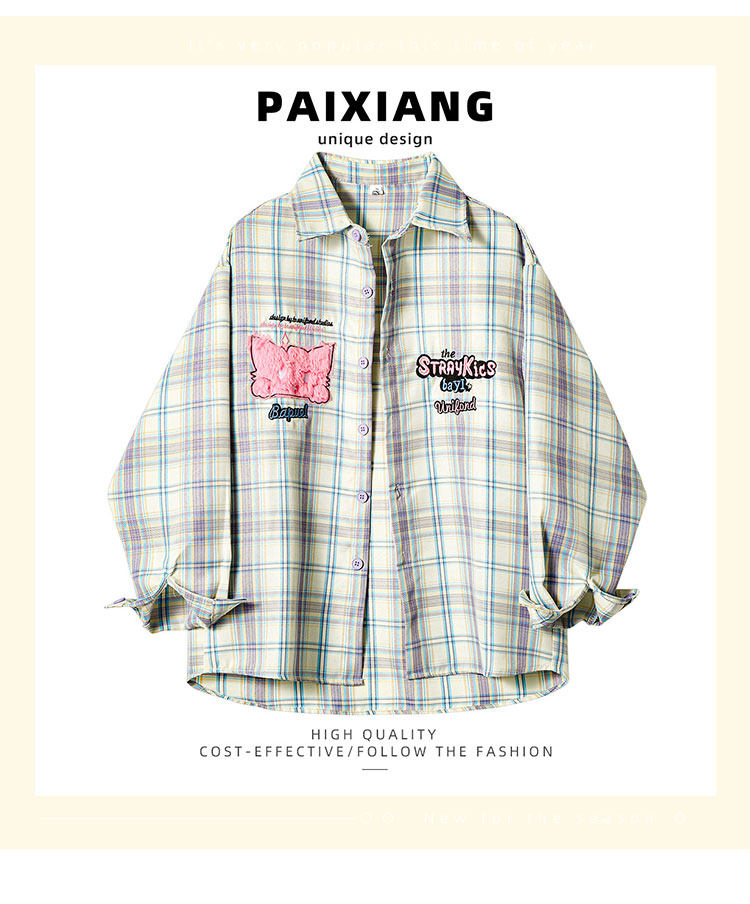 PAIXIANG/格子刺綉長袖襯衫女秋季新款打底衫設計感別致寬鬆襯衣
