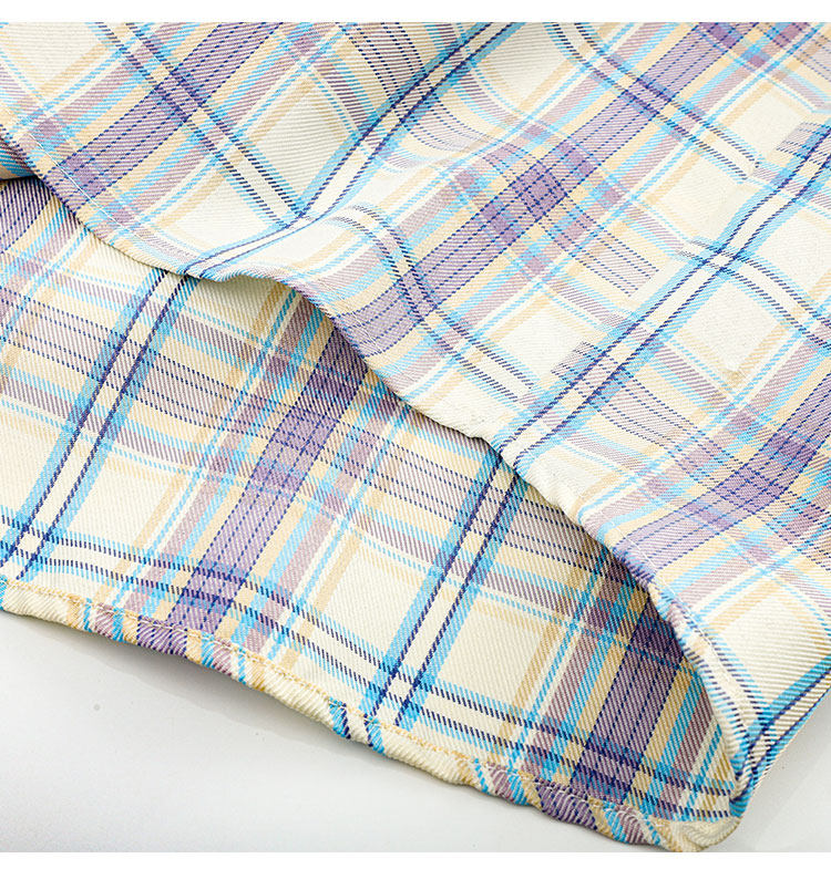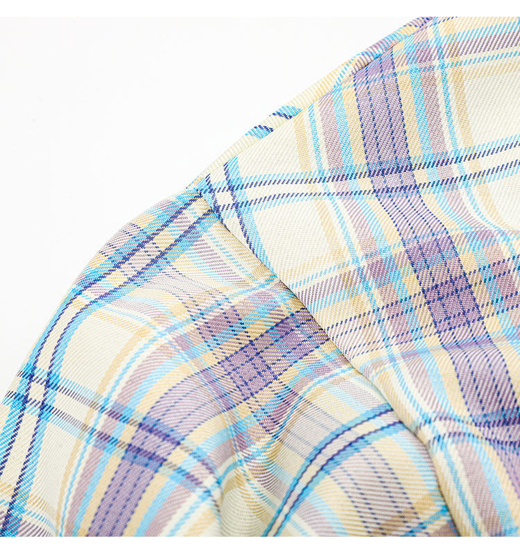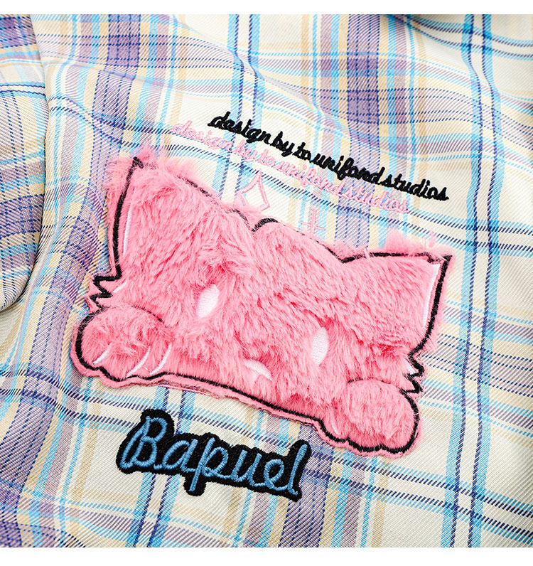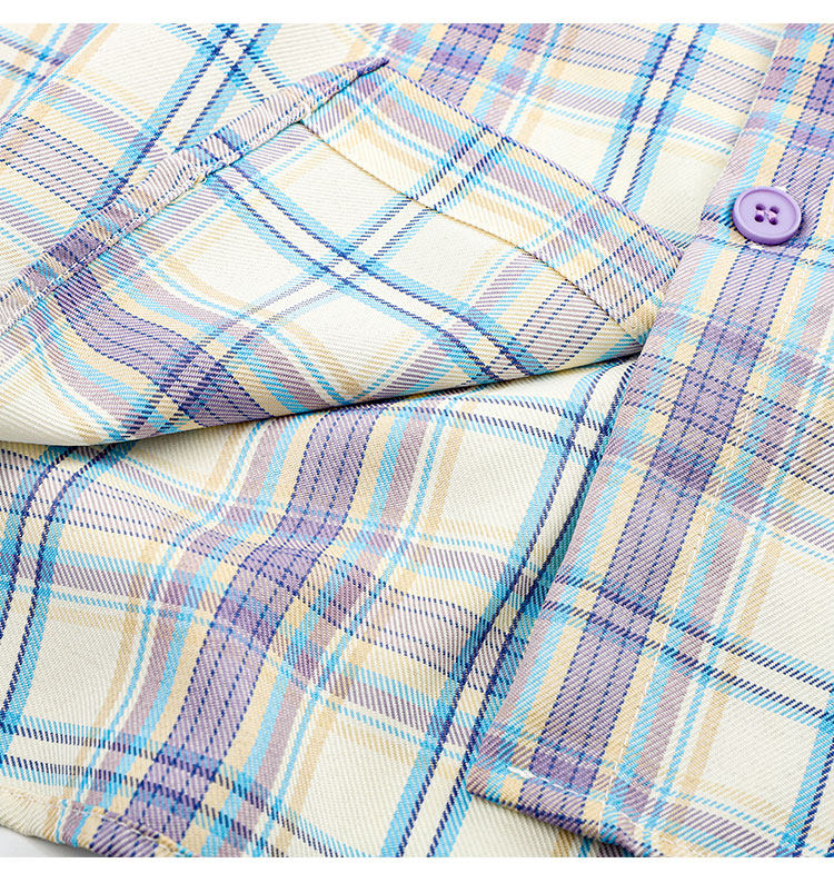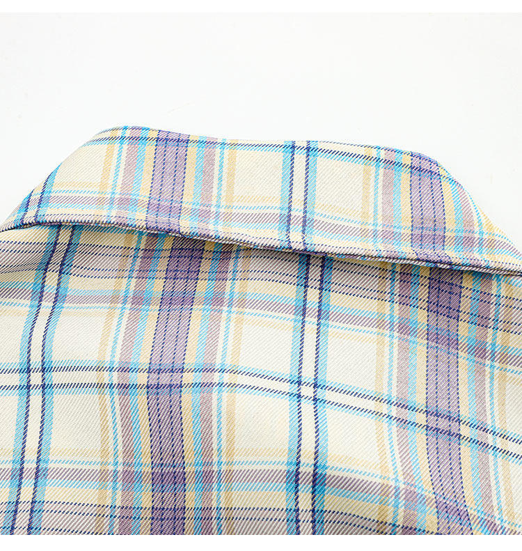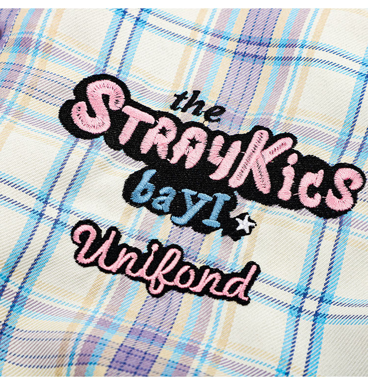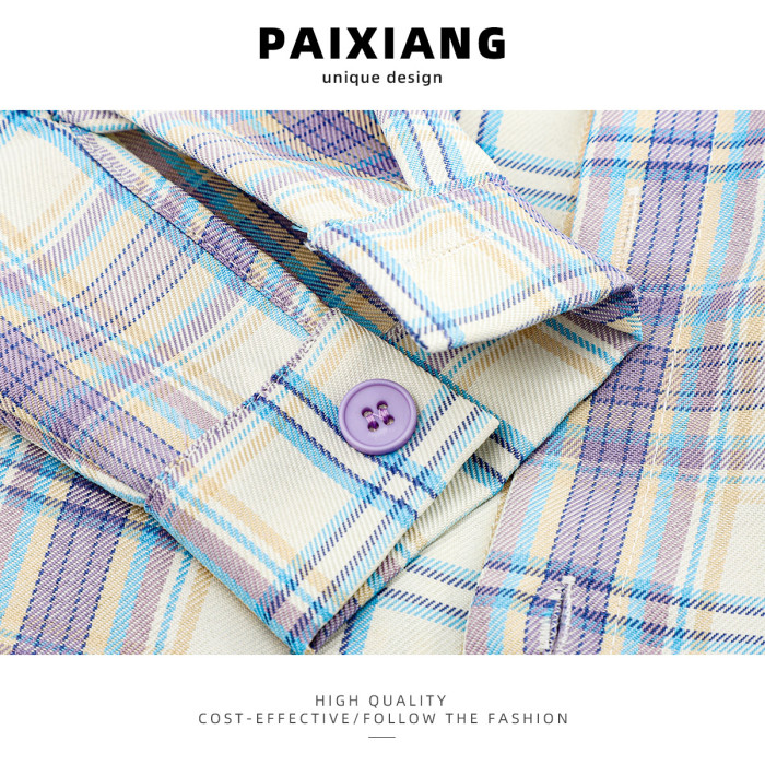 PAIXIANG/格子刺綉長袖襯衫女秋季新款打底衫設計感別致寬鬆襯衣