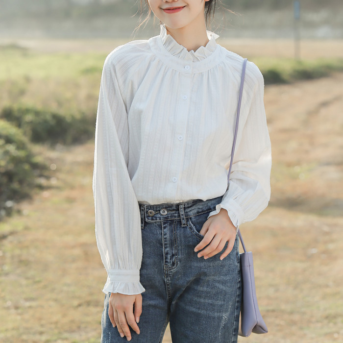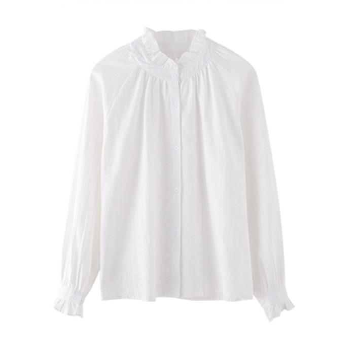 木耳邊襯衫女設計感小衆2026春秋新款白色長袖襯衣內搭打底上衣女