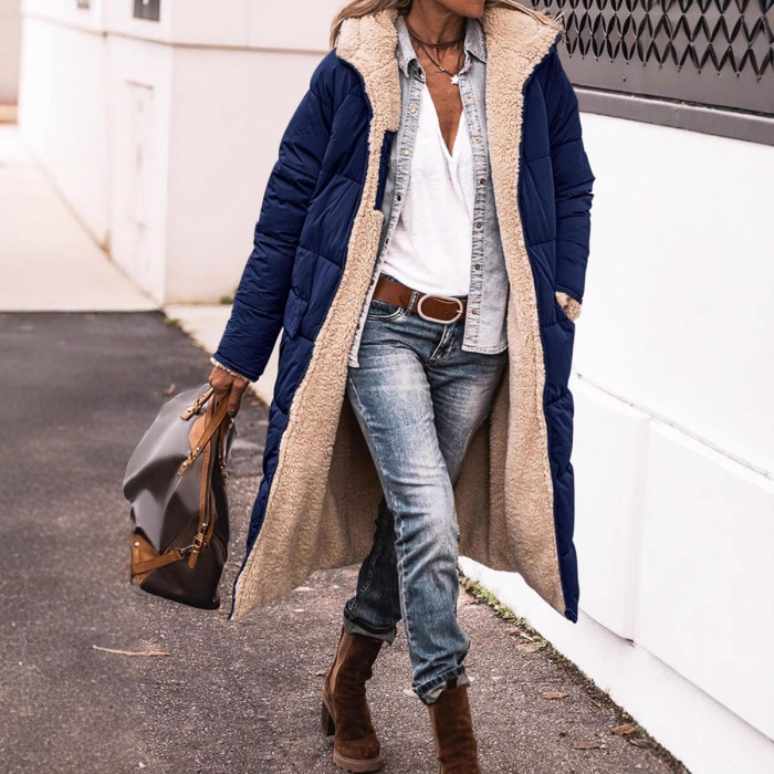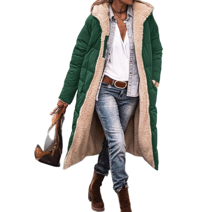 2023歐美純色連帽棉服長袖雙面穿修身氣質開衫外套上衣