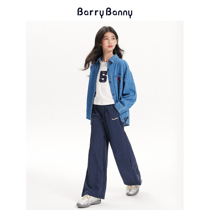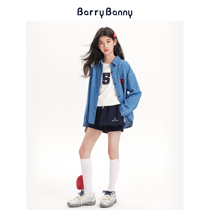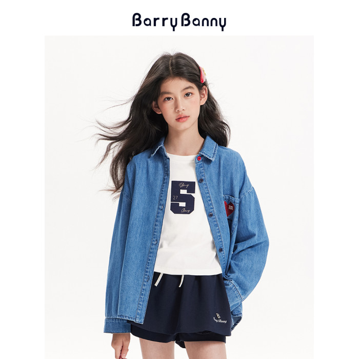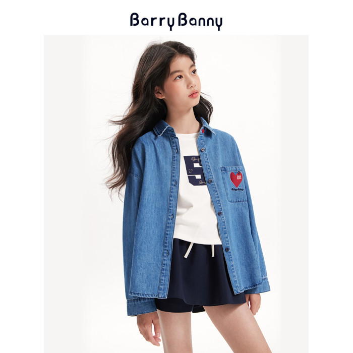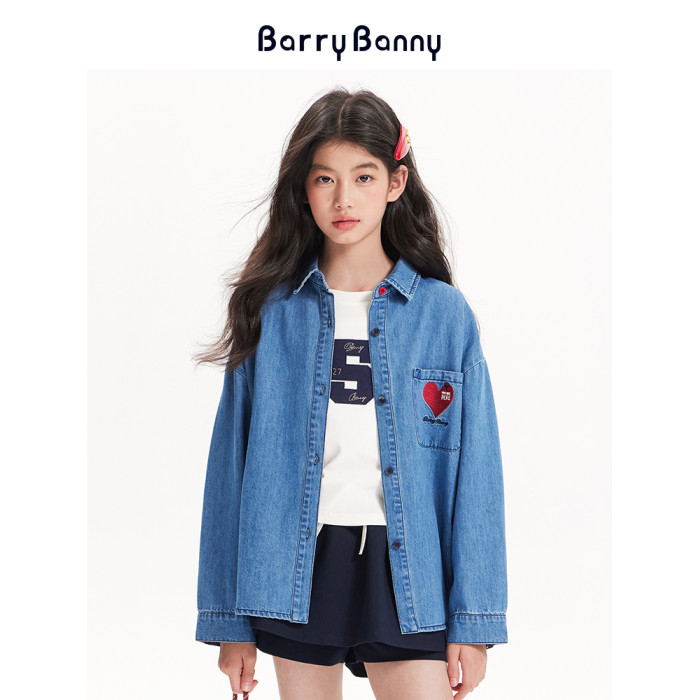 BarryBanny女童牛仔襯衫2025秋季新款刺綉兒童美式復古長袖外套