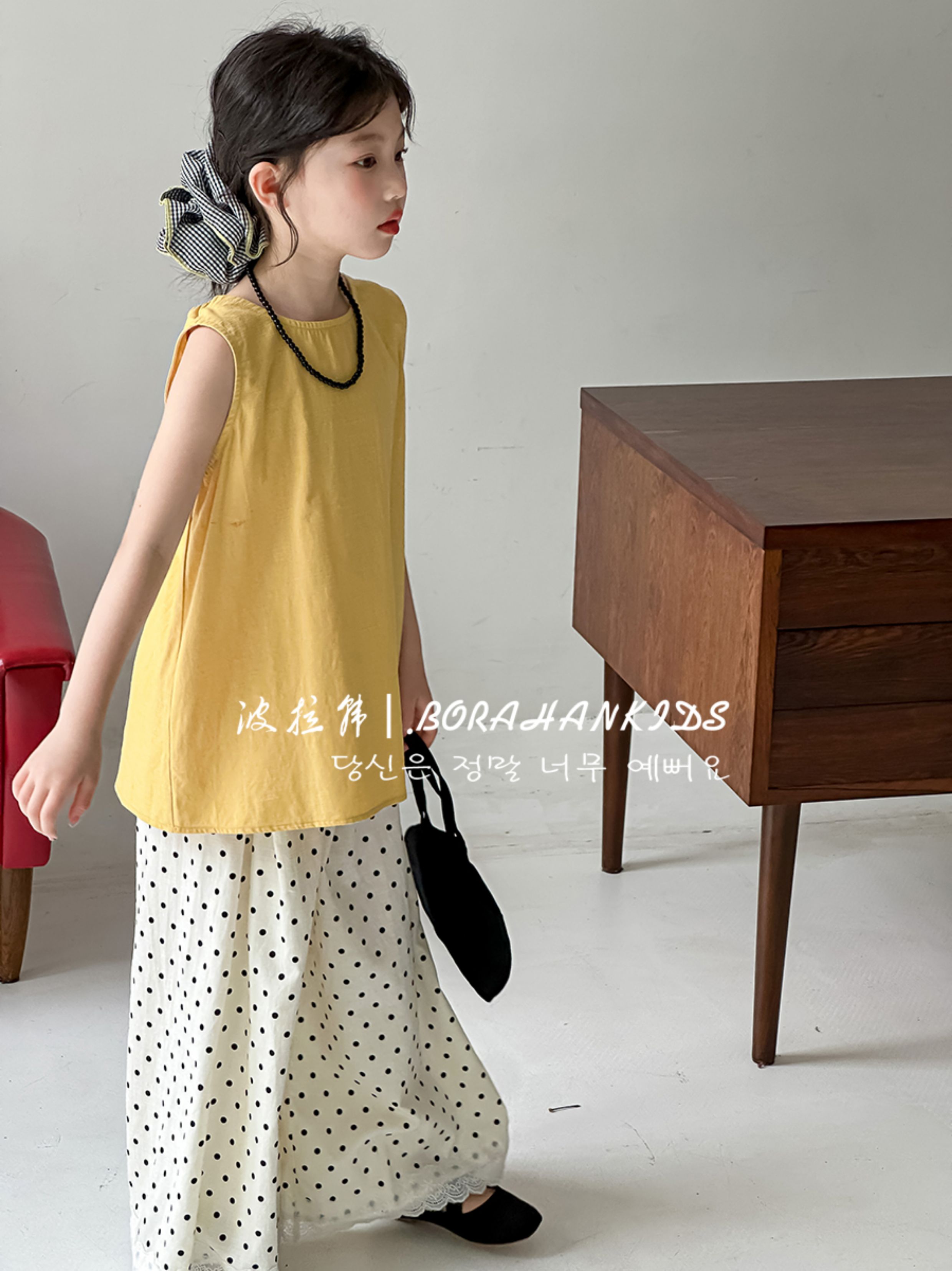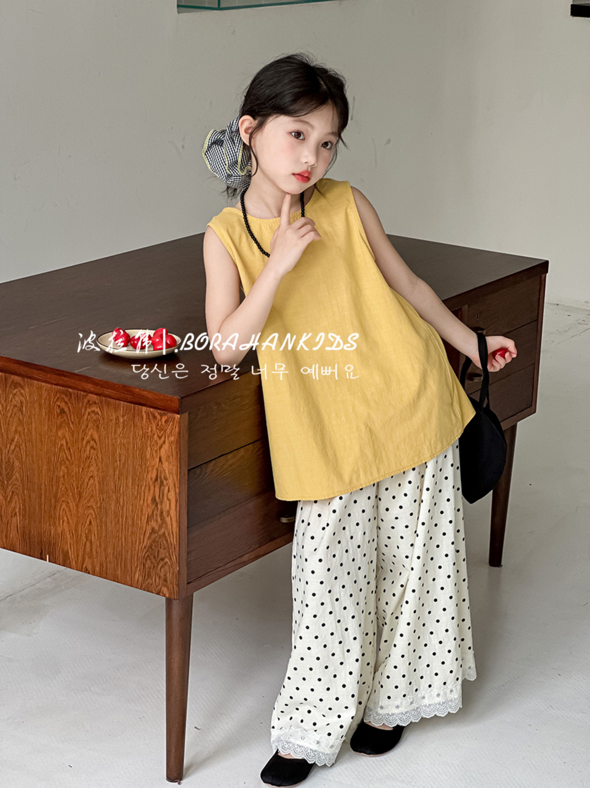 波拉韓女童無袖襯衫背心洋氣夏裝時髦上衣2025新款甜美女孩娃娃衫