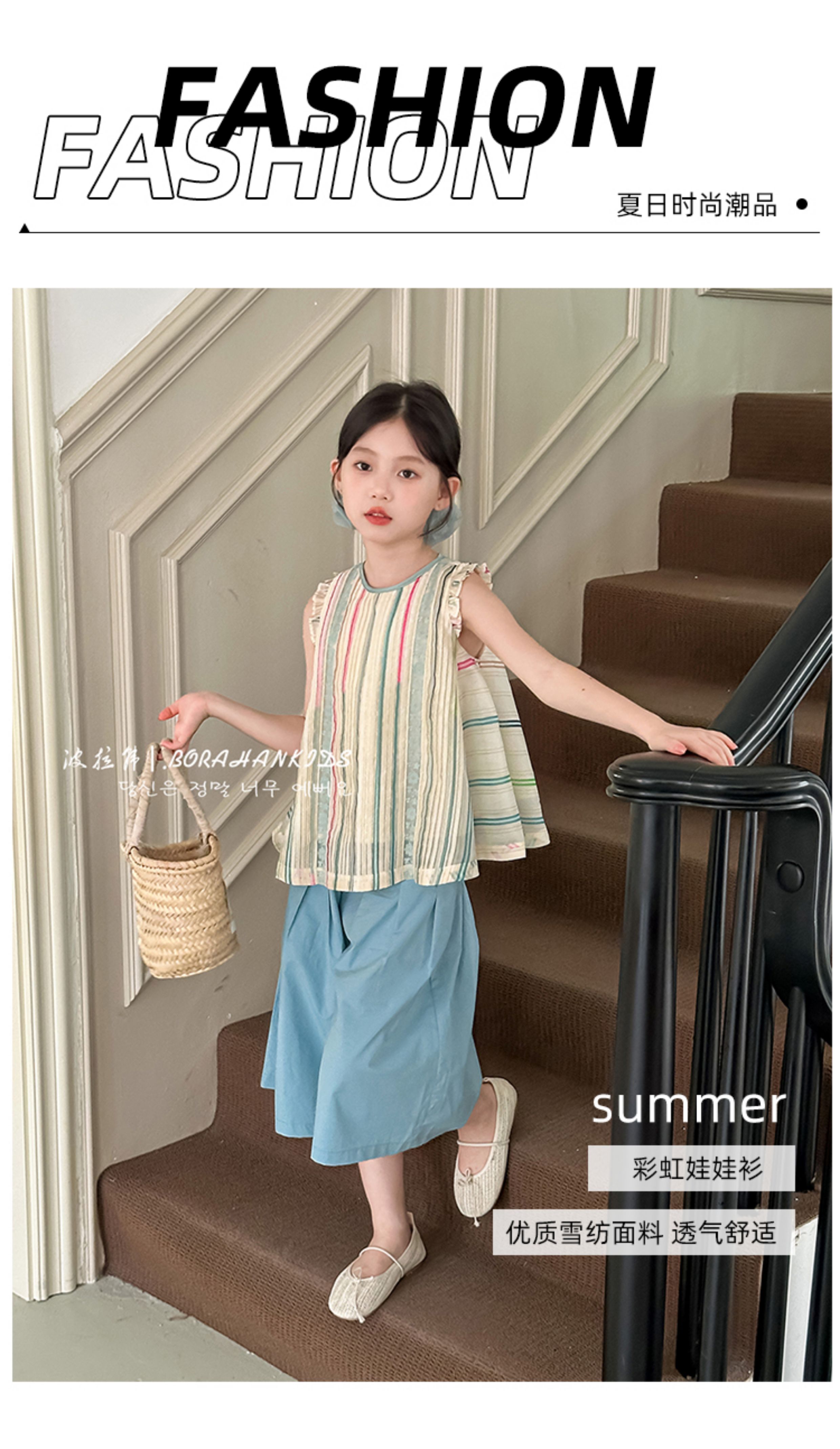 波拉韓女童襯衫2025新款兒童夏季小女孩雪紡襯衣中大童甜美娃娃衫