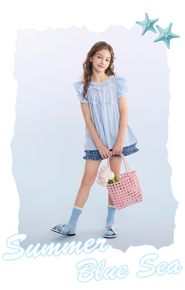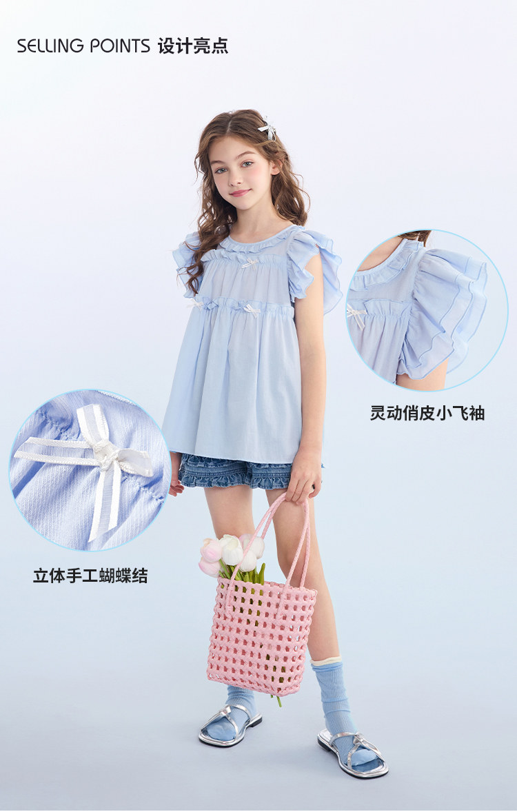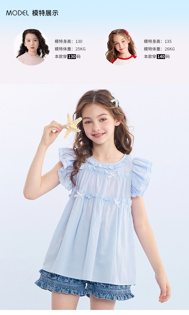 愛法貝春夏裝新款女童小飛袖清新襯衫中大兒童裝洋氣娃娃衫韓版