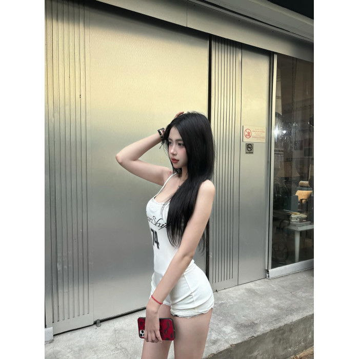 歐美辣妹印花蕾絲拼接吊帶連體衣女夏季性感修身無袖露後背包臀短褲