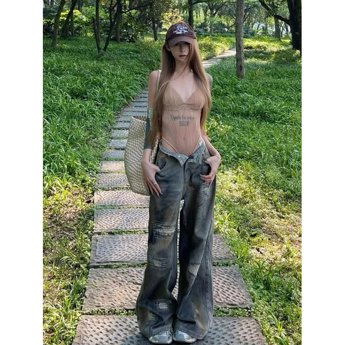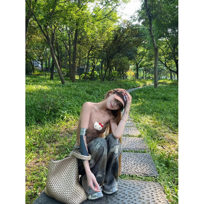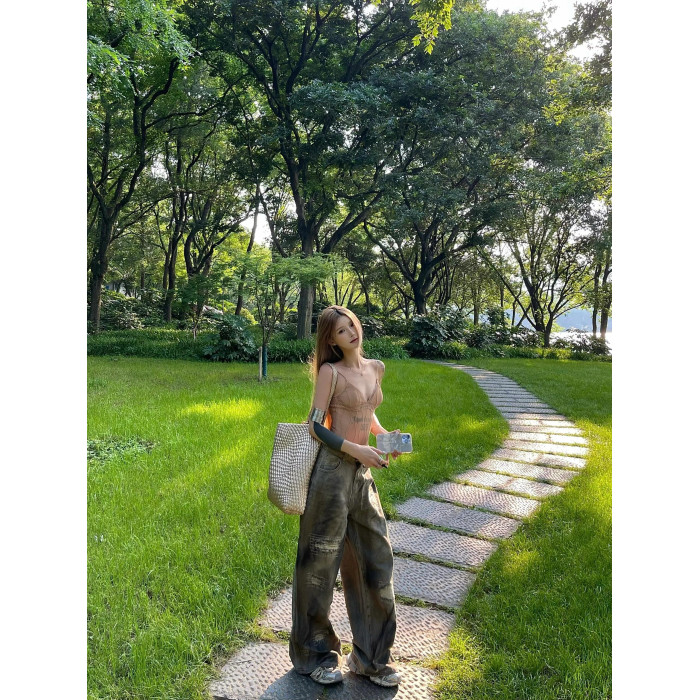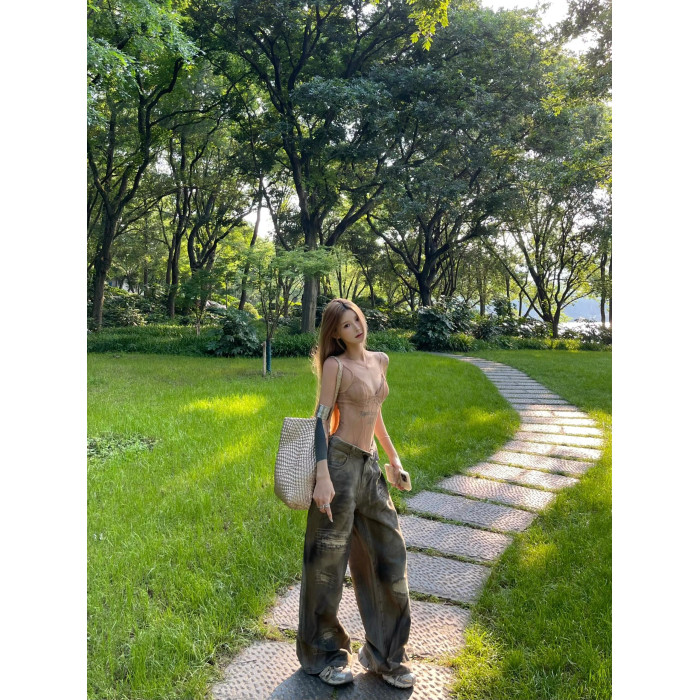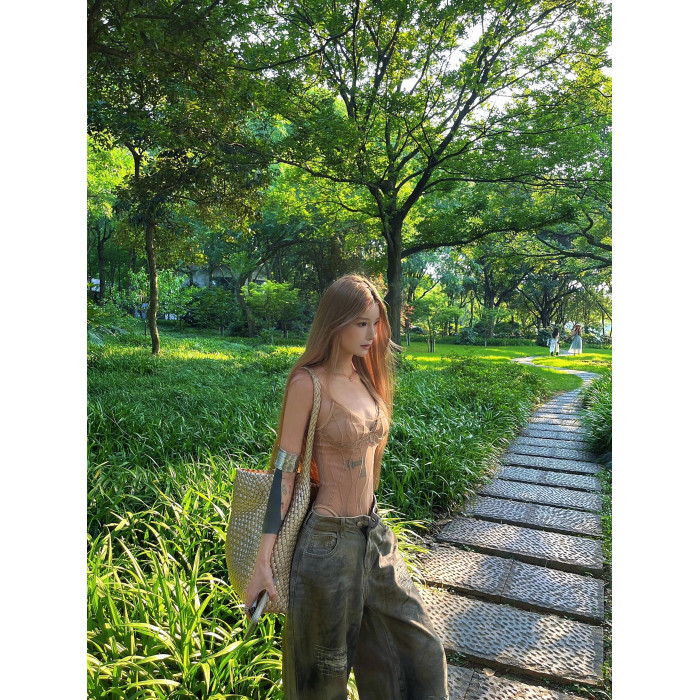 GARIS 歐美辣妹風蕾絲吊帶背心性感純欲鏤空連體衣修身上衣女夏季