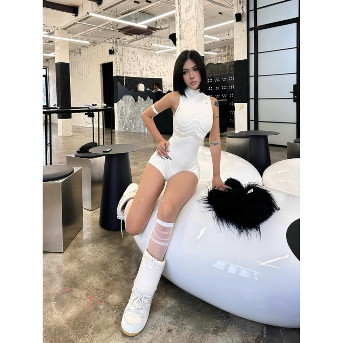 歐美純欲辣妹風半高領無袖連體衣女性感緊身顯瘦休閒運動包臀短褲