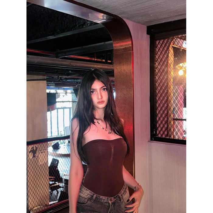 1TL 歐美辣妹風純欲性感抹胸連體衣緊身打底上衣女夏季2025新款
