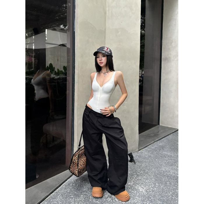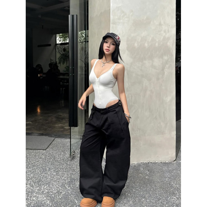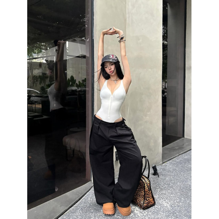 歐美辣妹風V領鏤空露背吊帶連體衣女夏性感收腰顯瘦無袖背心上衣