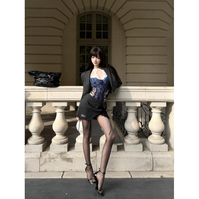 絳語‘歐美辣妹風蕾絲花邊吊帶連體衣女性感鏤空綁帶外穿內搭胸衣